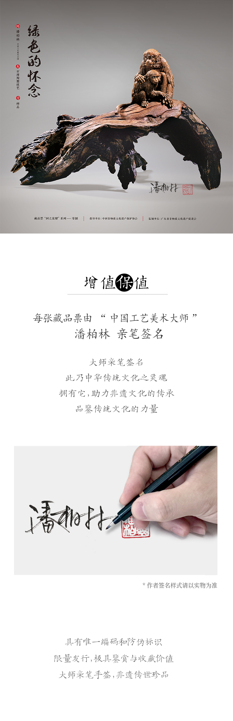 “中国工艺美术大师” 潘柏林 亲笔签名藏品票 -- 绿色的怀念