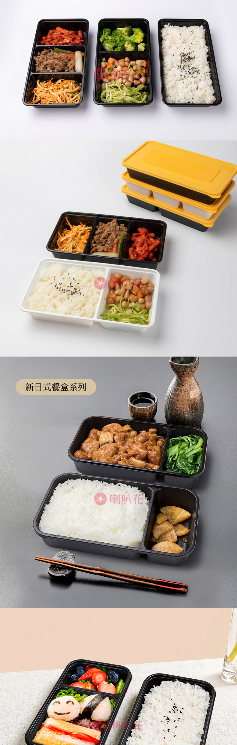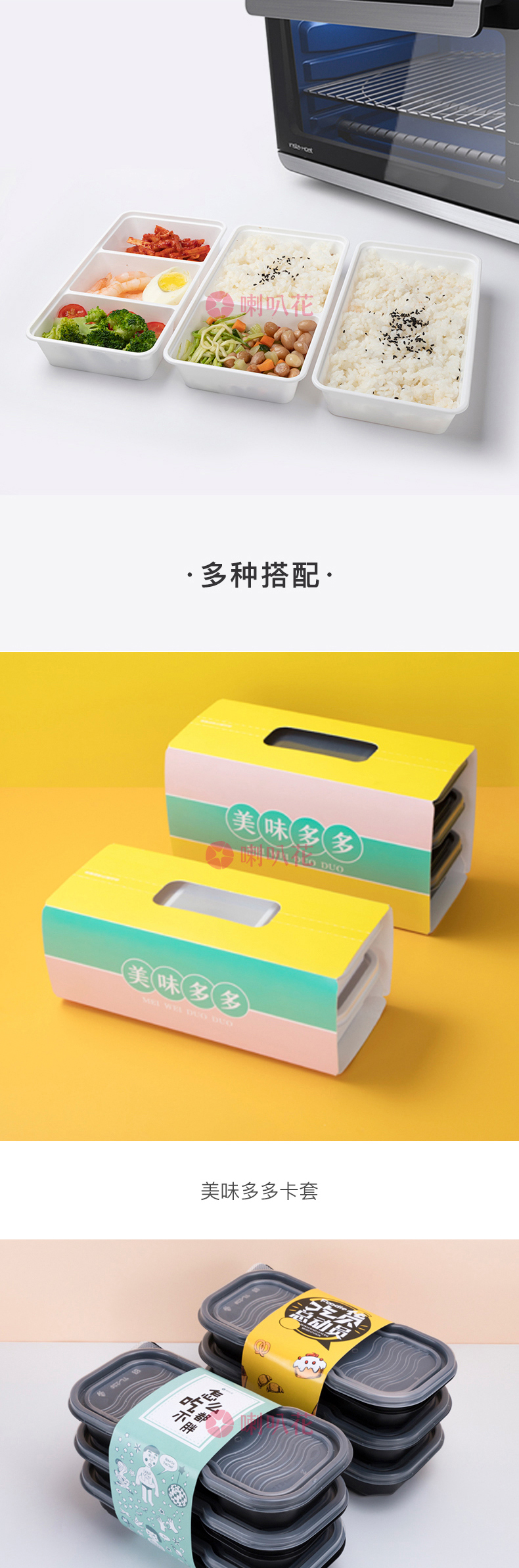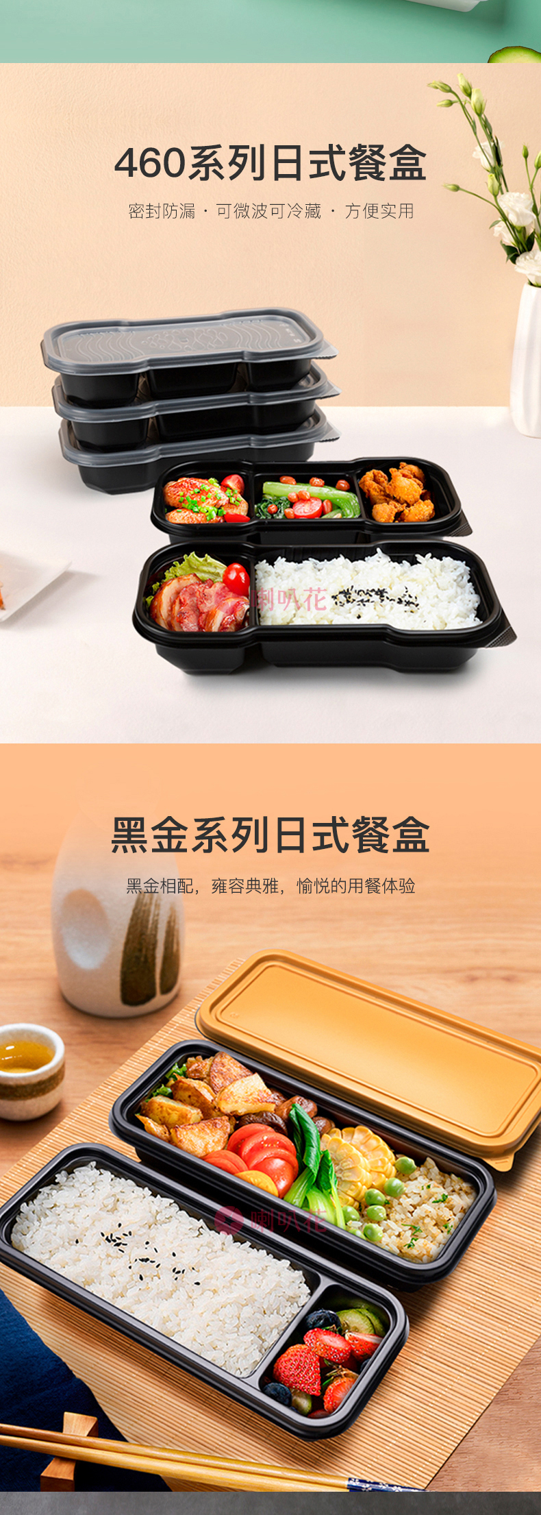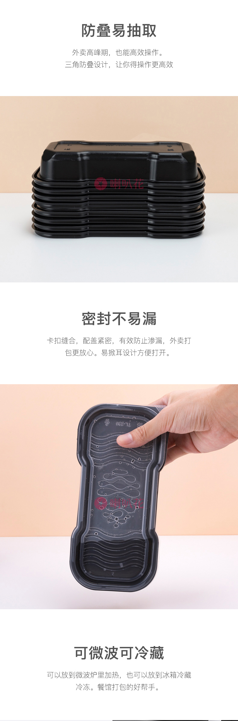 喇叭花500/460ml加厚防漏长方形饭盒 日式快餐盒外卖打包便当盒一人食