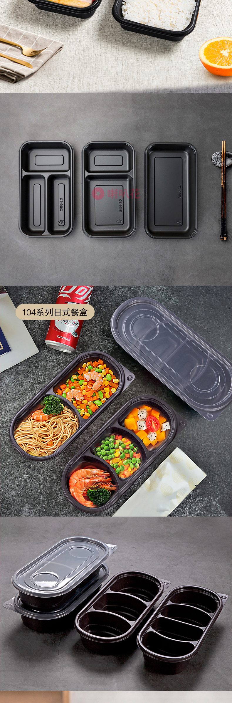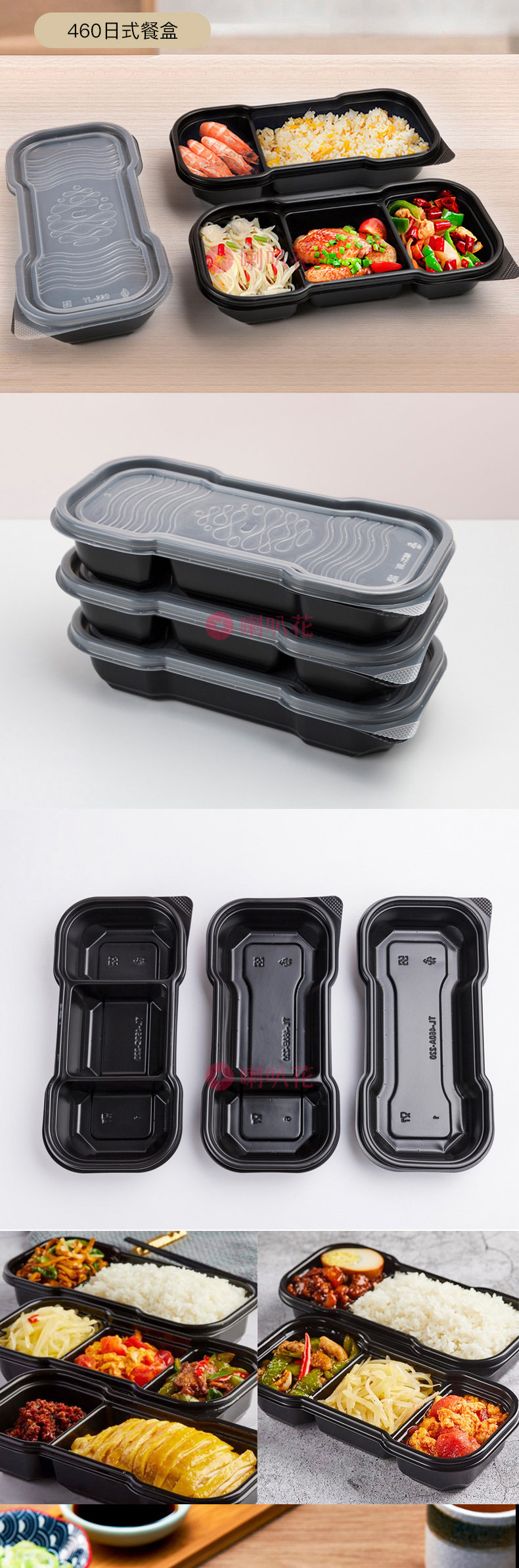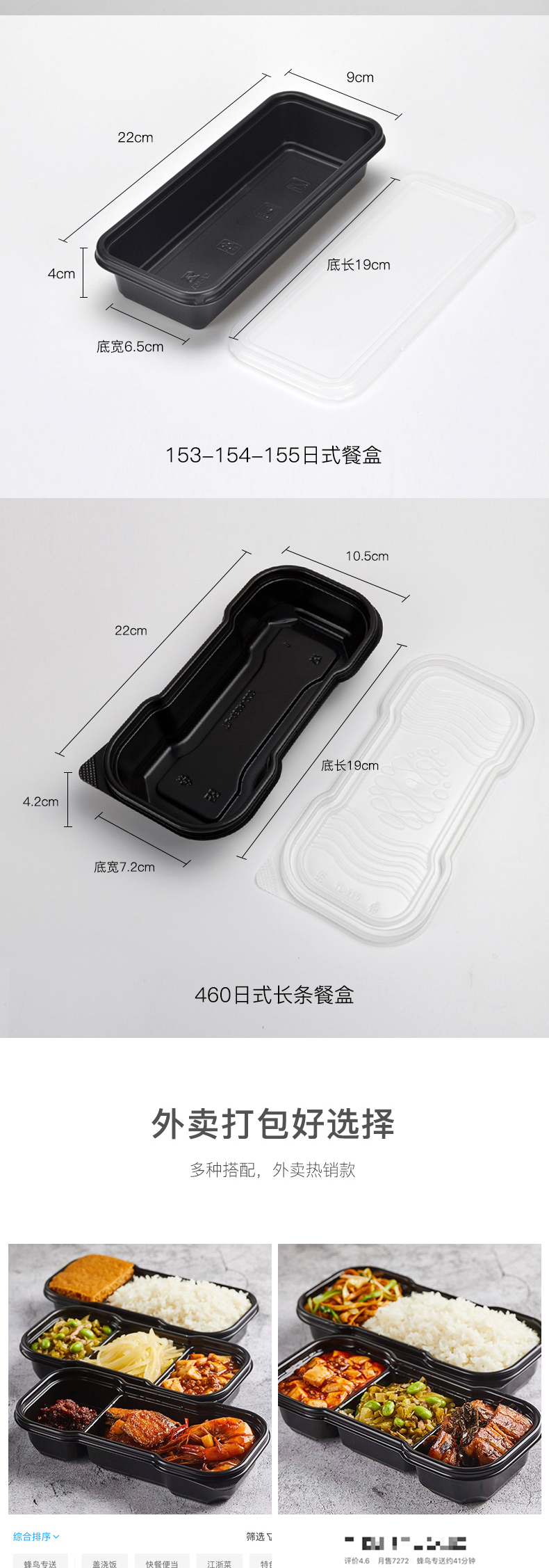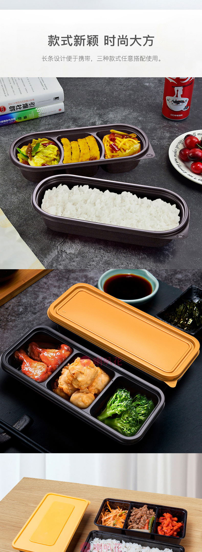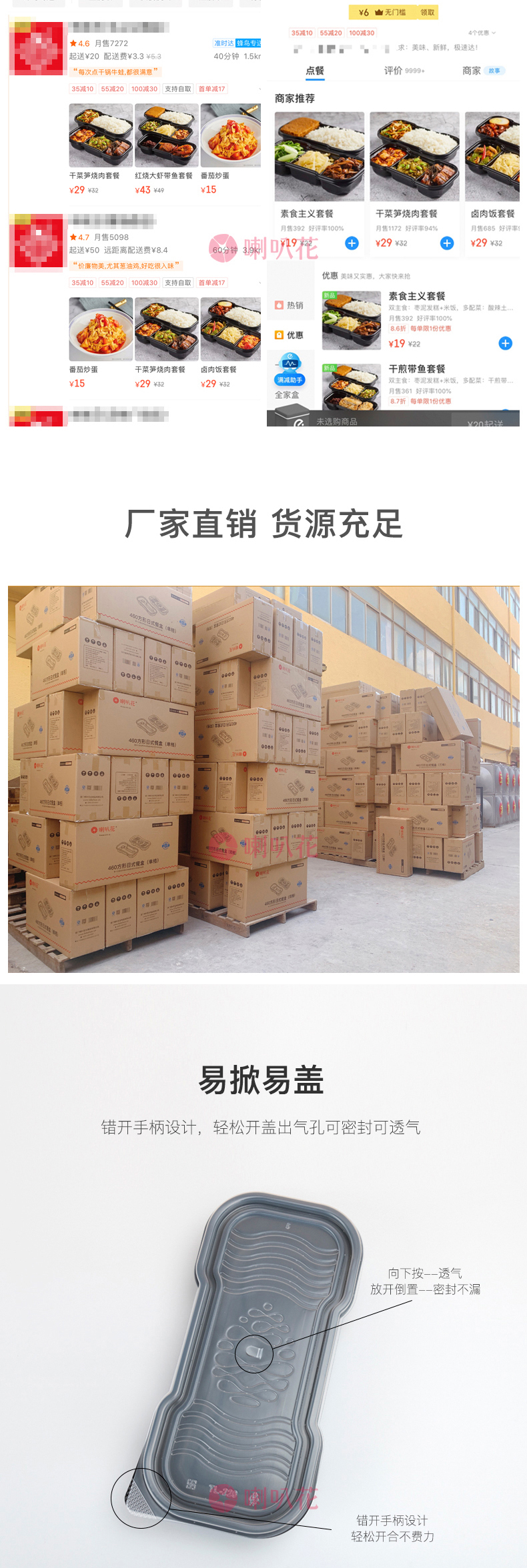 喇叭花500/460ml加厚防漏长方形饭盒 日式快餐盒外卖打包便当盒一人食