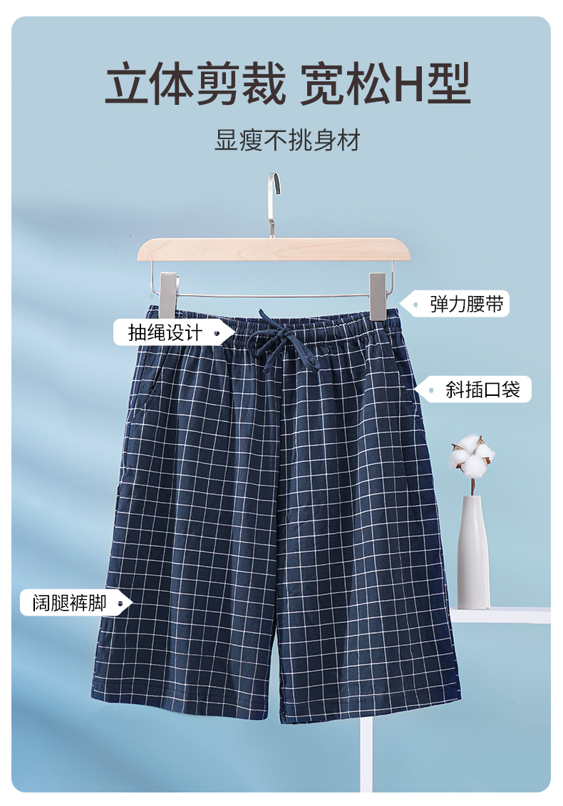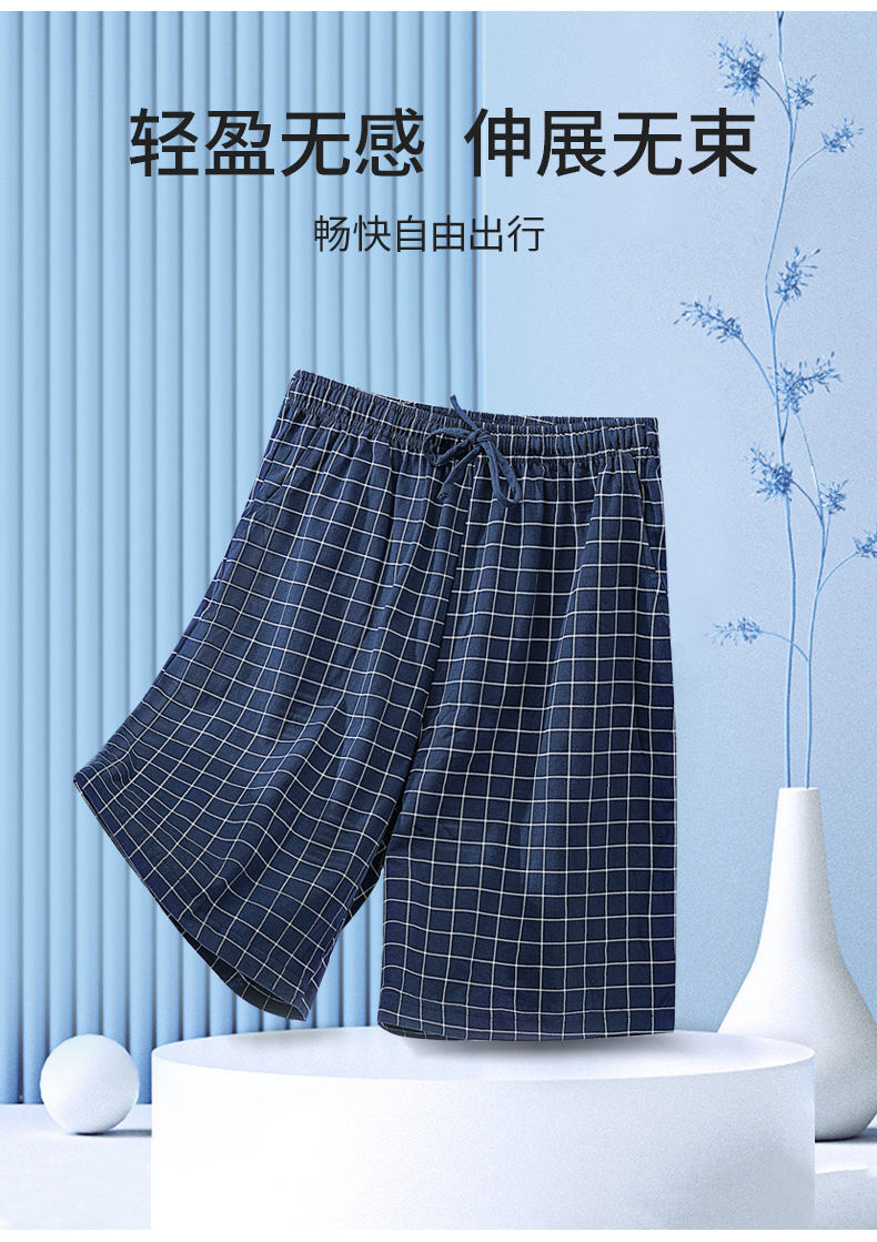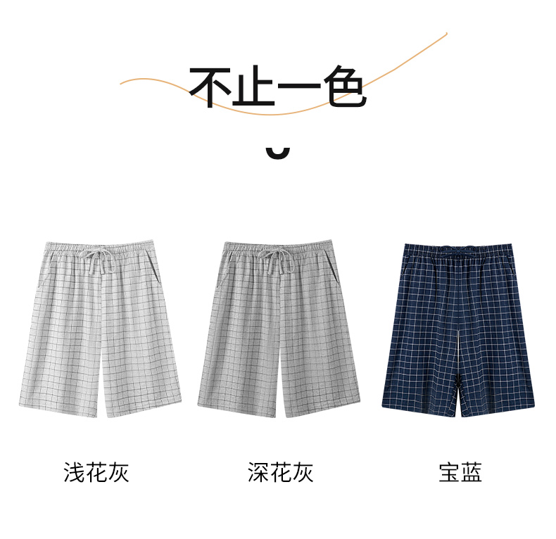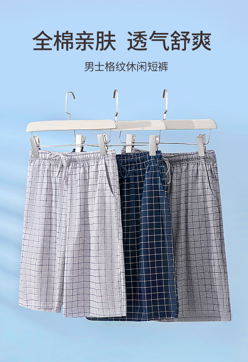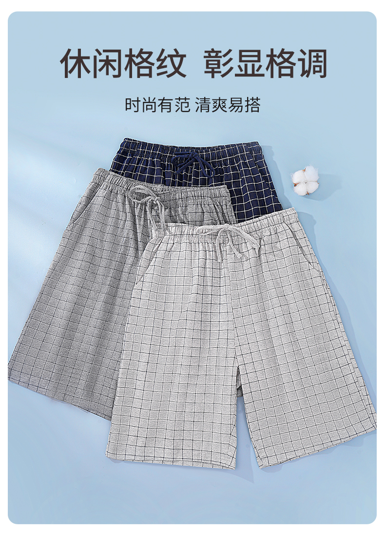雅黛丽男士睡裤纯棉透气舒适大码格纹五分裤家居裤夏季薄款短裤子