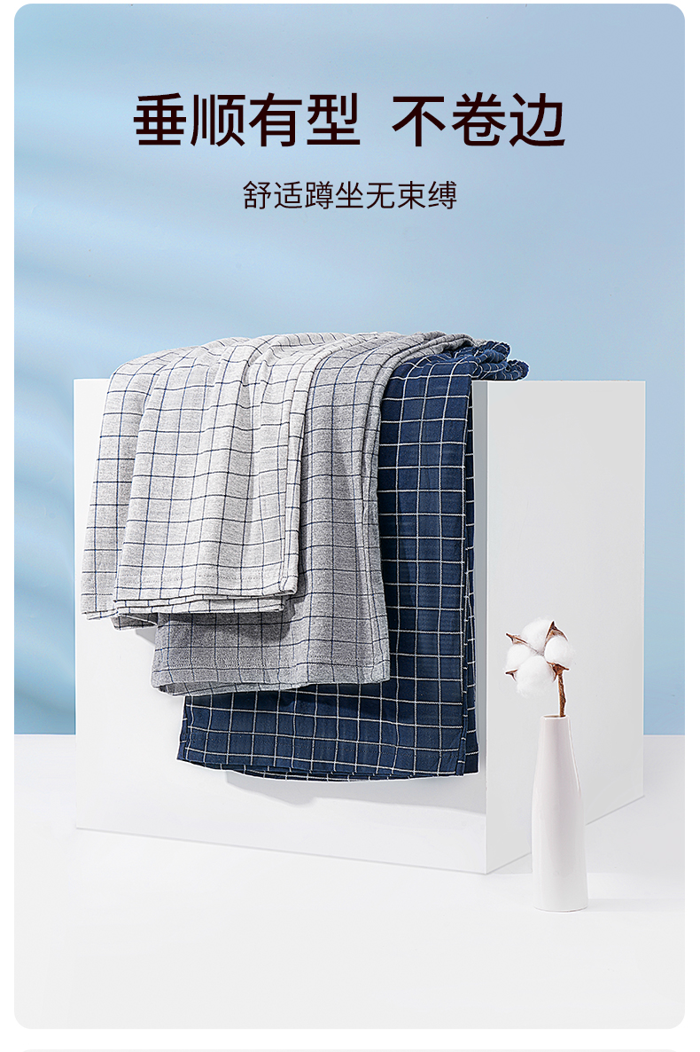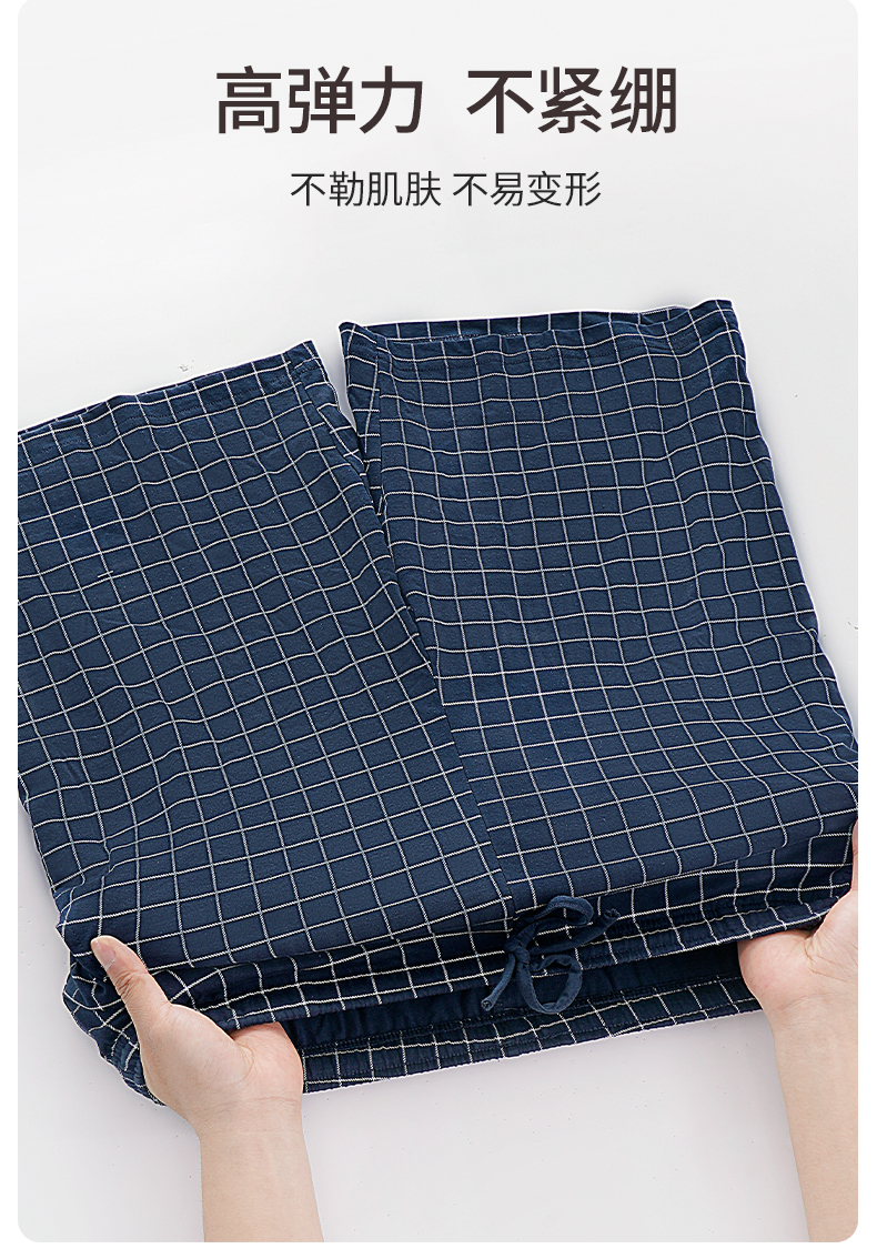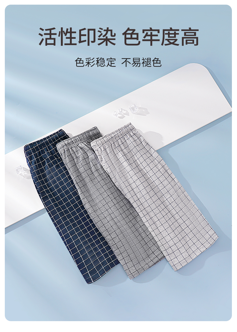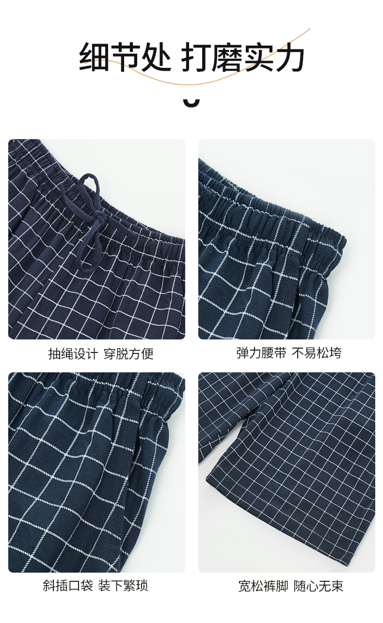 雅黛丽男士睡裤纯棉透气舒适大码格纹五分裤家居裤夏季薄款短裤子