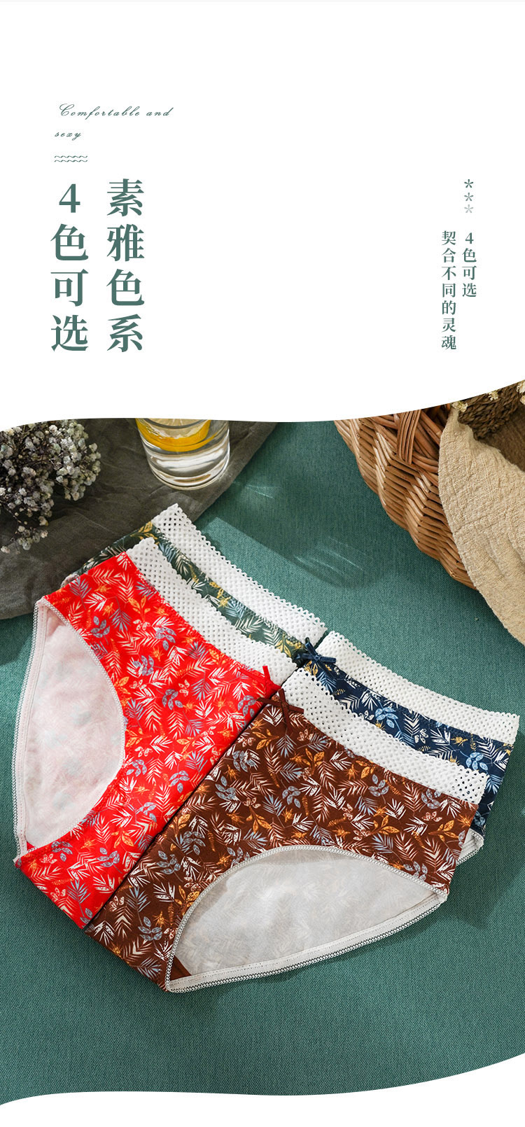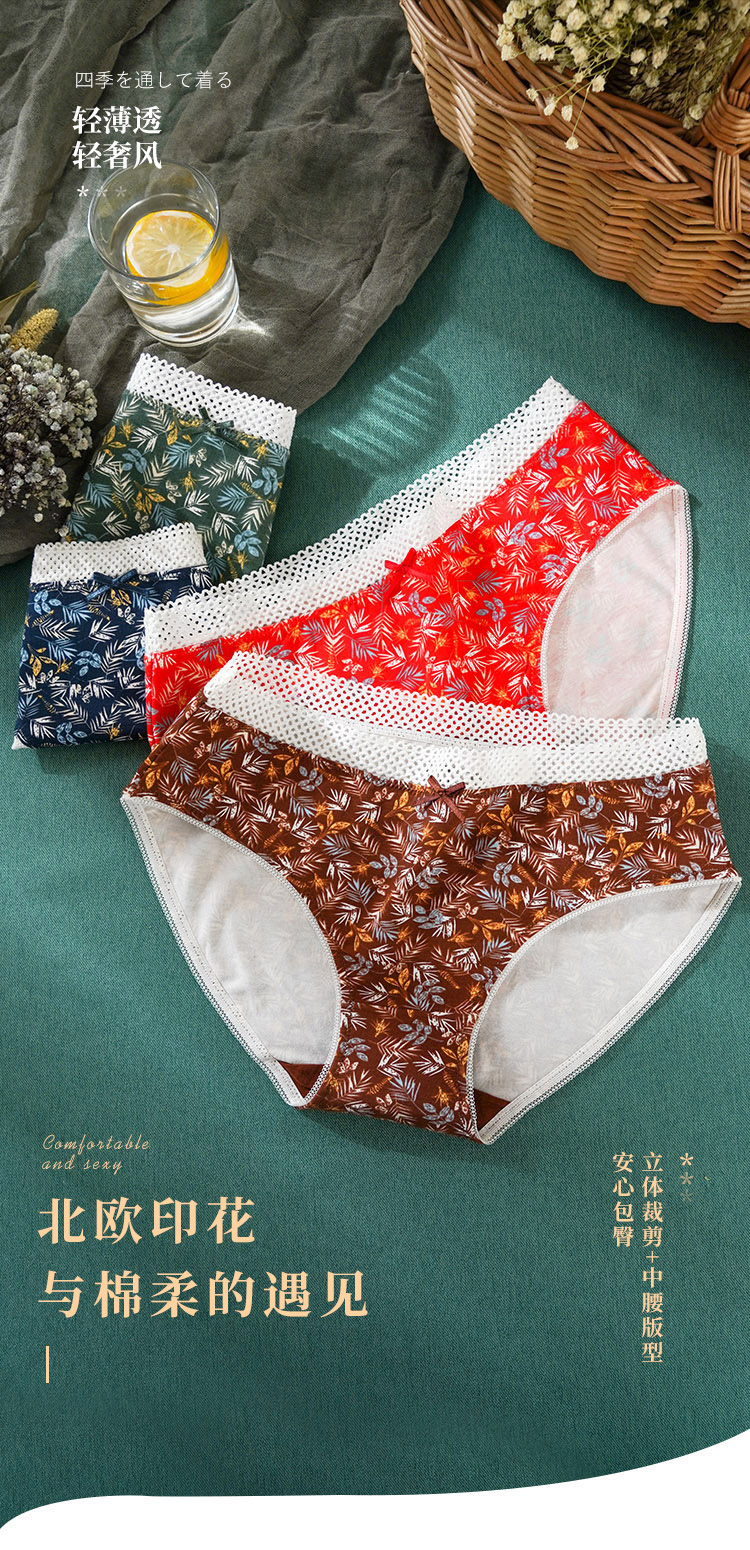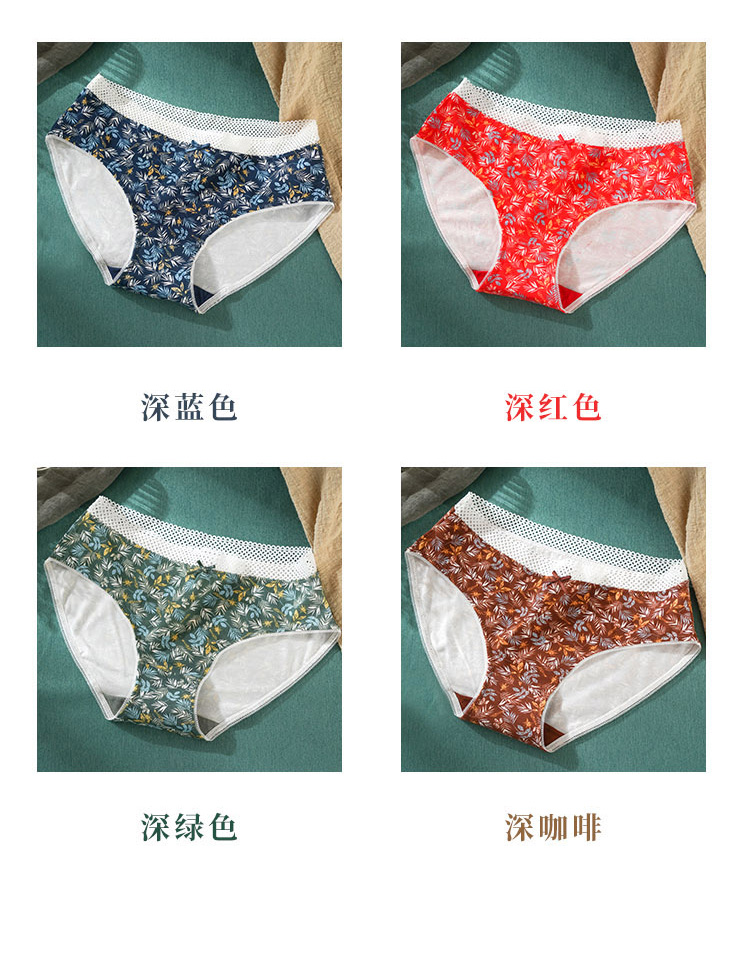 雅黛丽女士内裤中腰三角裤纯棉底裆透气舒适性感4条装底裤
