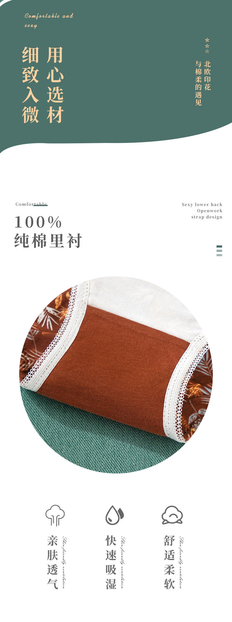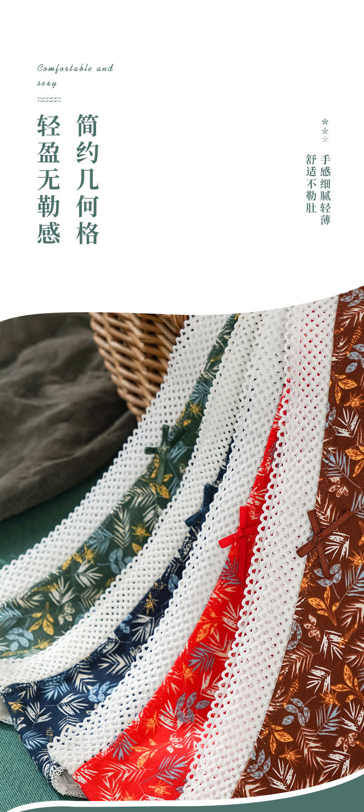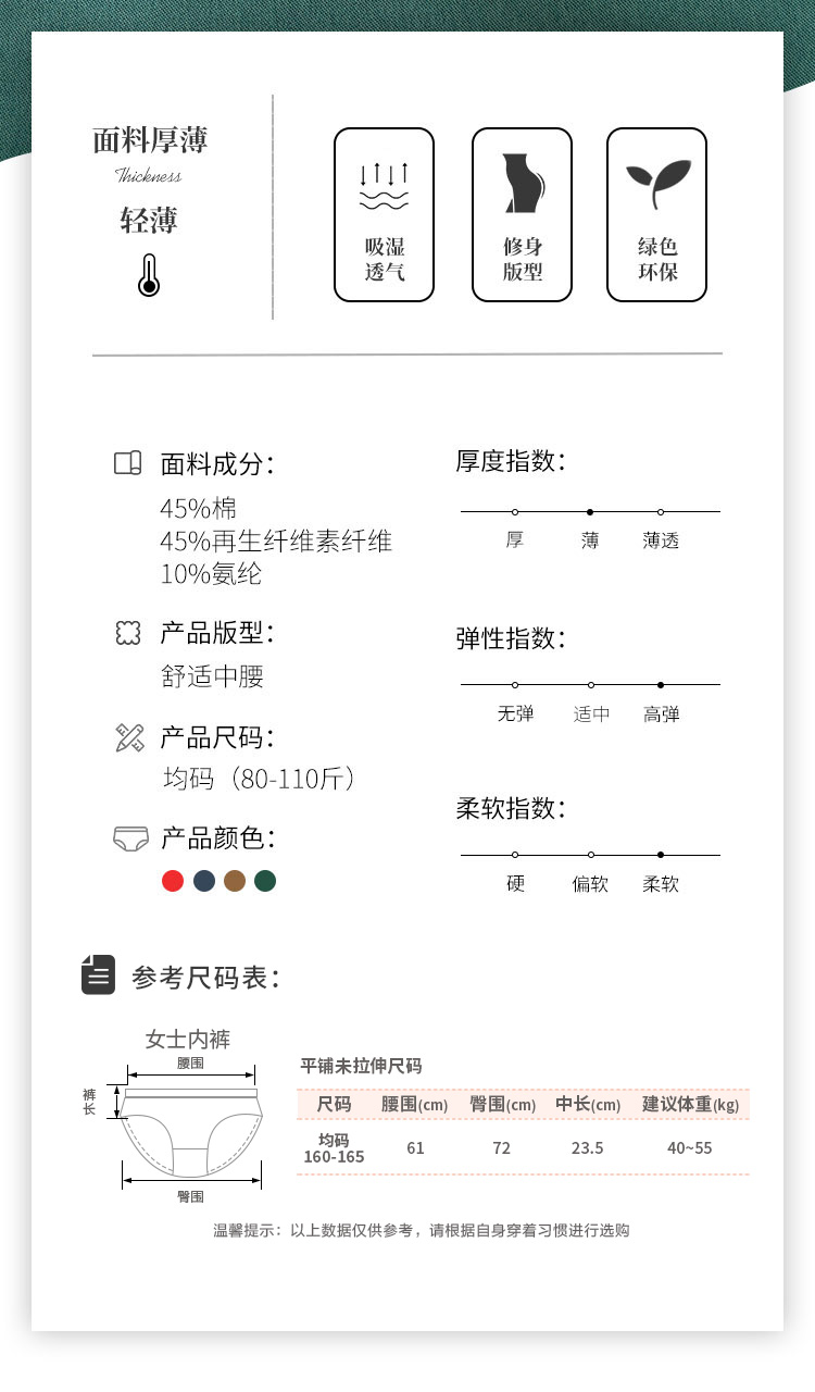 雅黛丽女士内裤中腰三角裤纯棉底裆透气舒适性感4条装底裤