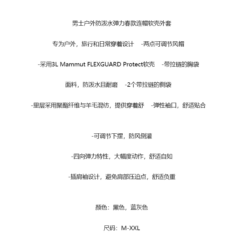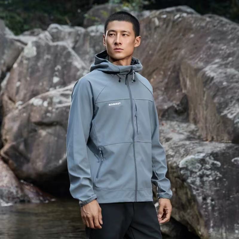 【cz1】男士户外防泼水弹力春款连帽软壳外套!!