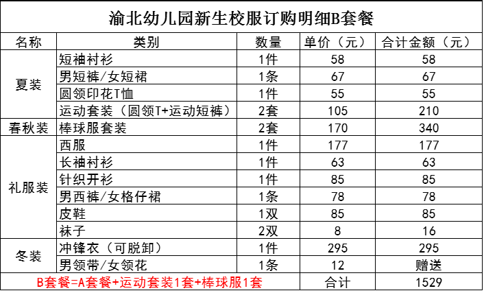 渝北幼儿园新生校服AB套餐预定