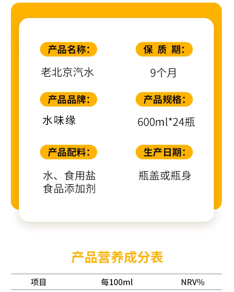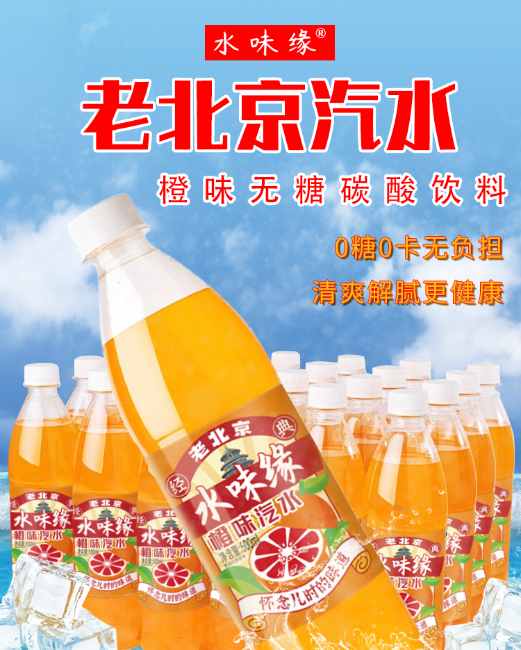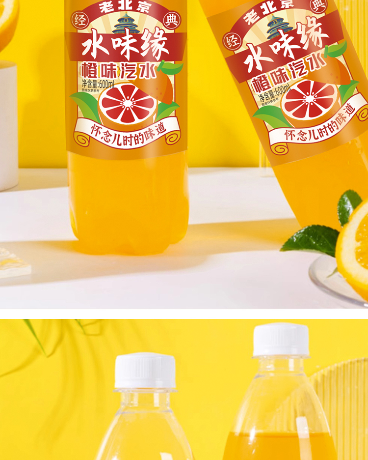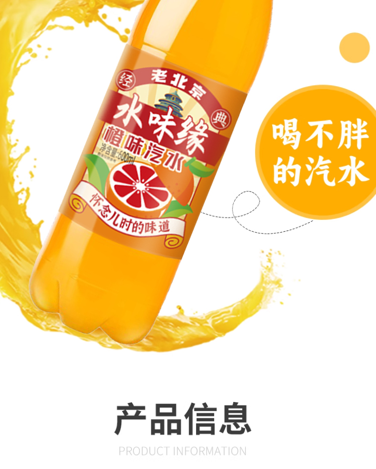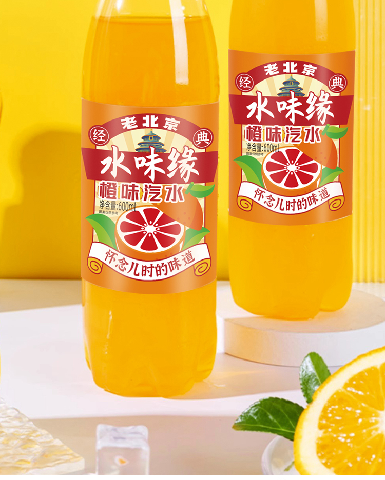 老北京汽水600ml*24儿时的味道水味缘0糖0脂0卡橙味汽水碳酸饮料