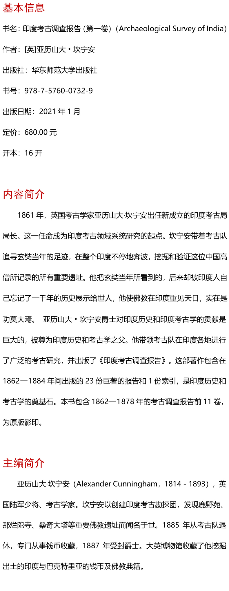 印度考古调查报告 第一卷 Archaeological Survey of India 印度历史 印度考古 正版 华东师范大学出版社