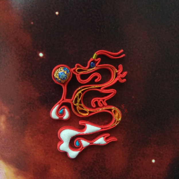 工艺:传统技艺,手工制作。历经十道工序:真丝预缩熨烫,真丝刮浆,柔软真丝,裁条,折烫,嵌铜丝,塑形固定,嵌芯,珠绣,固定底托。