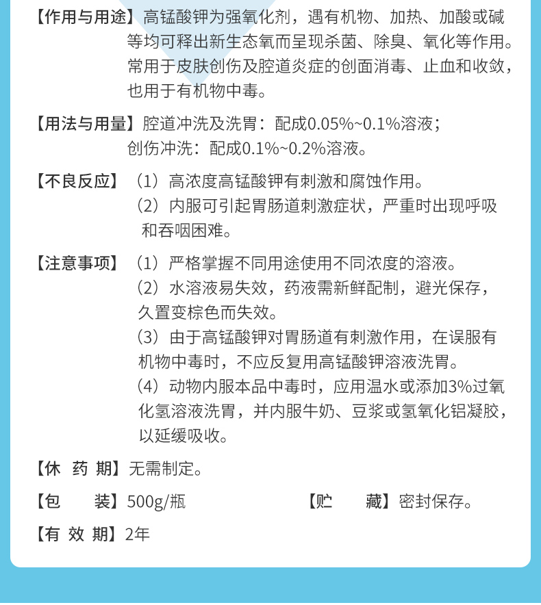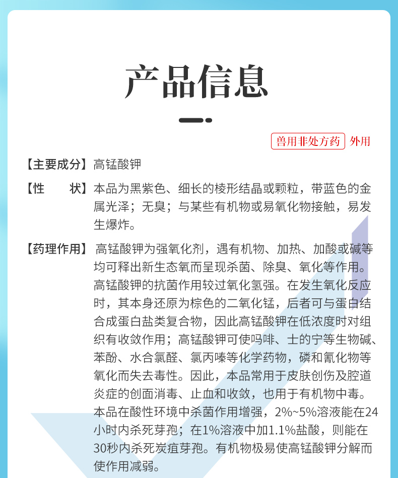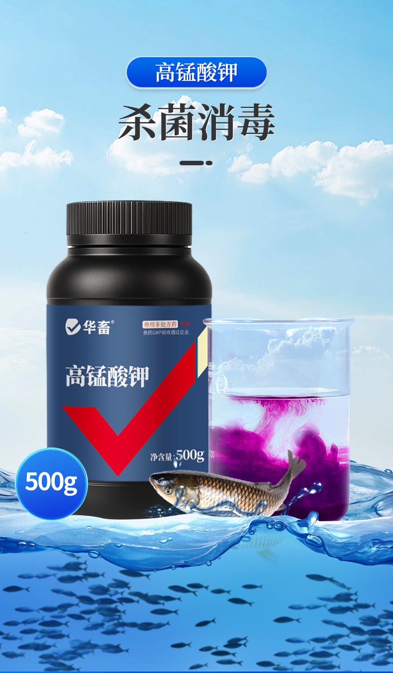 华畜高锰酸钾鱼用鱼缸消毒液鱼塘鱼池乌龟杀菌药高猛酸钾粉末兽用