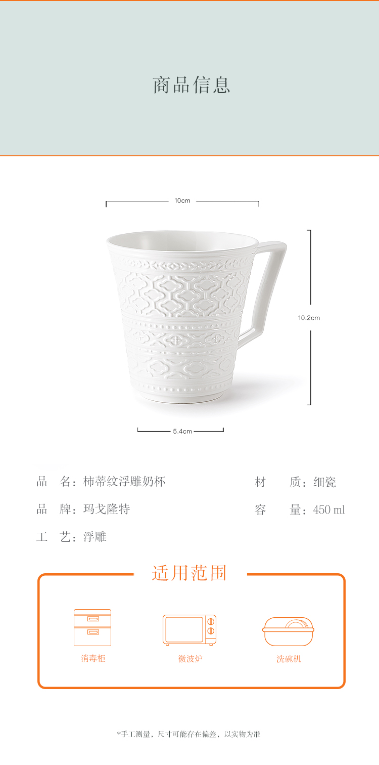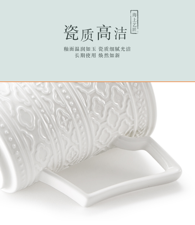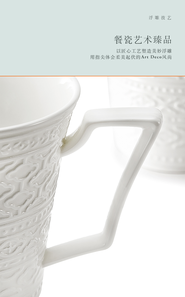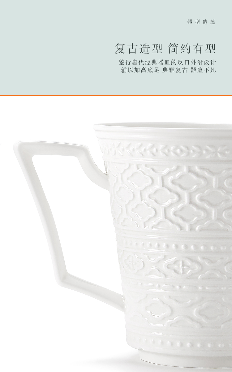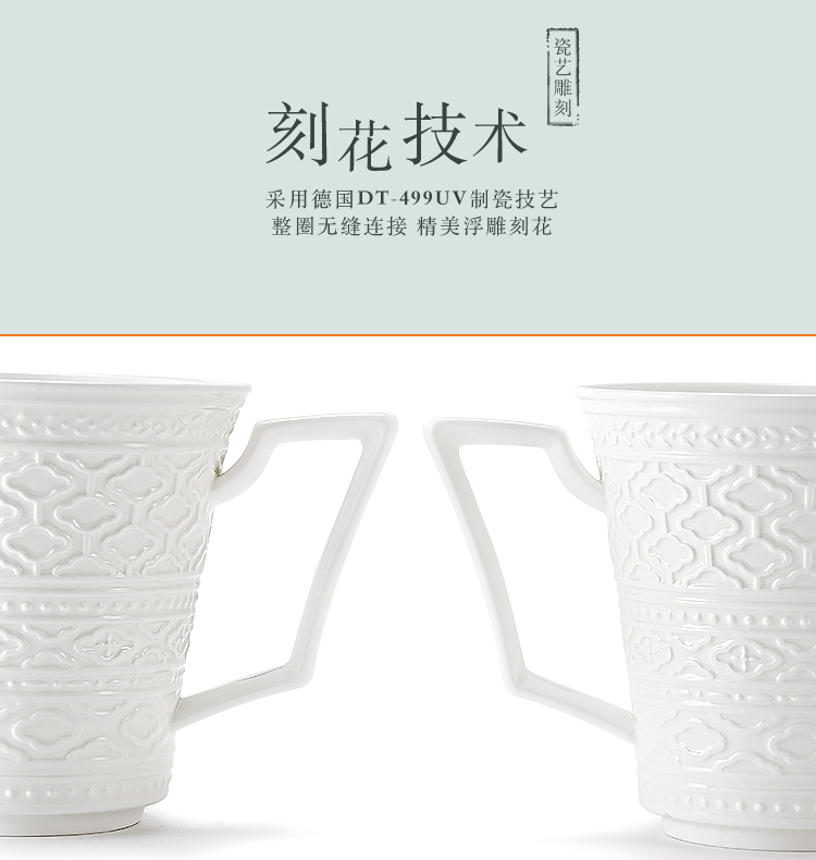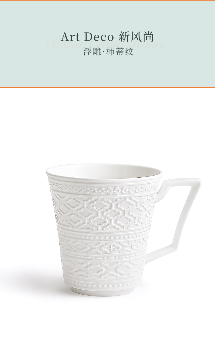 【6F】玛戈隆特 纯白浮雕陶瓷马克杯 家用水杯情侣北欧欧式奢华牛奶杯子