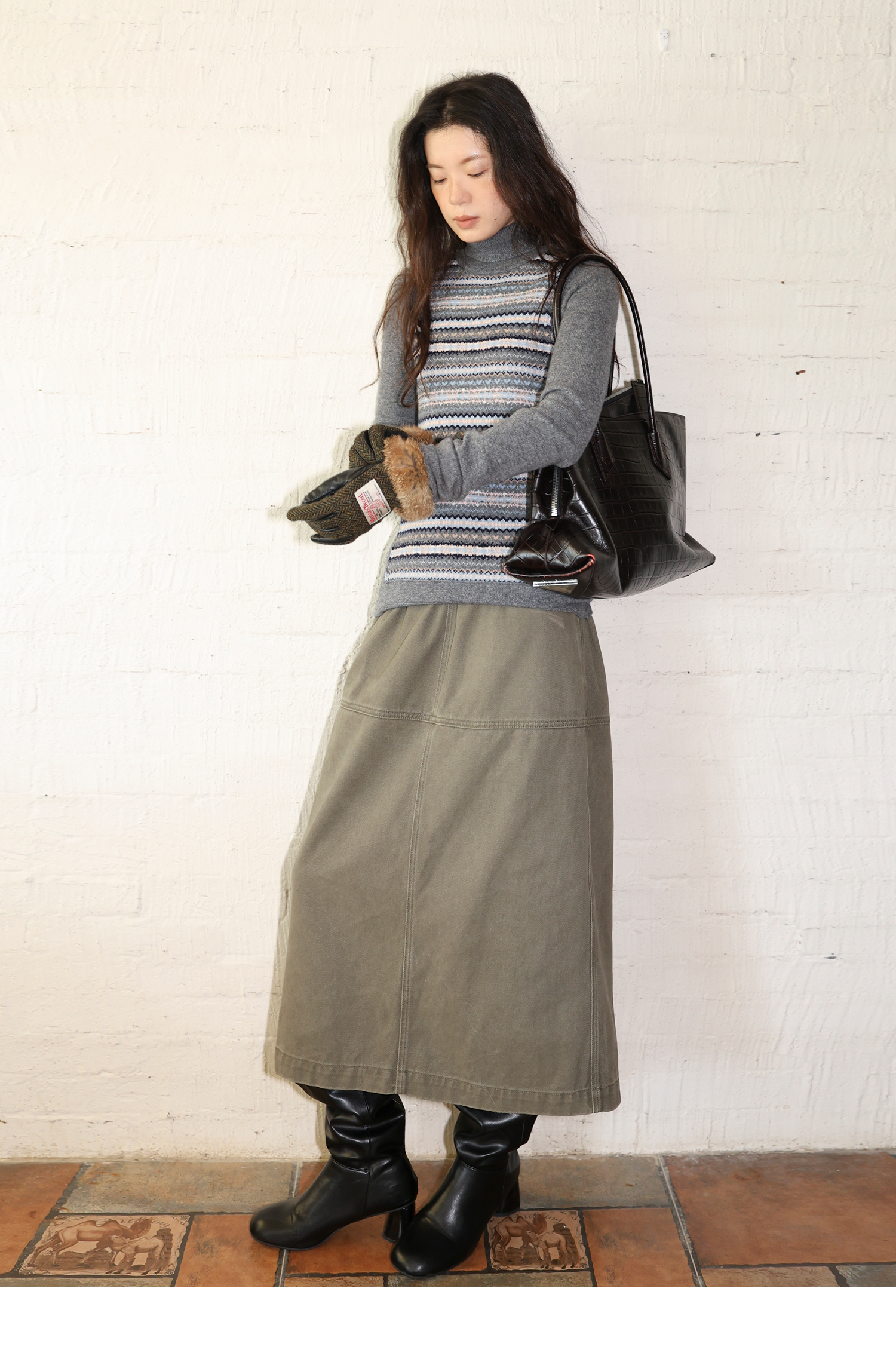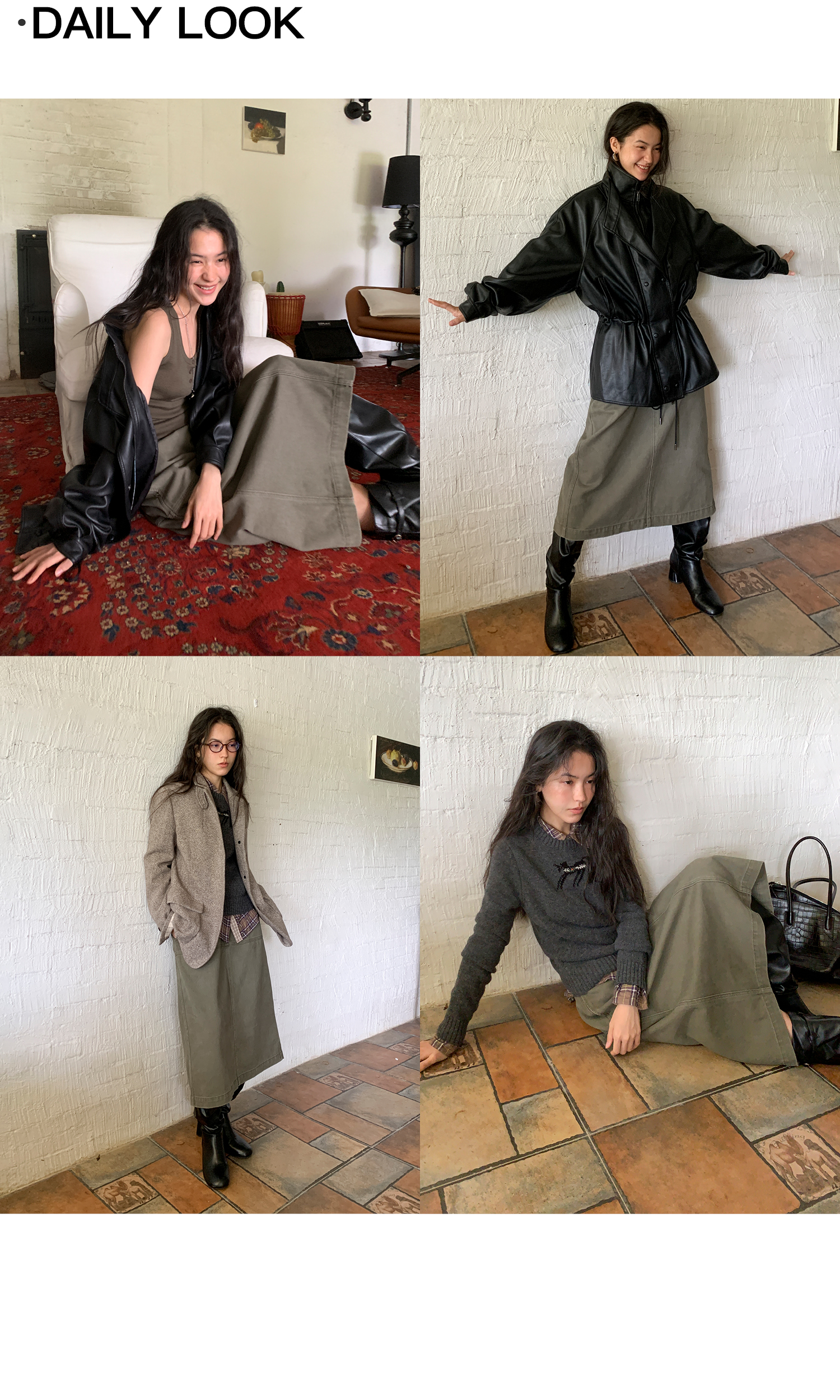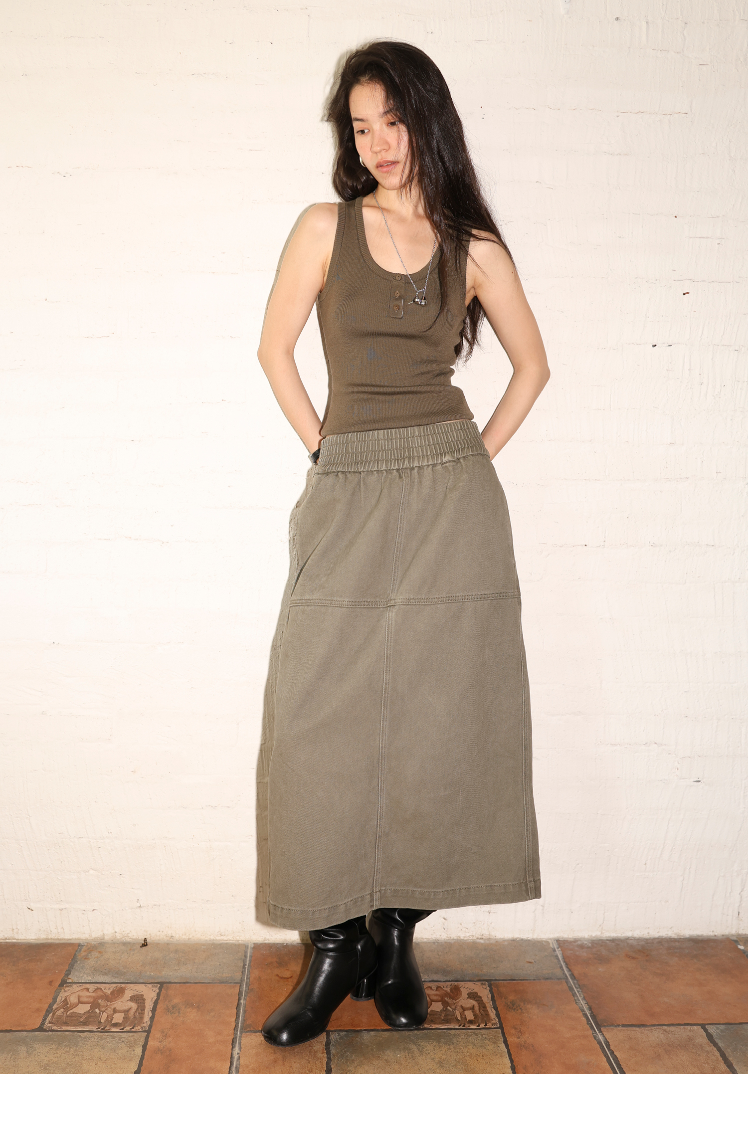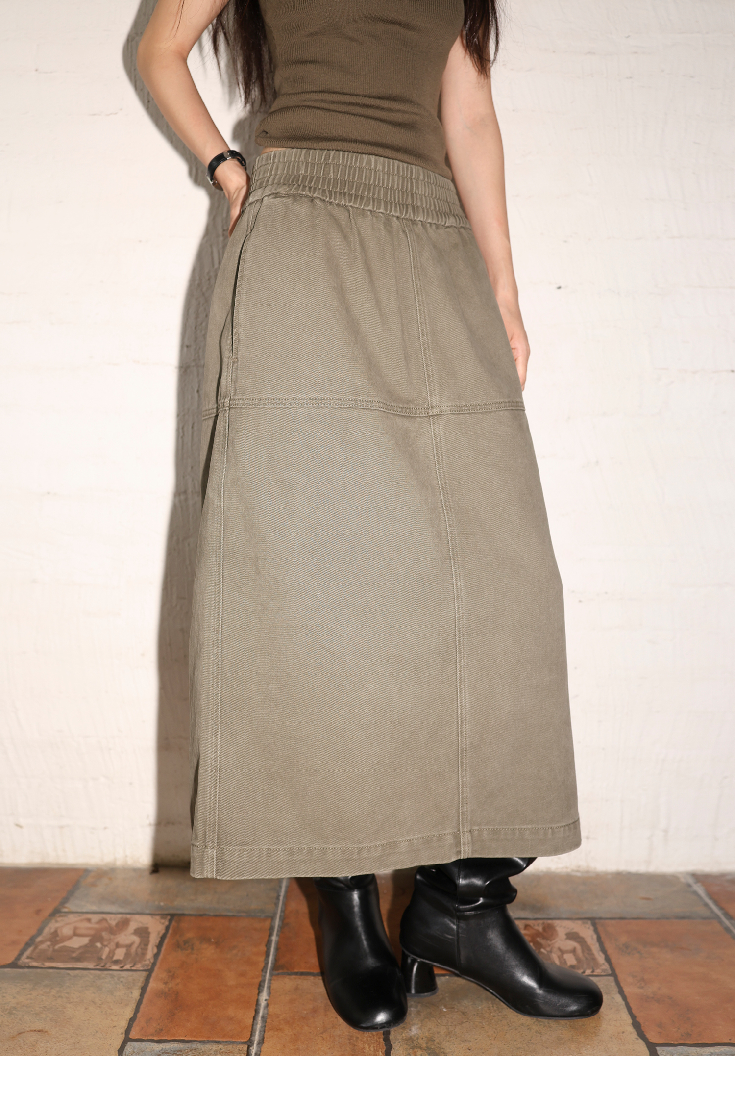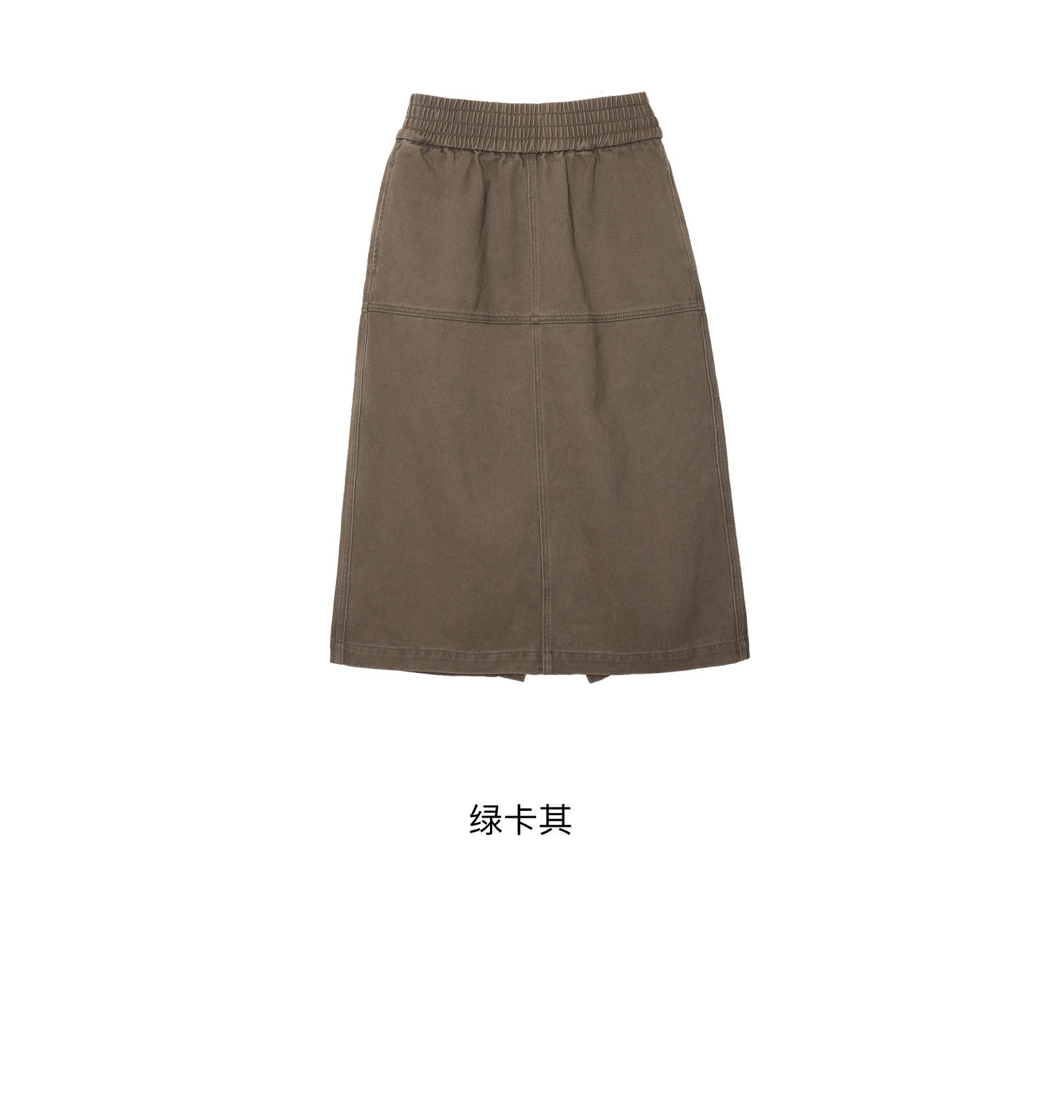 素舶 纯棉水洗彩牛松紧腰后开衩通勤工装分割设计显瘦直筒半裙