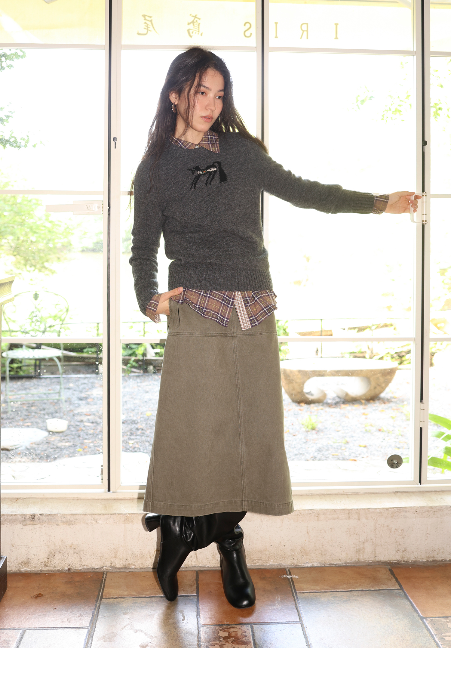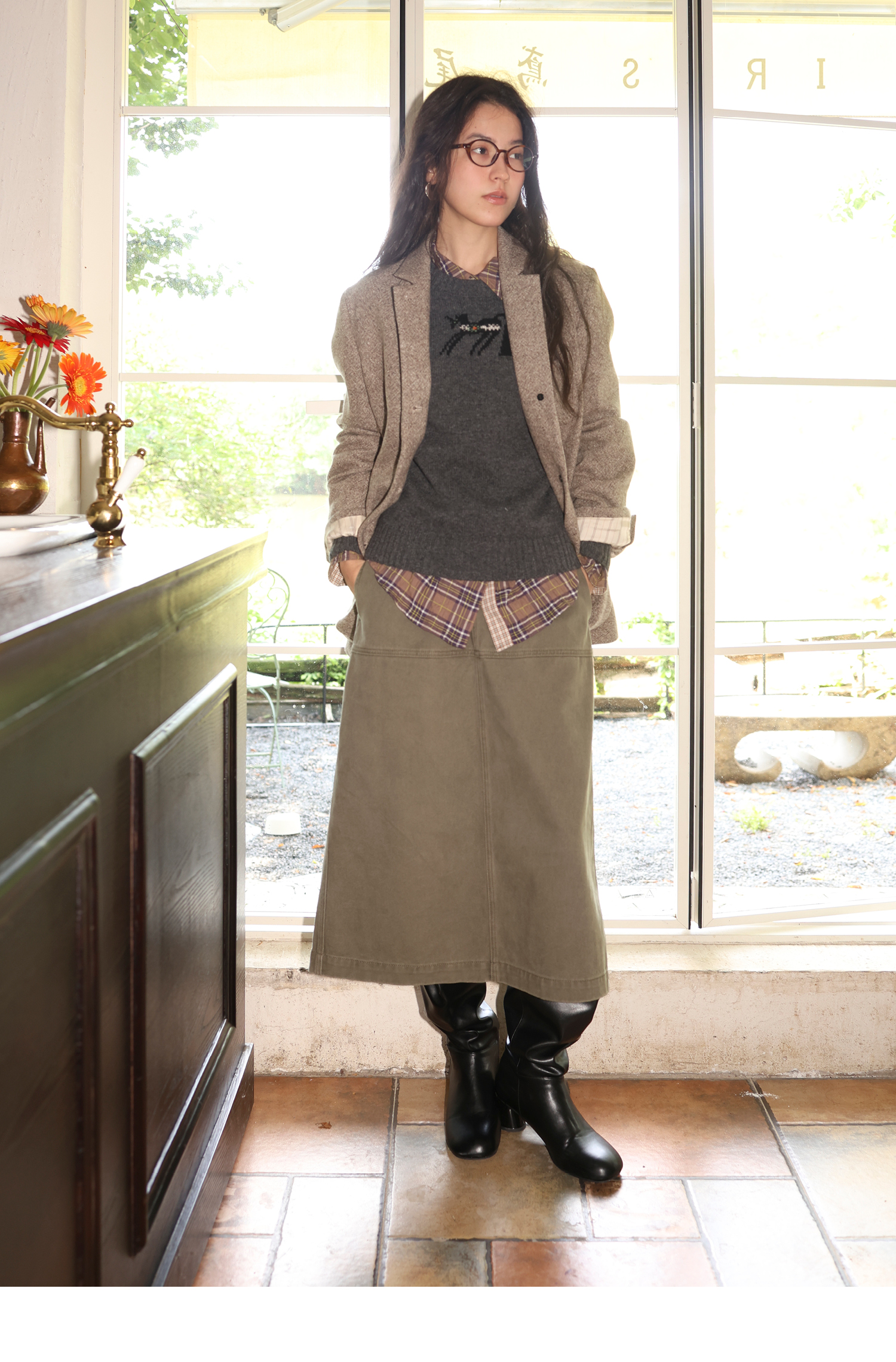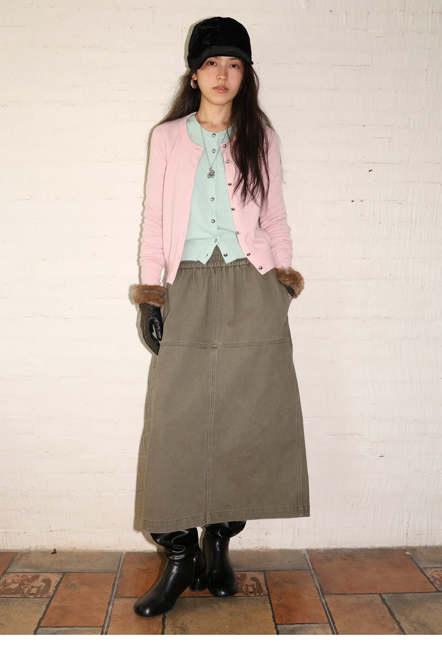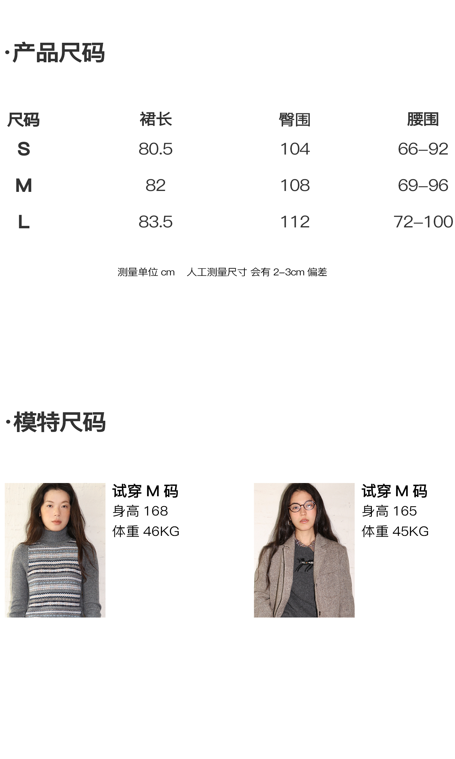 素舶 纯棉水洗彩牛松紧腰后开衩通勤工装分割设计显瘦直筒半裙