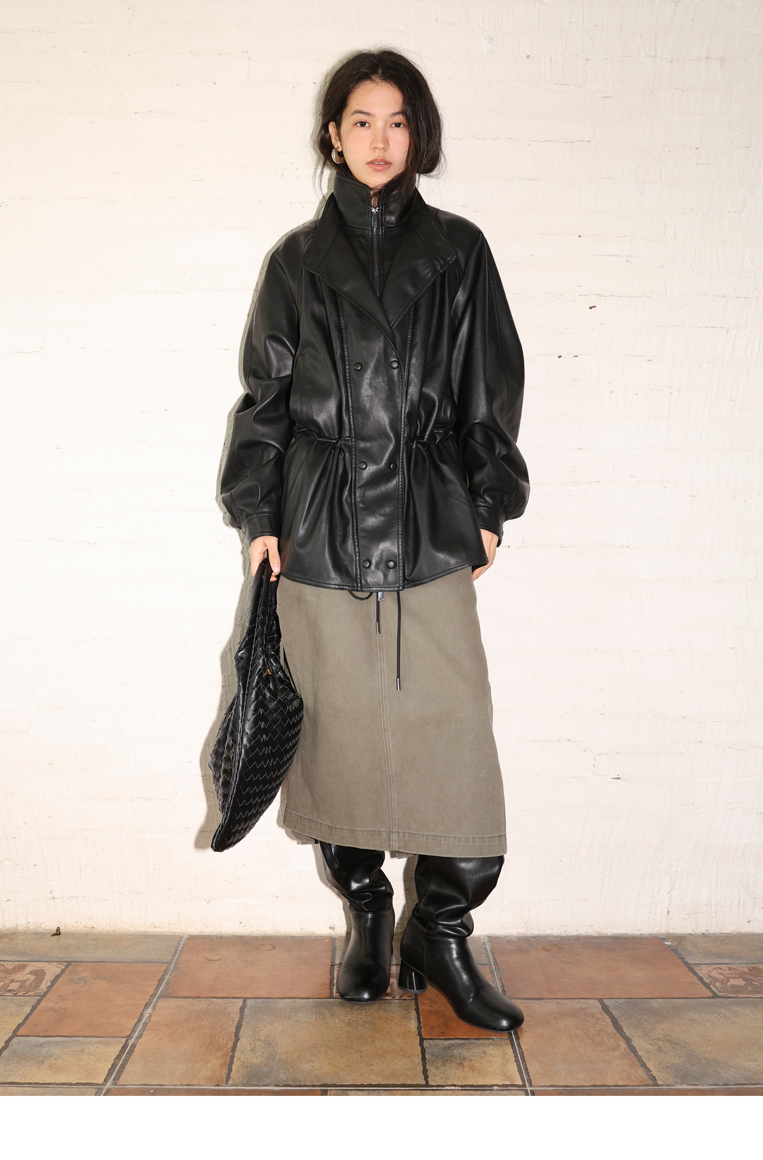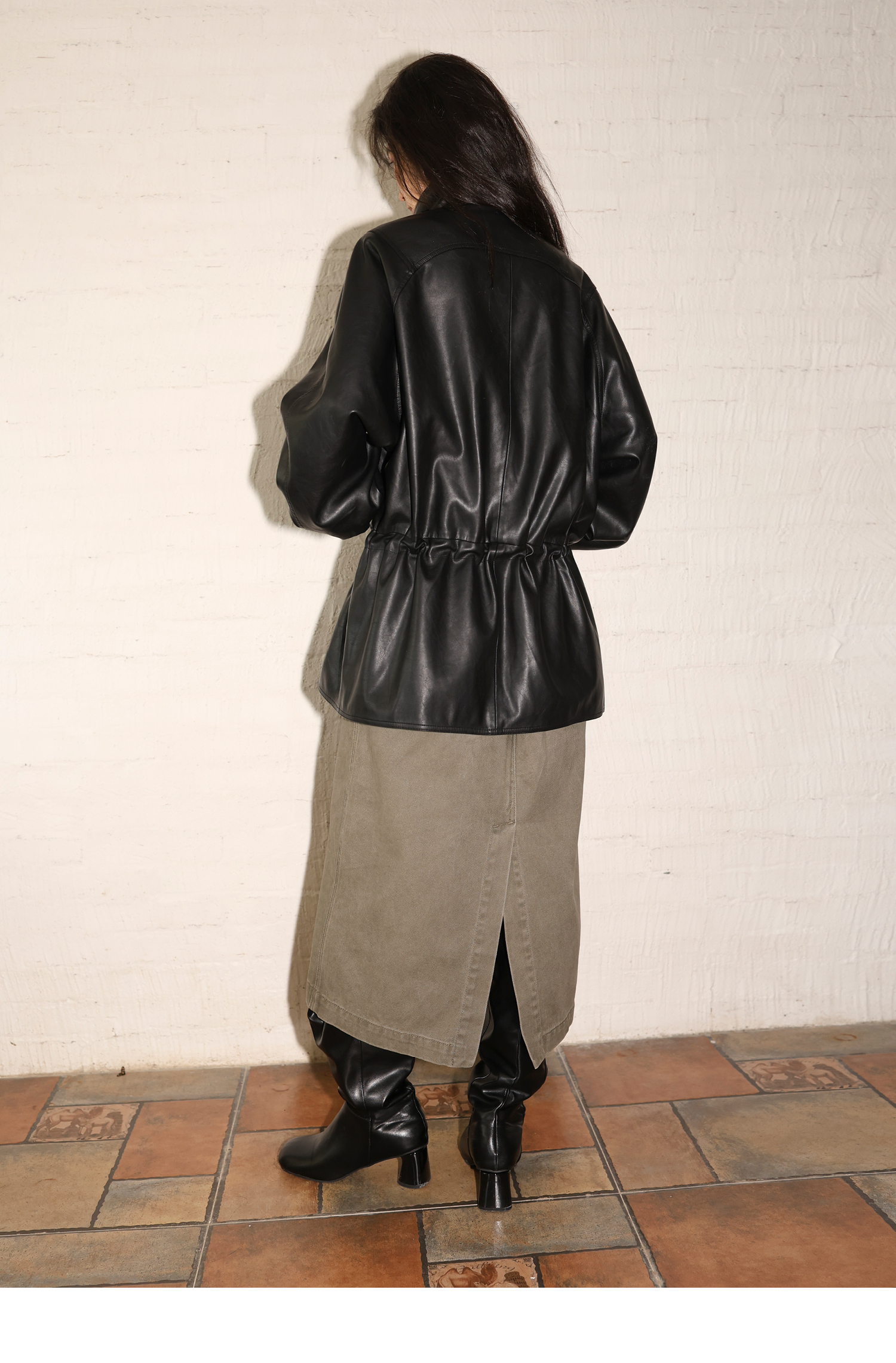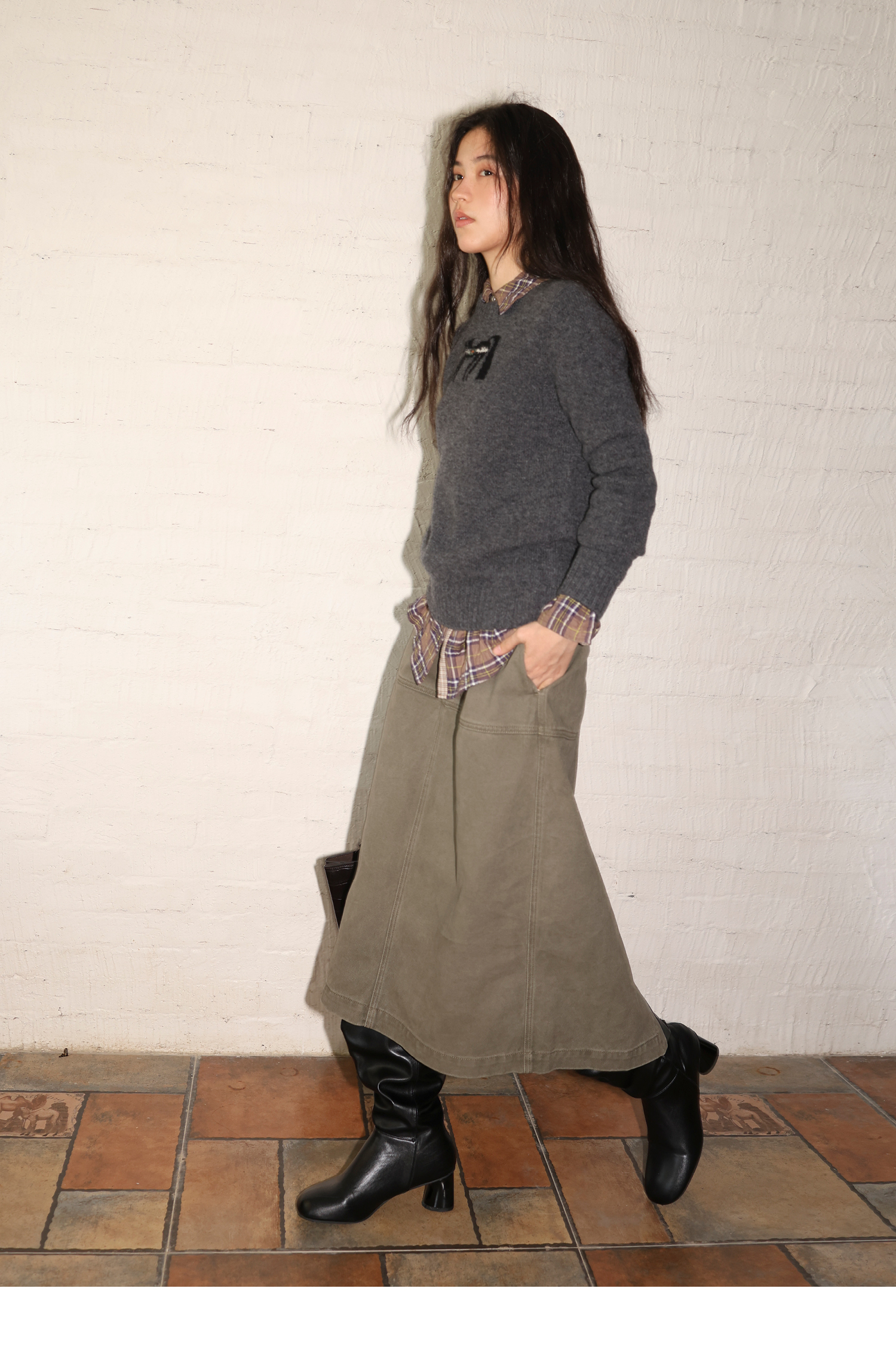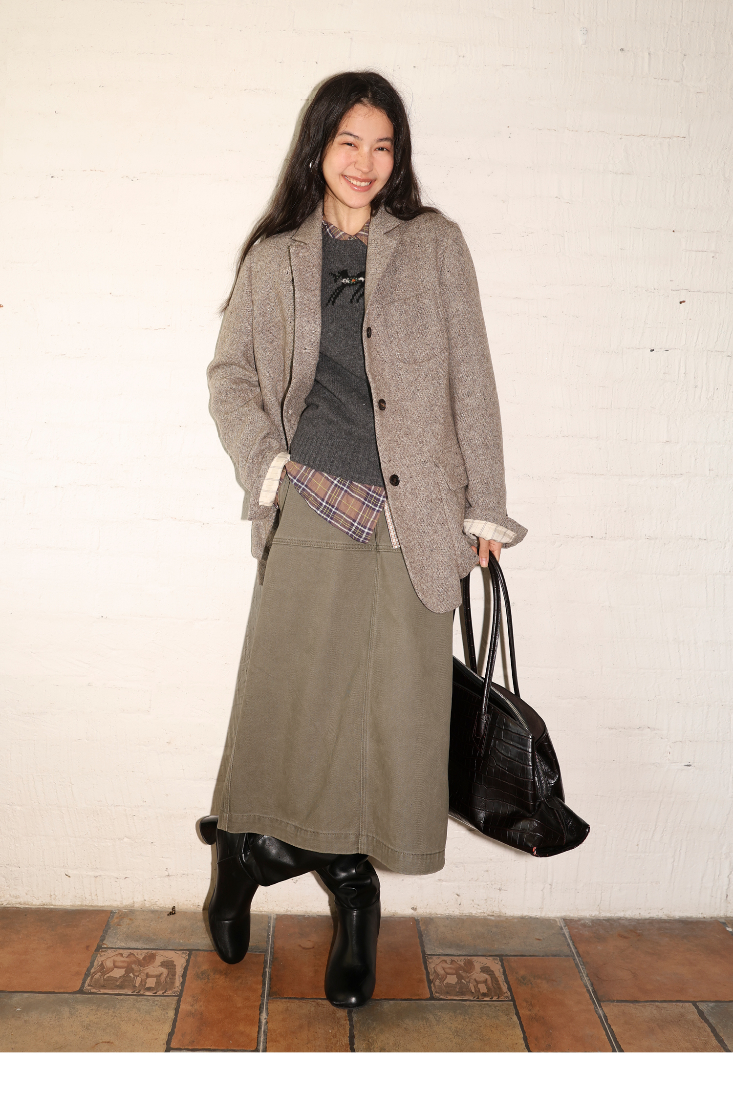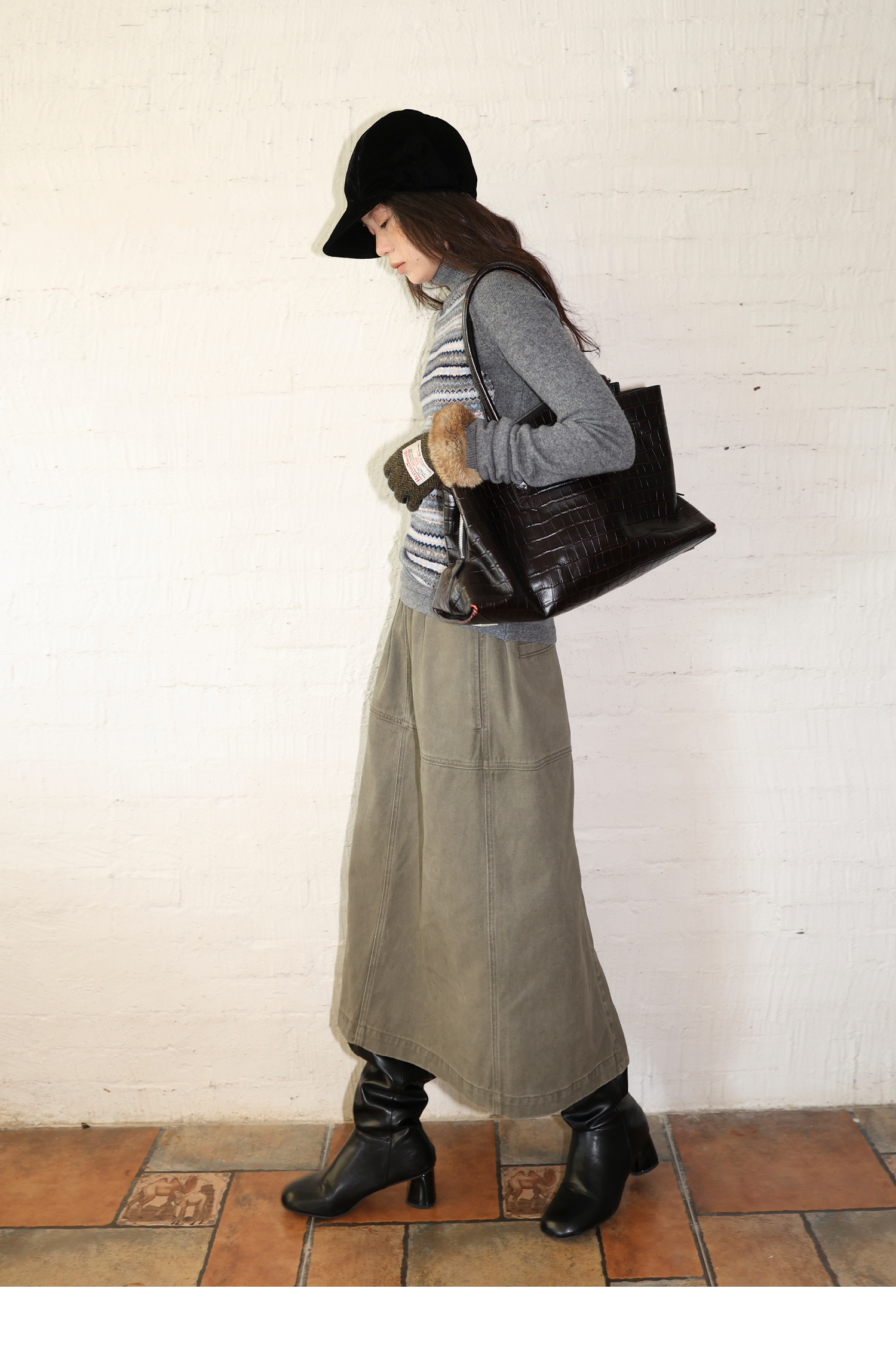素舶 纯棉水洗彩牛松紧腰后开衩通勤工装分割设计显瘦直筒半裙