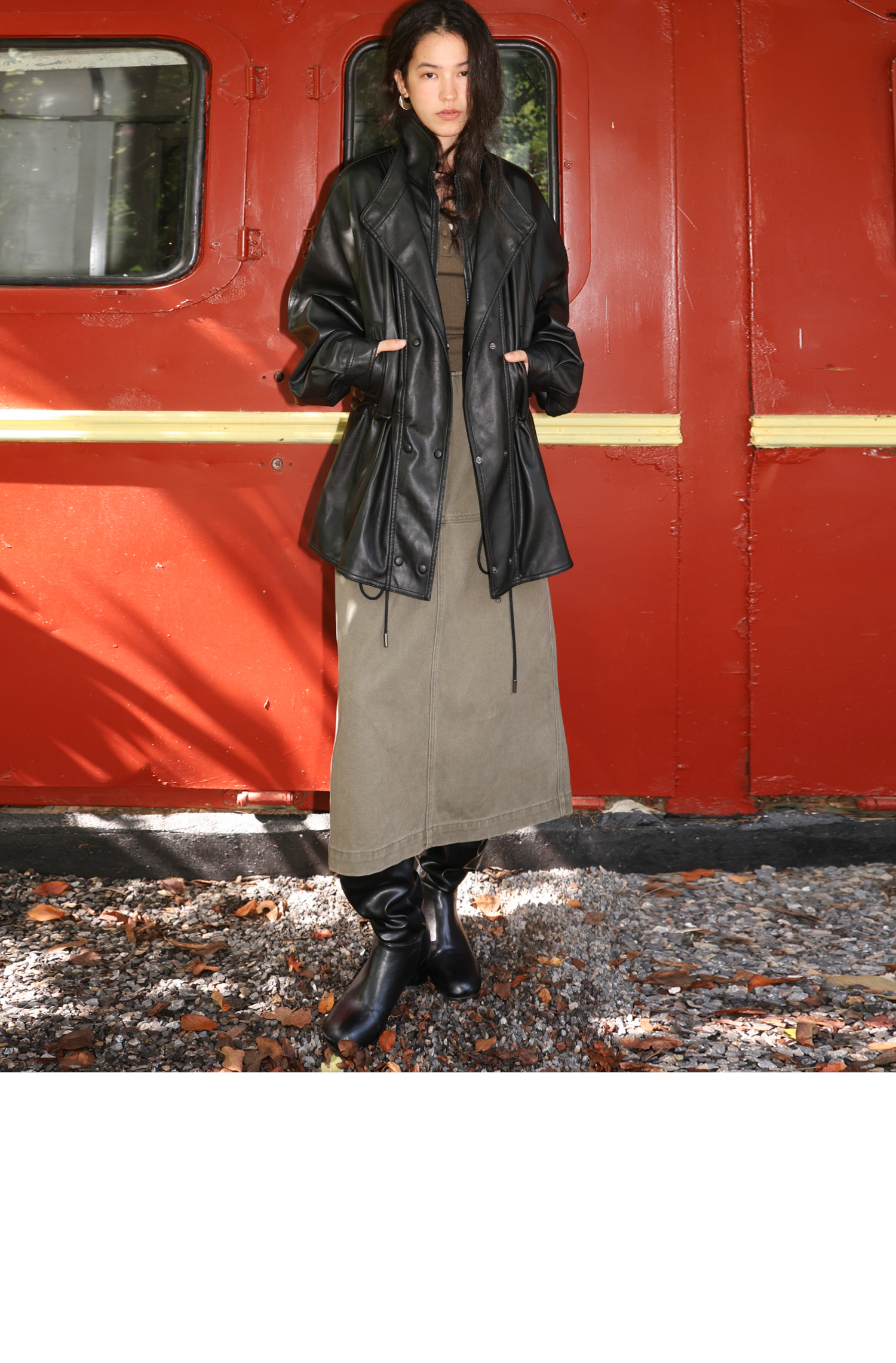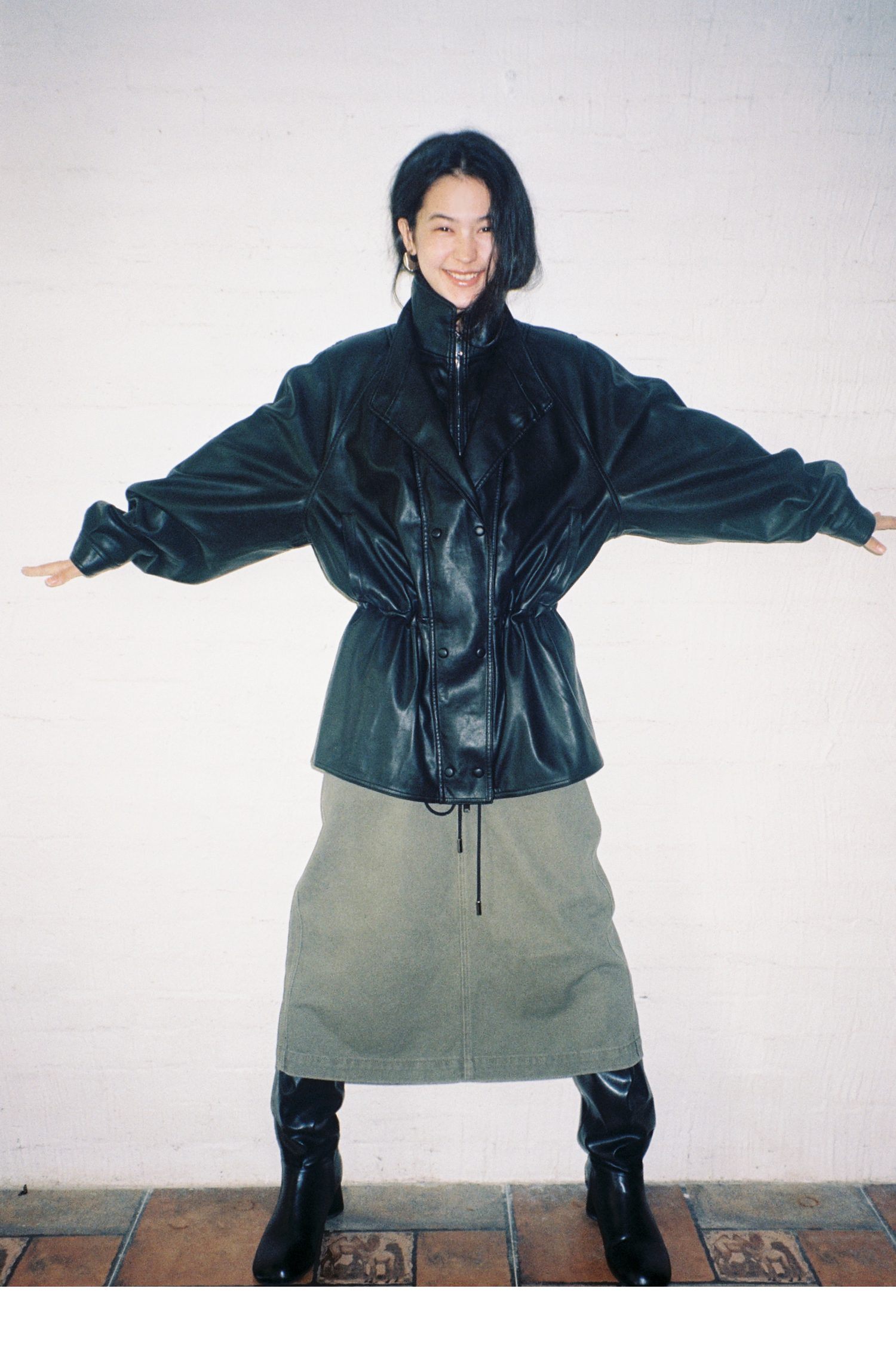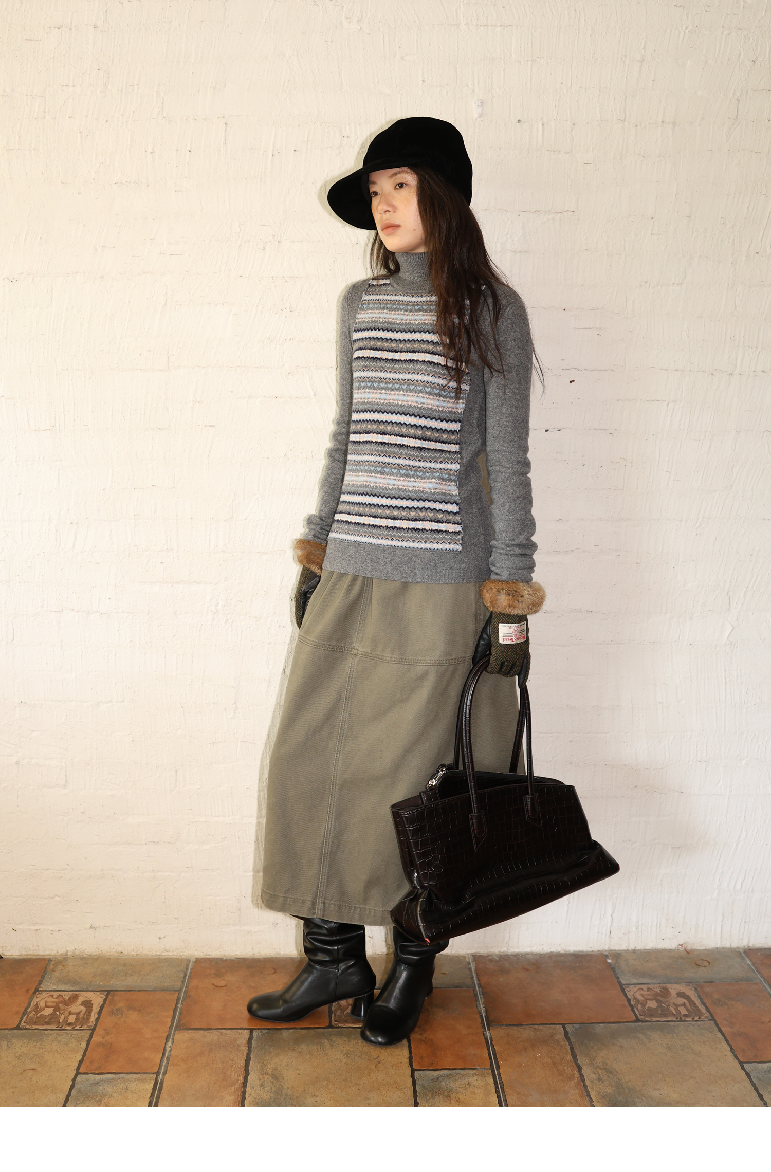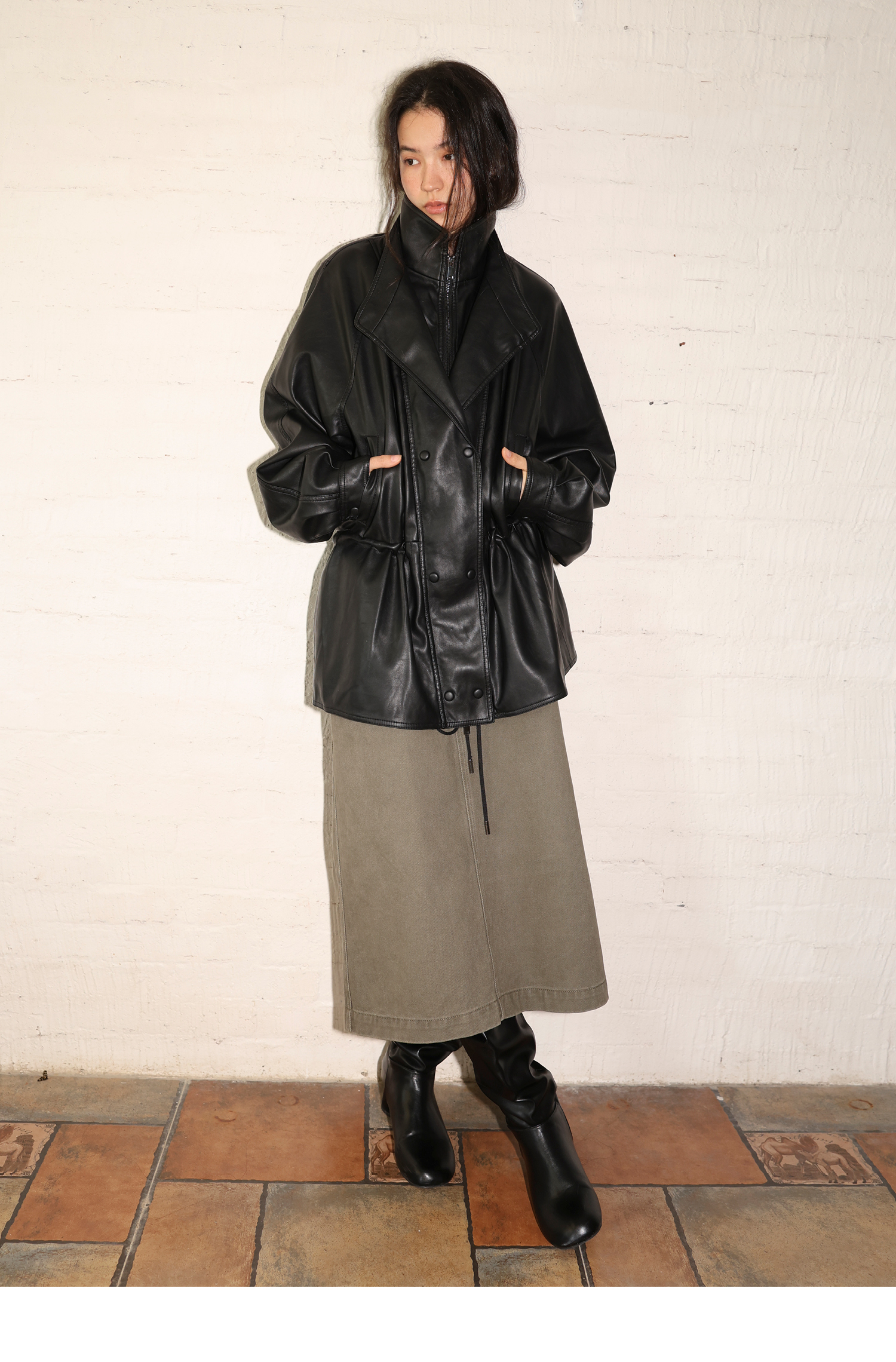 素舶 纯棉水洗彩牛松紧腰后开衩通勤工装分割设计显瘦直筒半裙