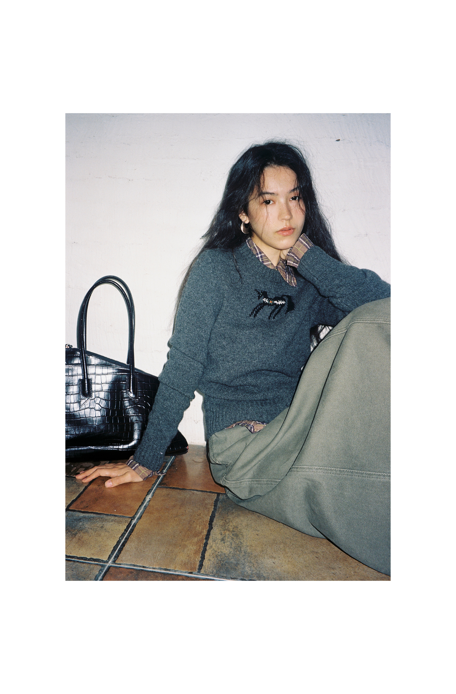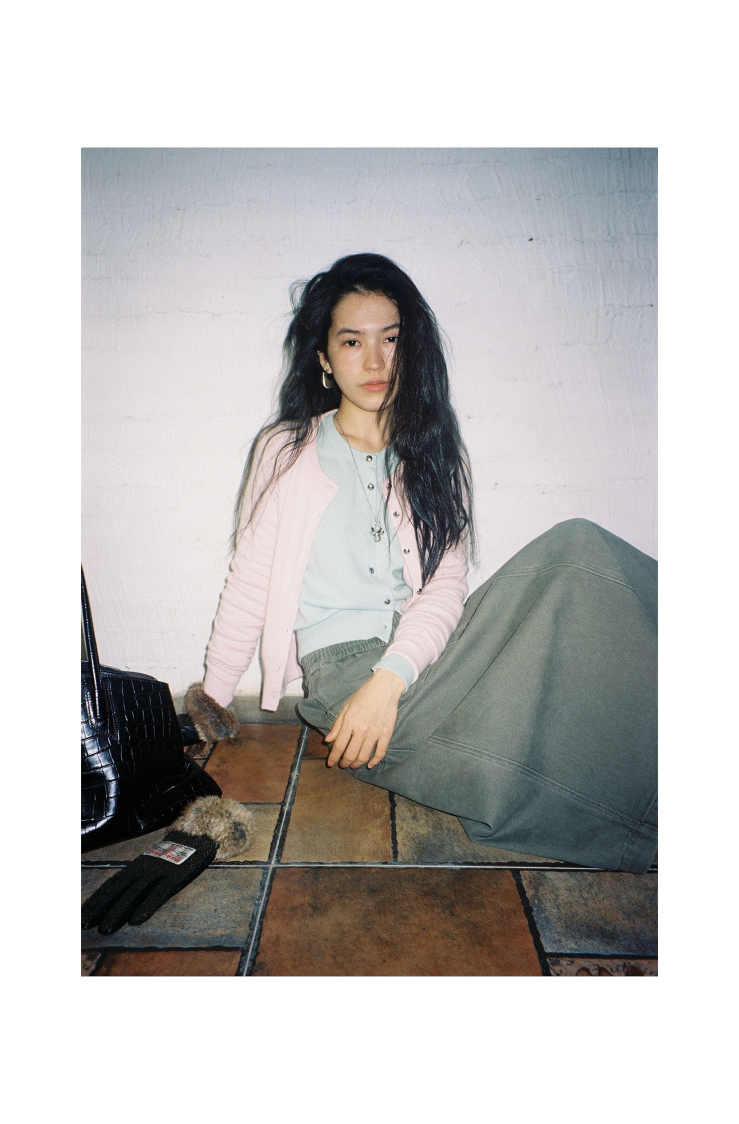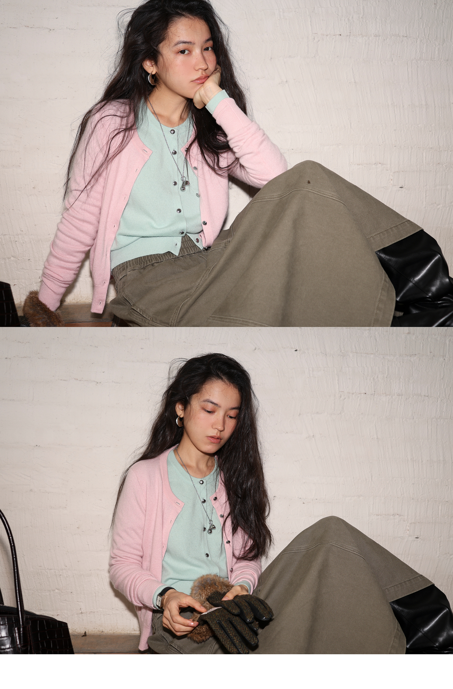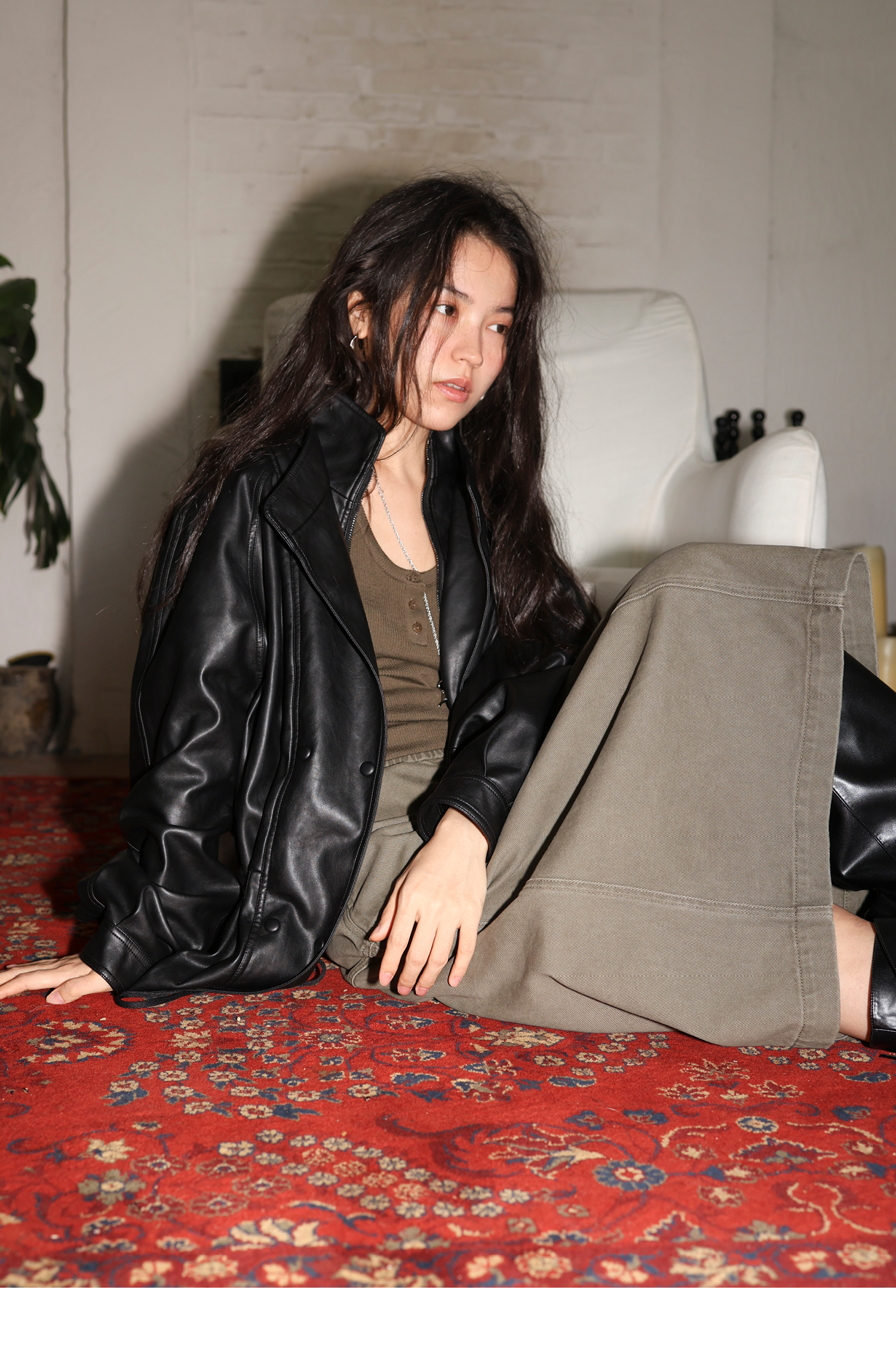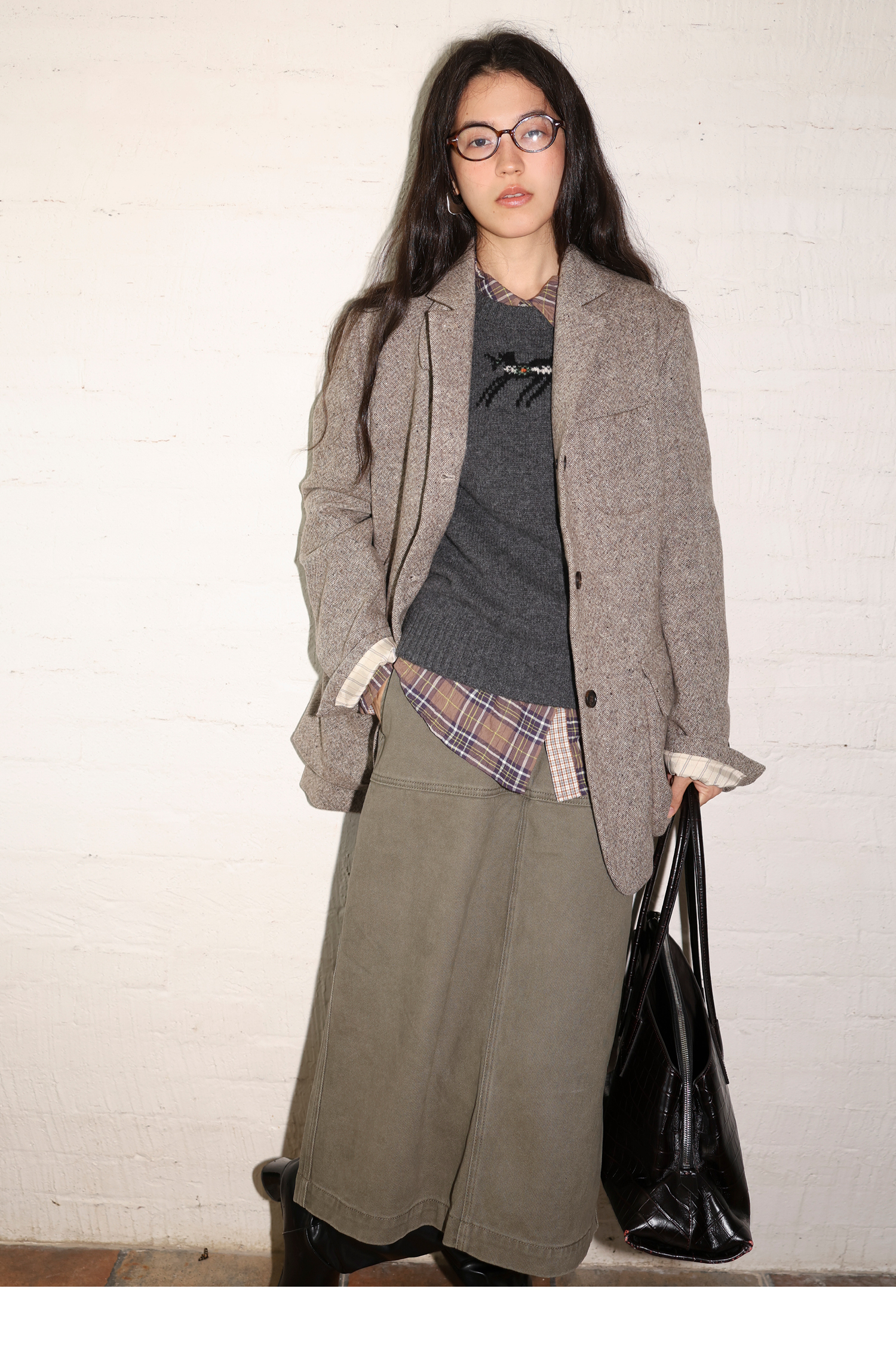 素舶 纯棉水洗彩牛松紧腰后开衩通勤工装分割设计显瘦直筒半裙