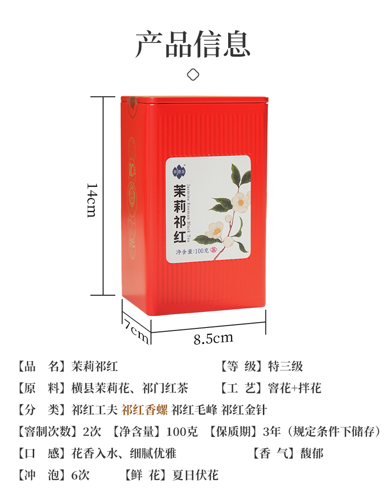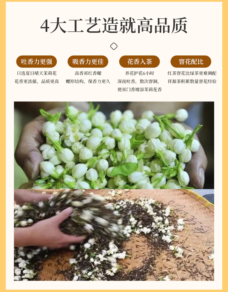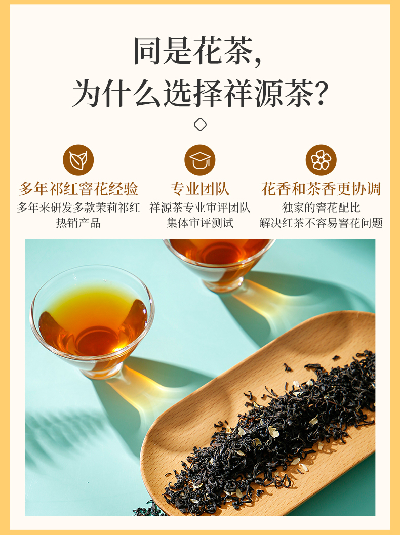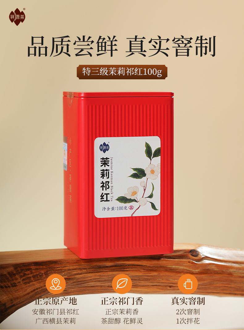 祥源茶丨茉莉祁红 茉莉花茶 祁门功夫红茶 特三级 100g