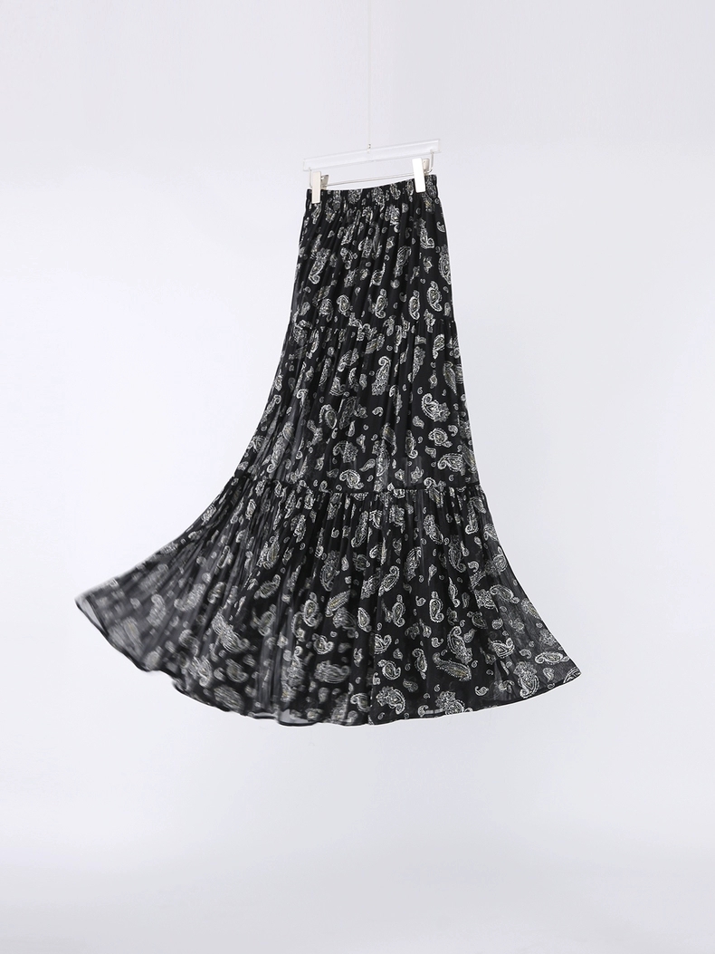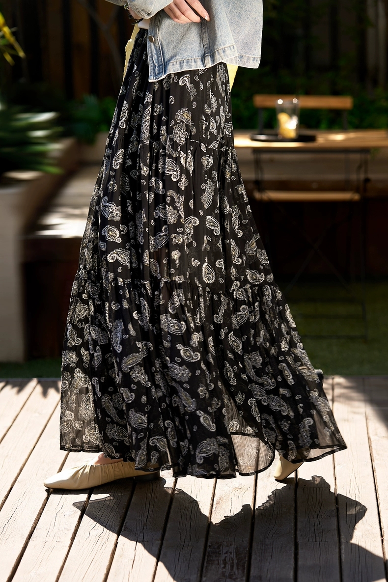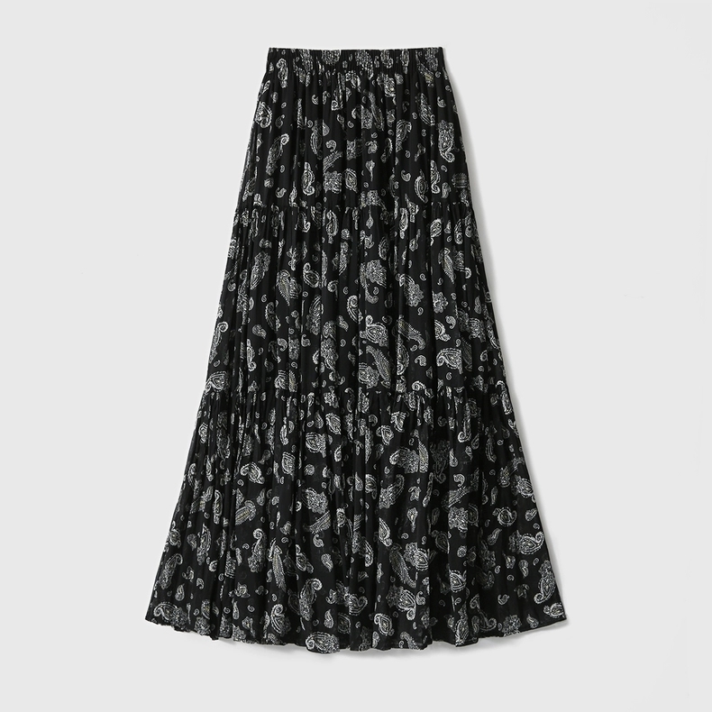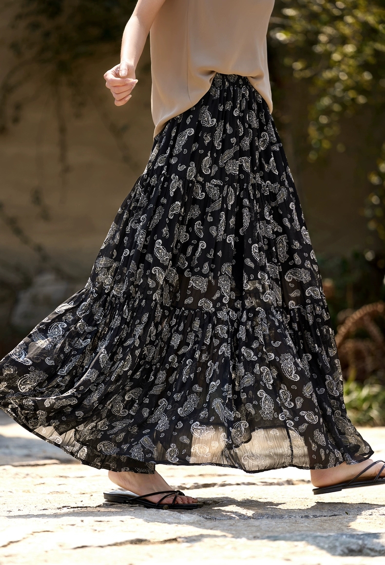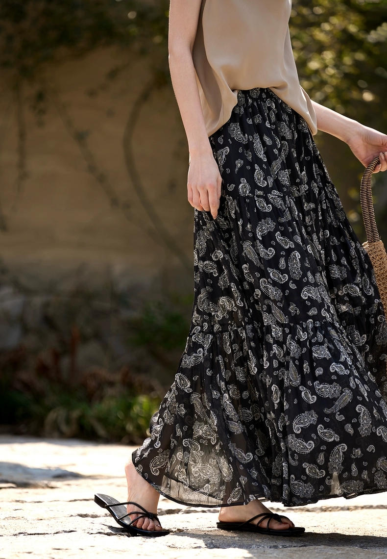 黑底白花的印花,既保留了浪漫风情,又不会像常规的碎花那样过于温柔甜腻,有点复古调性,裙身传递出的慵懒氛围,将松弛感轻松拉满。