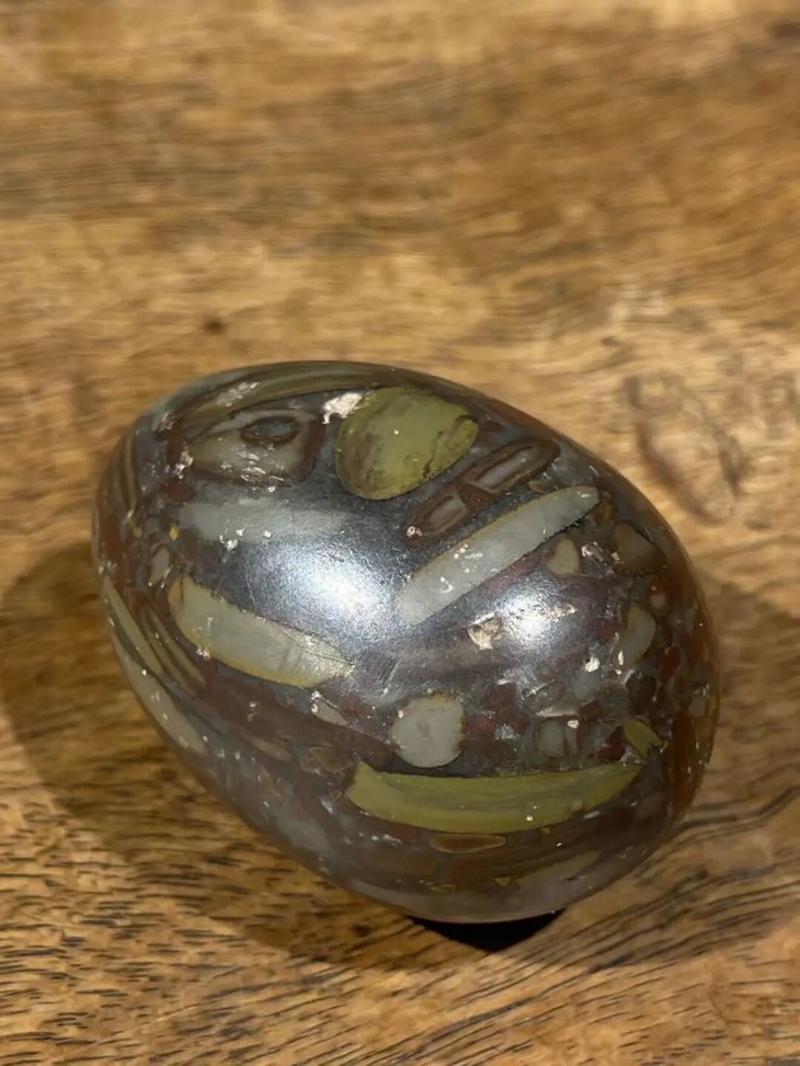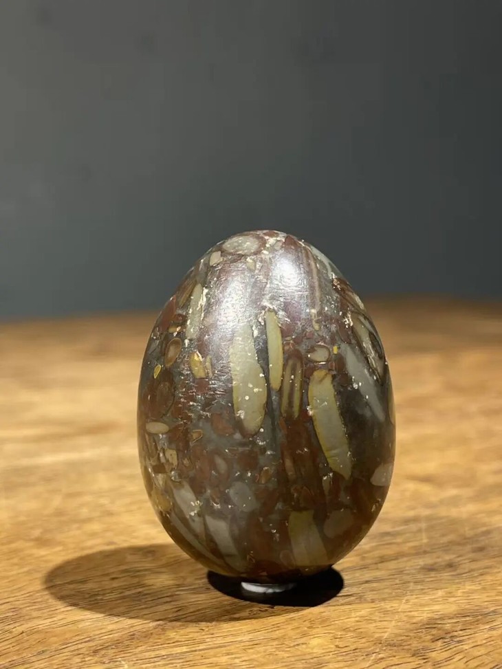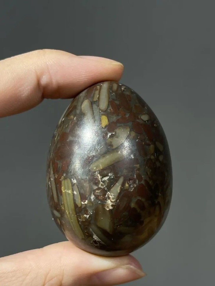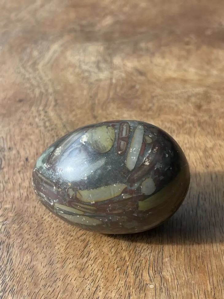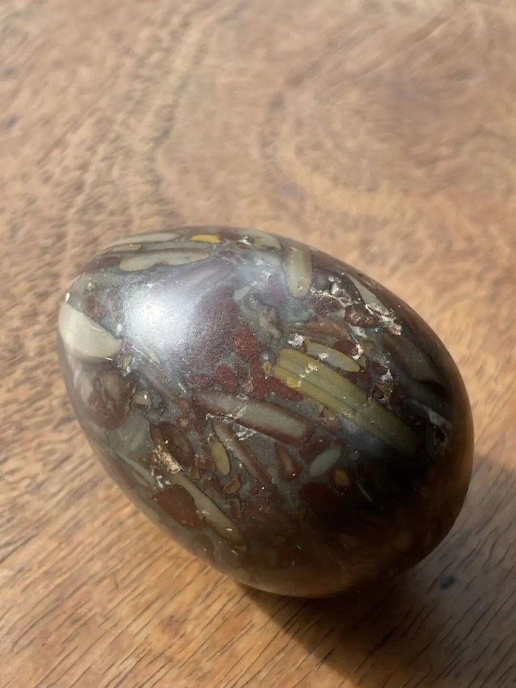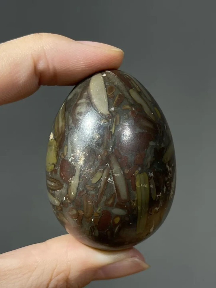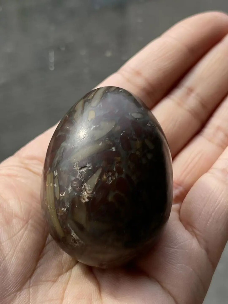 手掌中握着一粒或是两粒圆球盘捻或旋转是中国传统健身运动,此种球称捻球或是掌旋球,近代或称“健身球”,以手掌盘玩或是耍弄圆球锻练指掌能达到活络筋骨的健身活动。球多为铁质,钢制、玉石、核桃仁,此对天然雨花石圆球取材上好石材琢磨而成掌中球,布丁石或称雨花石,天然纹理流畅生动,近百年蛋形球表面包浆浑厚,握于掌心舒适温润,是难得一见原汁原味的老盘玩蛋形球。