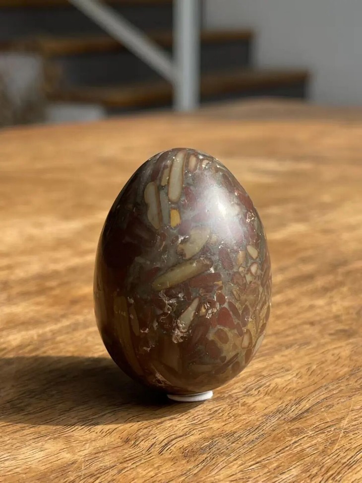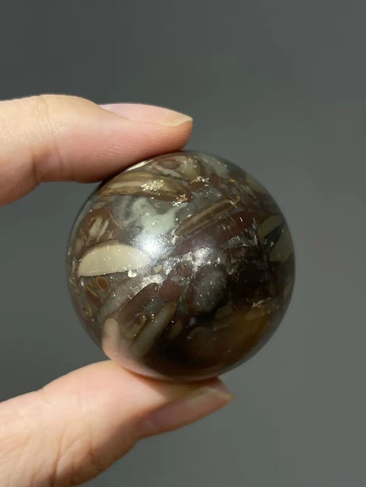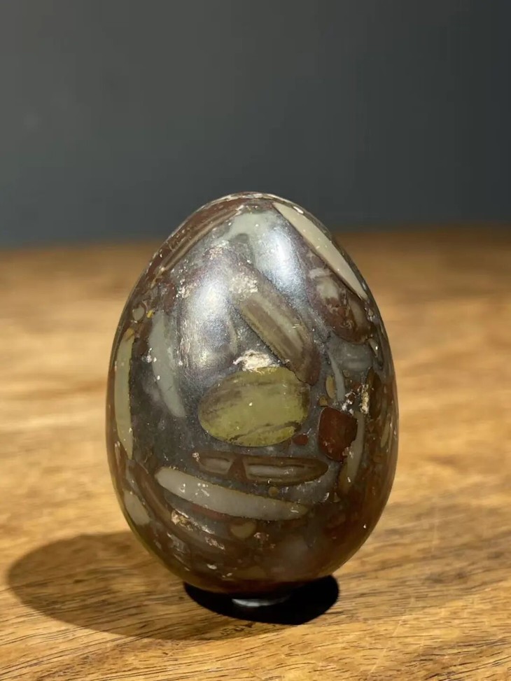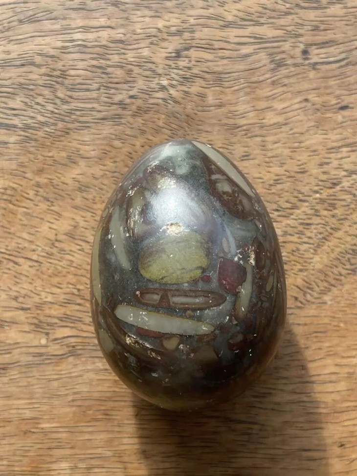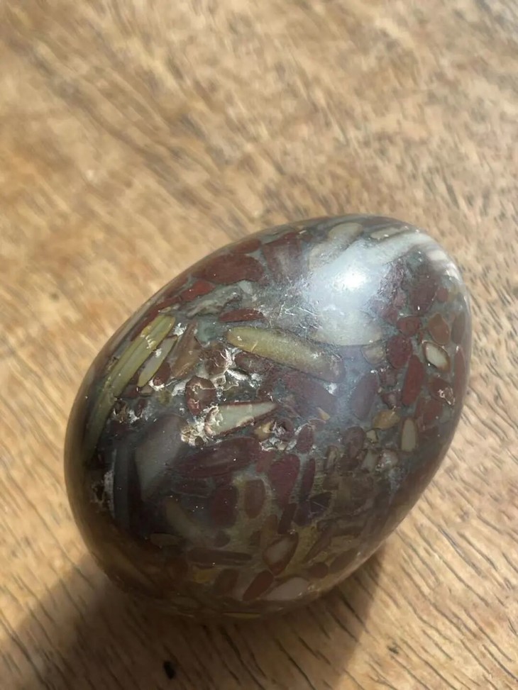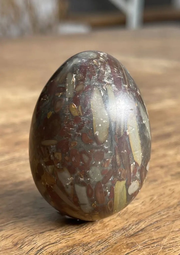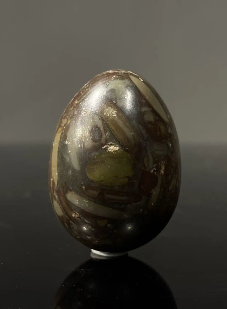 手掌中握着一粒或是两粒圆球盘捻或旋转是中国传统健身运动,此种球称捻球或是掌旋球,近代或称“健身球”,以手掌盘玩或是耍弄圆球锻练指掌能达到活络筋骨的健身活动。球多为铁质,钢制、玉石、核桃仁,此对天然雨花石圆球取材上好石材琢磨而成掌中球,布丁石或称雨花石,天然纹理流畅生动,近百年蛋形球表面包浆浑厚,握于掌心舒适温润,是难得一见原汁原味的老盘玩蛋形球。