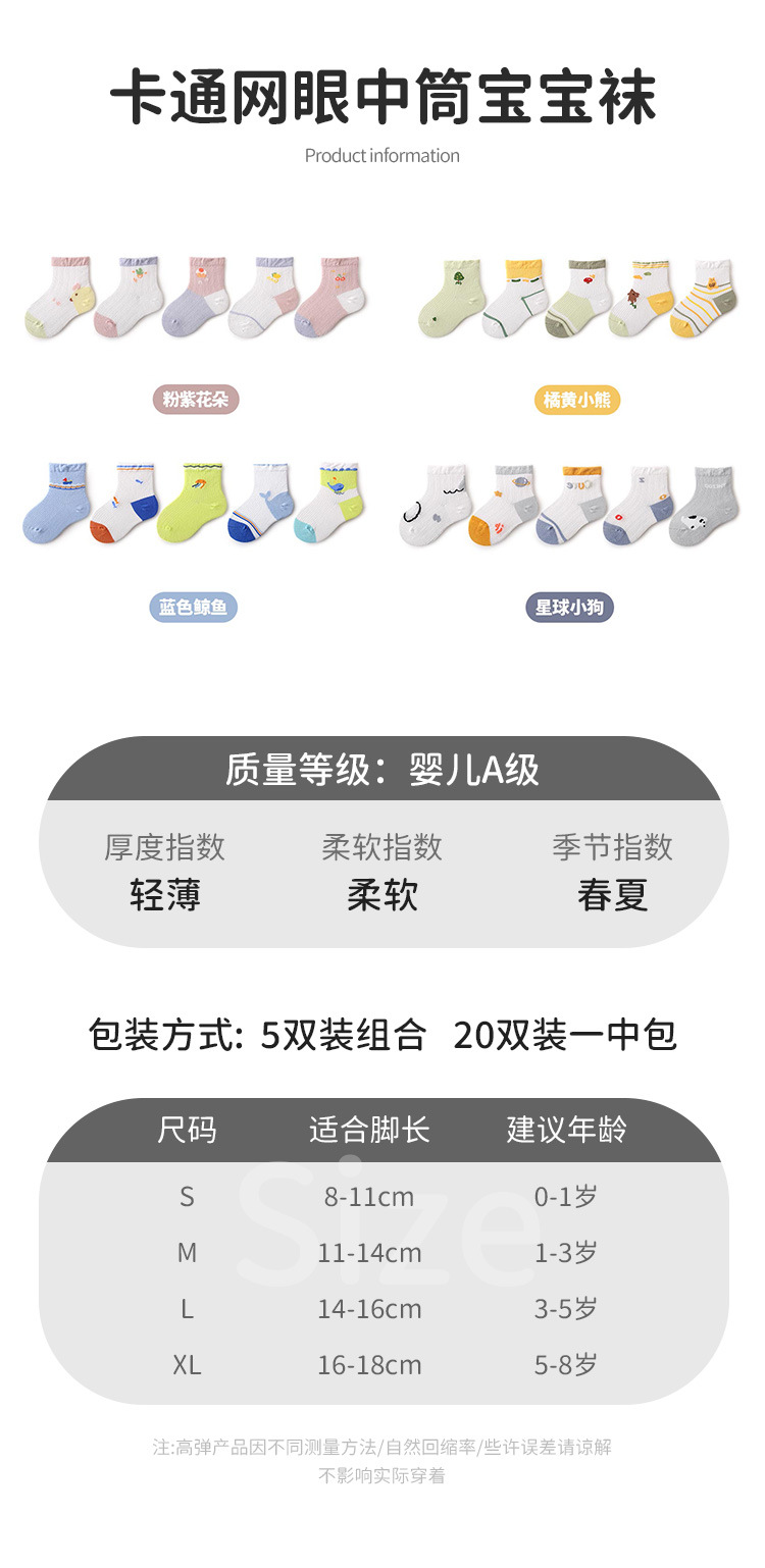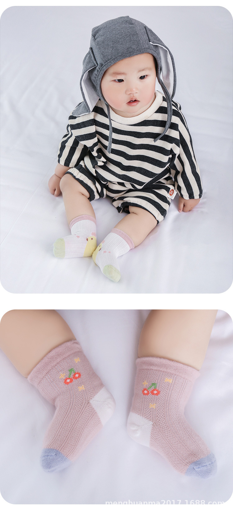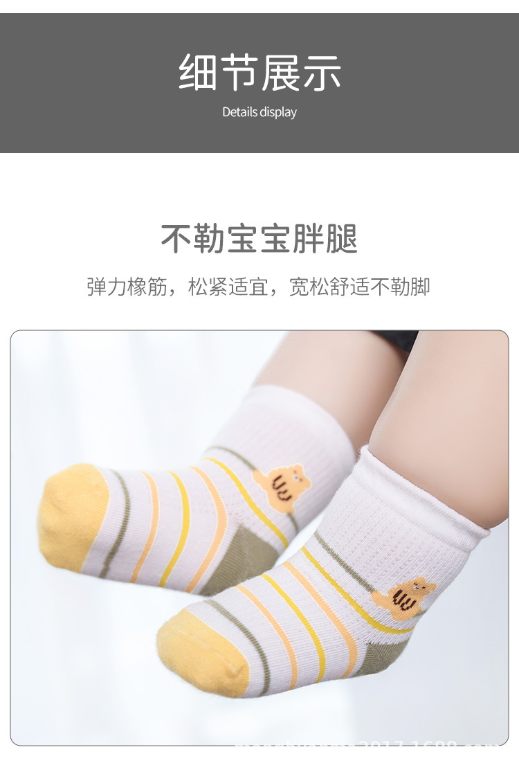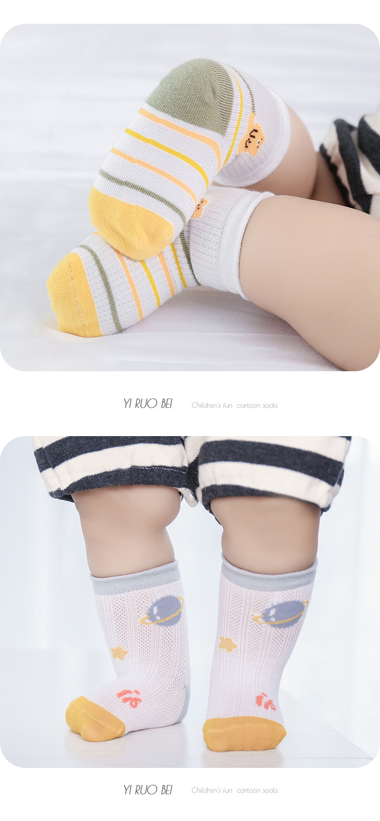 【5双装】23年春夏新款无骨缝合宝宝中筒袜子薄款精梳棉婴幼儿童男女网眼袜