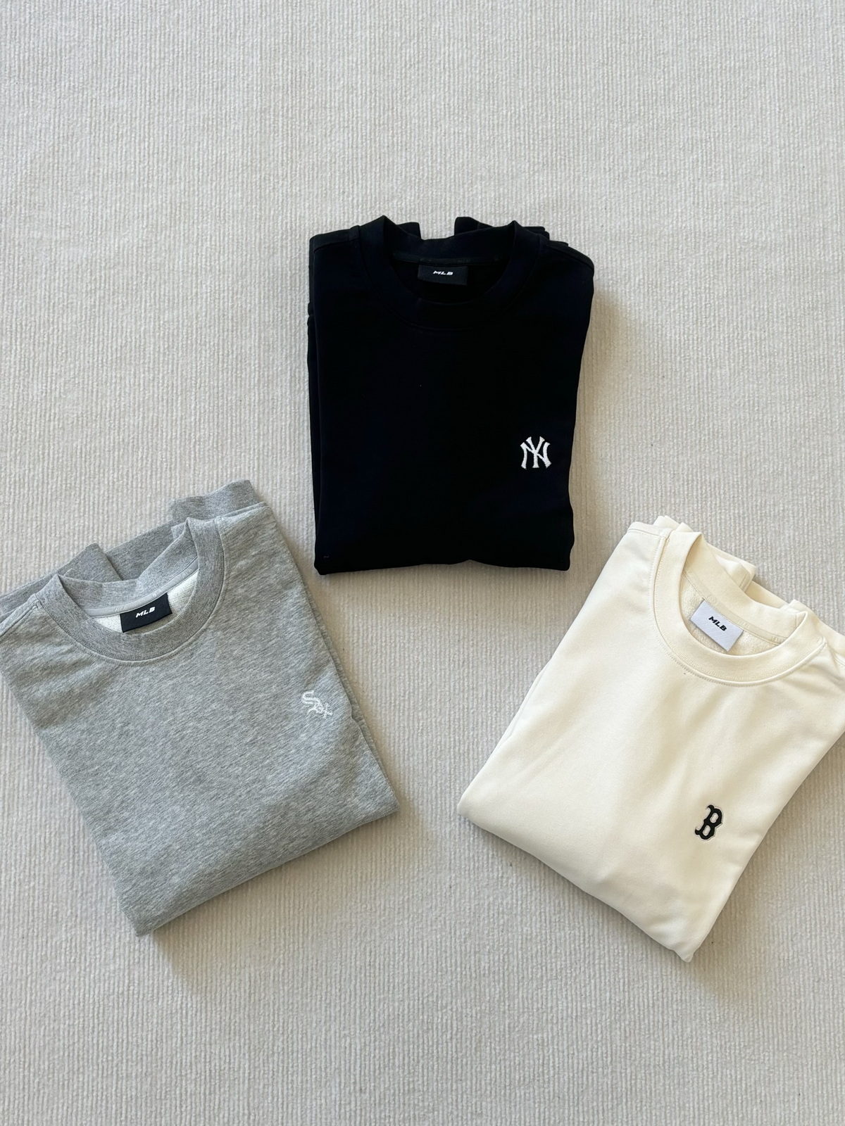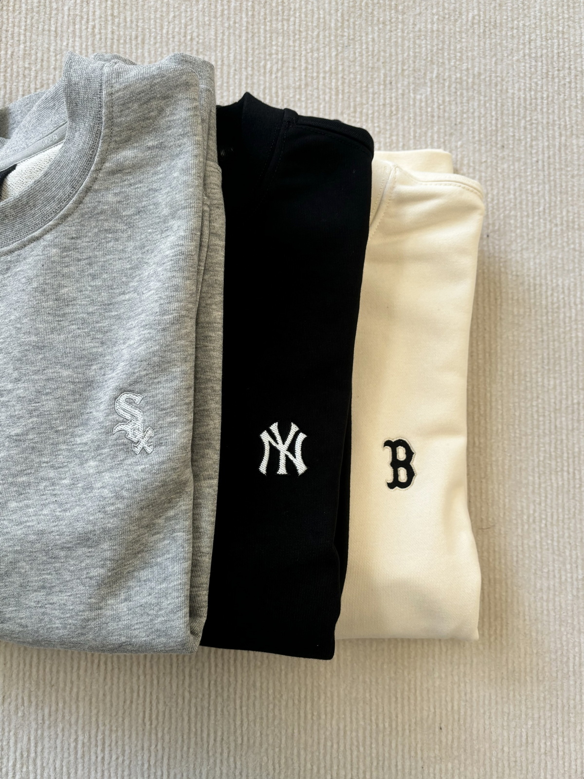 正品,去吊牌,威海贸易公司订单,正品单,25春款,MLB男女卫衣2025经典基础刺绣小logo休闲圆领运动套头衫3AMTB0134 颜色 黑色 米色 灰色 尺码smlxlxxl