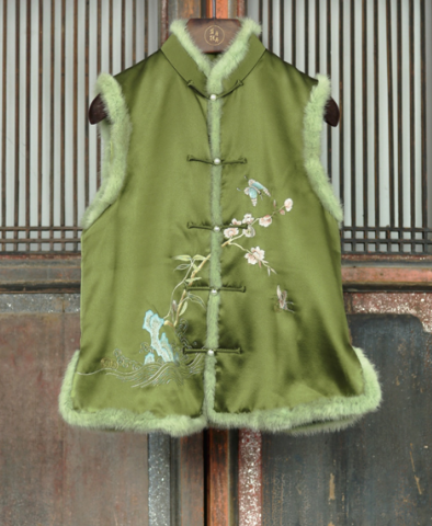 盛唐牡丹 |老工艺花蕾缎真丝马甲正反两穿