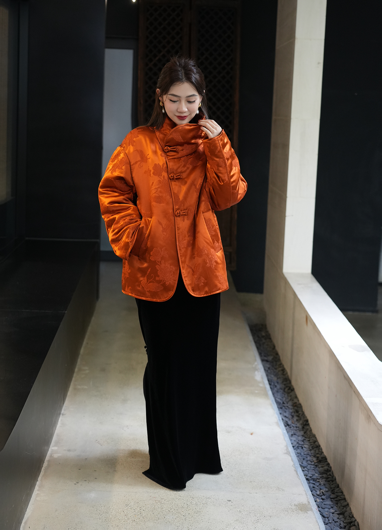盛唐牡丹| 蝶恋花真丝冠乐绉偏襟棉外套
