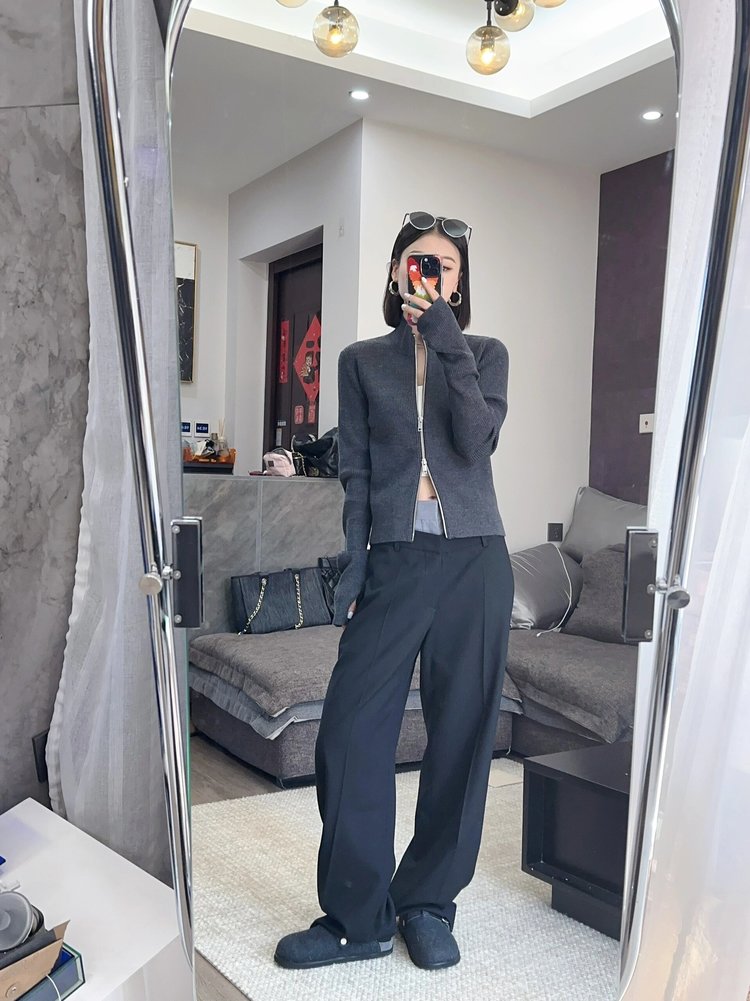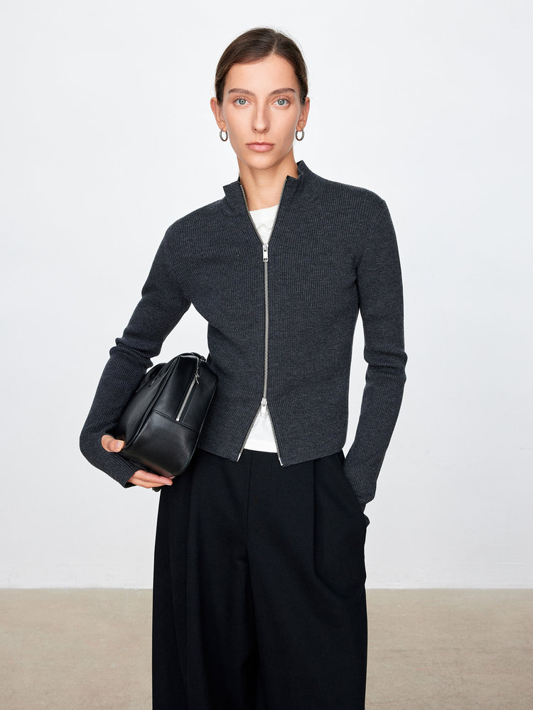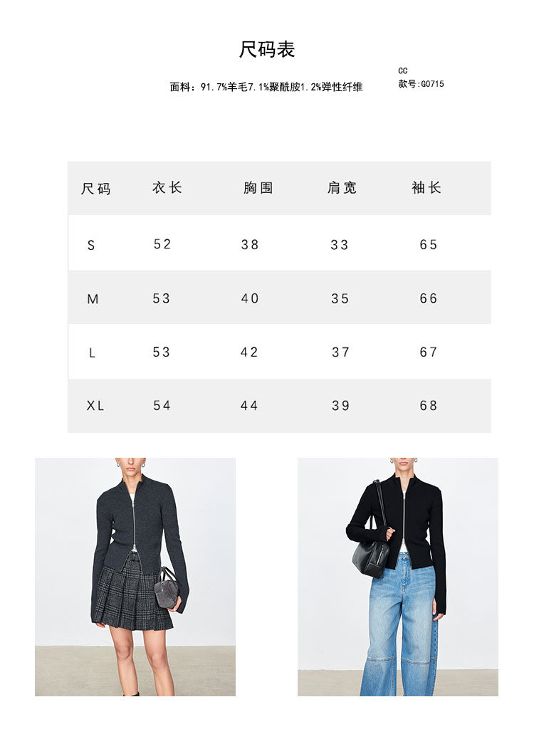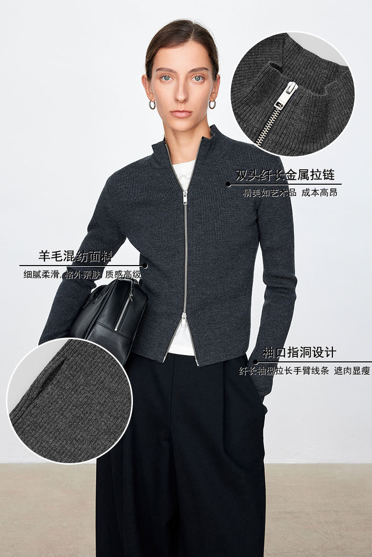 BELLA风双开拉链短开衫 双头纤长金属拉链 羊毛面料细腻亲肤 袖口指洞设计 修长H版型 遮肉显瘦