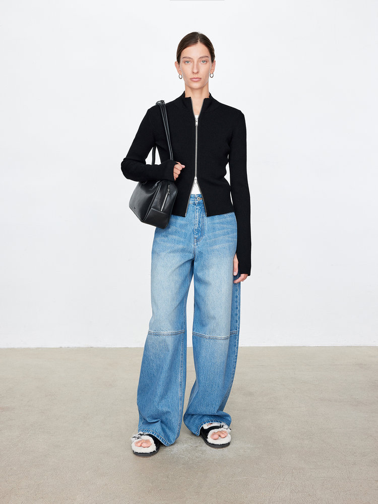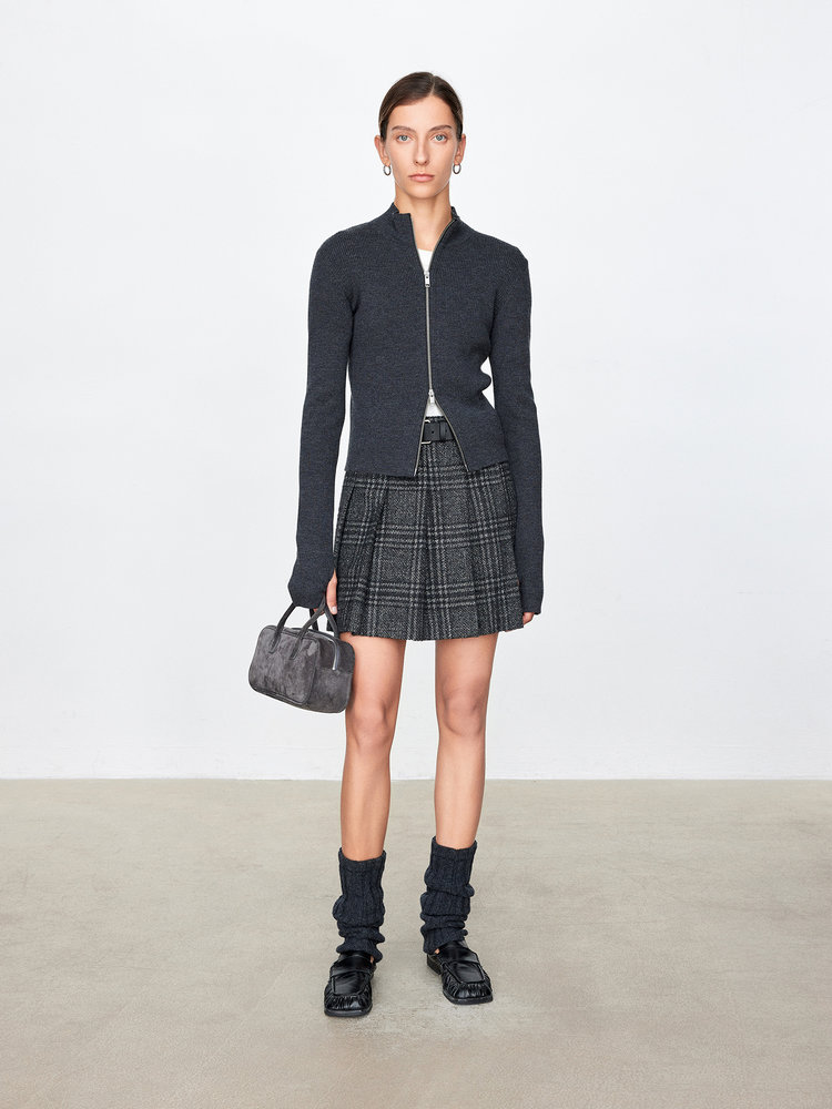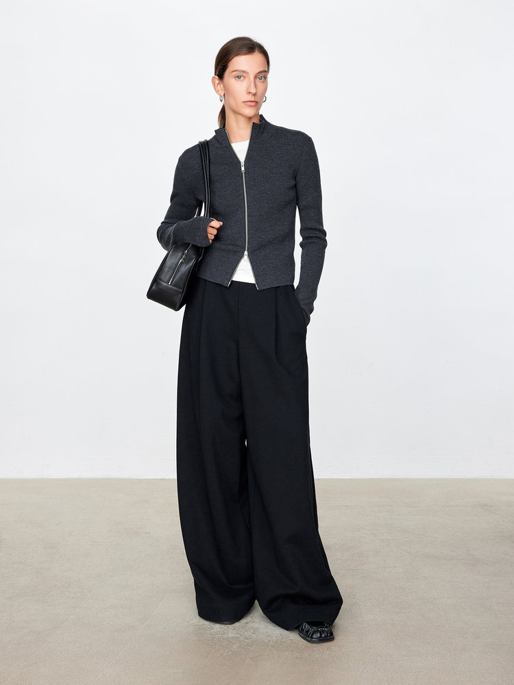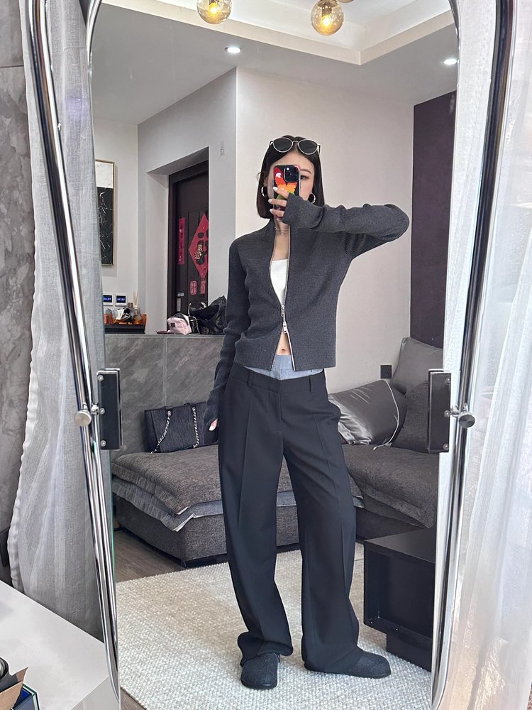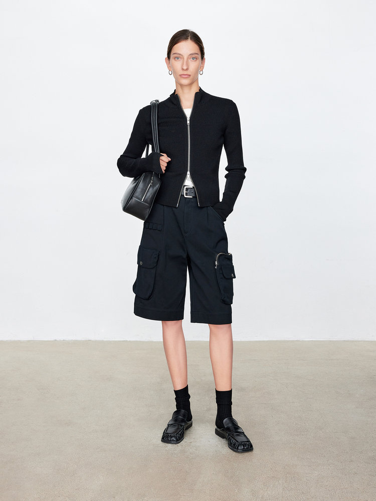 BELLA风双开拉链短开衫 双头纤长金属拉链 羊毛面料细腻亲肤 袖口指洞设计 修长H版型 遮肉显瘦