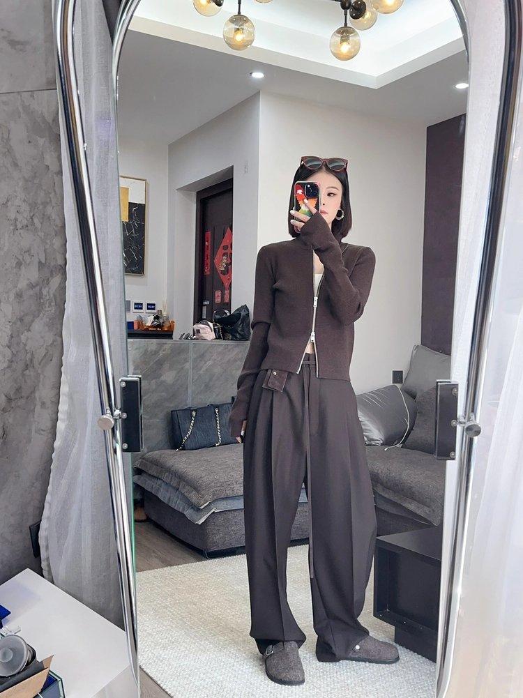 时装感半高领设计,博主造型信手捏来,经过过次改版,自带松弛感舒适度更高,高度恰到好处 舒适贴合恰到好处的包裹脖颈,经紧密处理挺廓有型不易变形,凸显脖颈修长,与大身套口,精细复杂,工艺繁,难度大,纤长袖型拉长手臂线条,遮肉显瘦,袖口指洞设计,可常规长袖亦可套指穿法,安全感满怀,开启一件两穿造型感。
