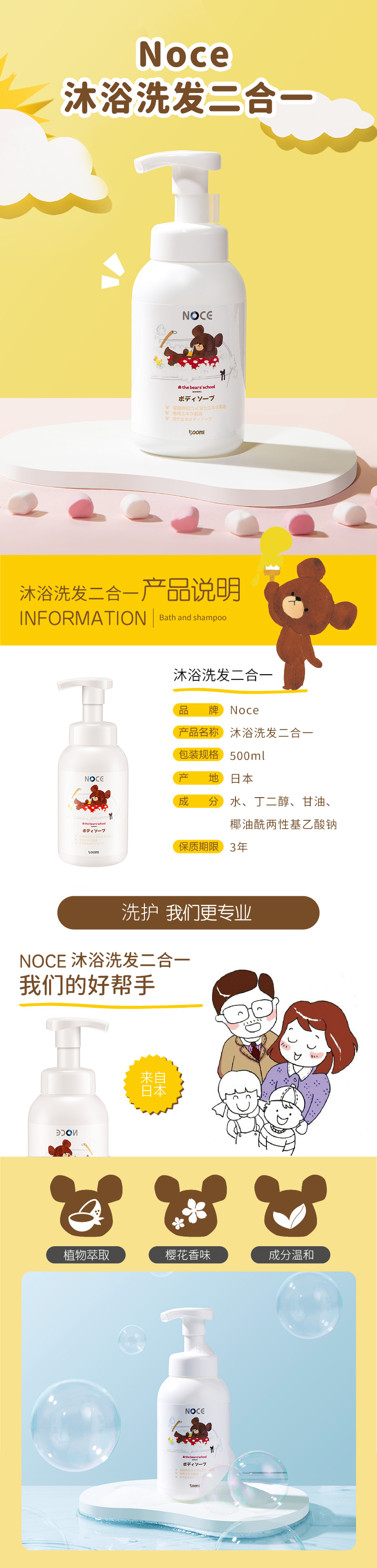 日本NOCE 沐浴洗发二合一樱花香味 500ml
