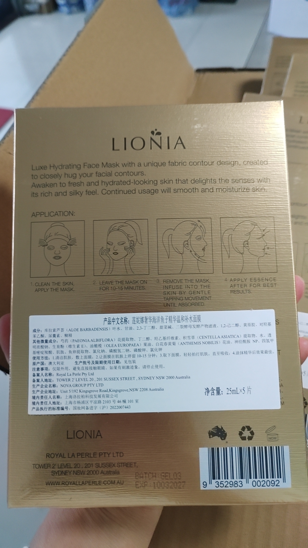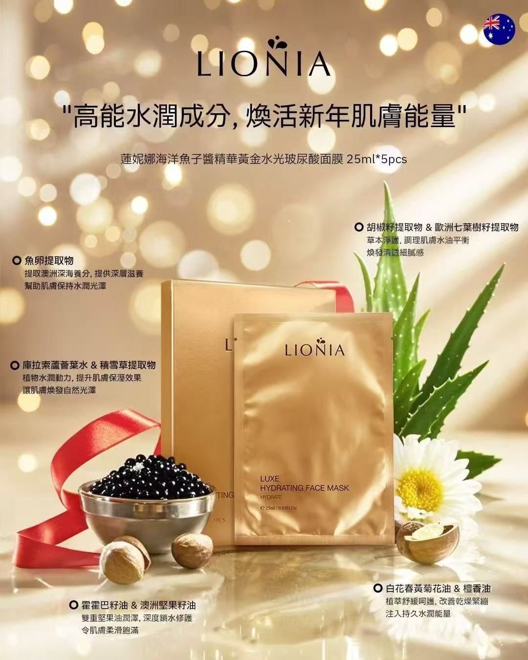 澳洲莲妮娜奢华海洋鱼子精华温和补水面膜 5片/盒 【中欧班列精选】SHJF