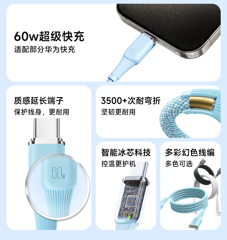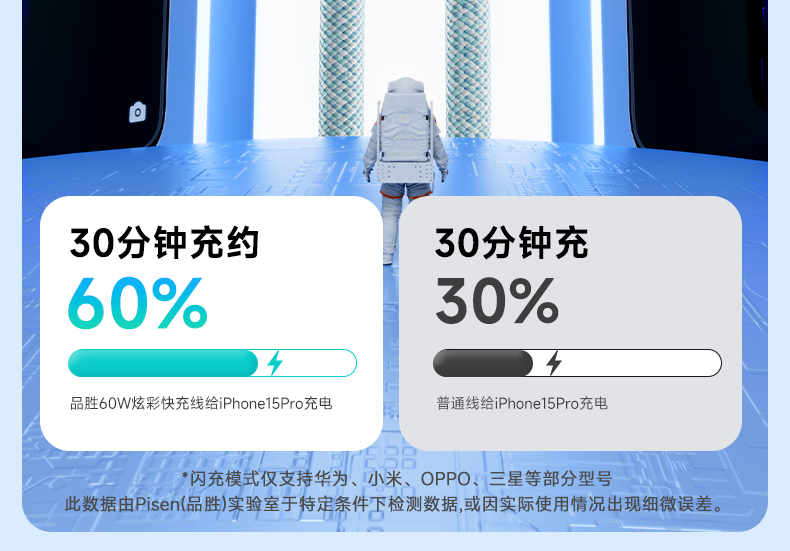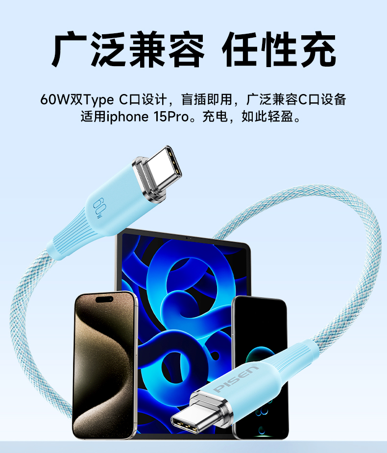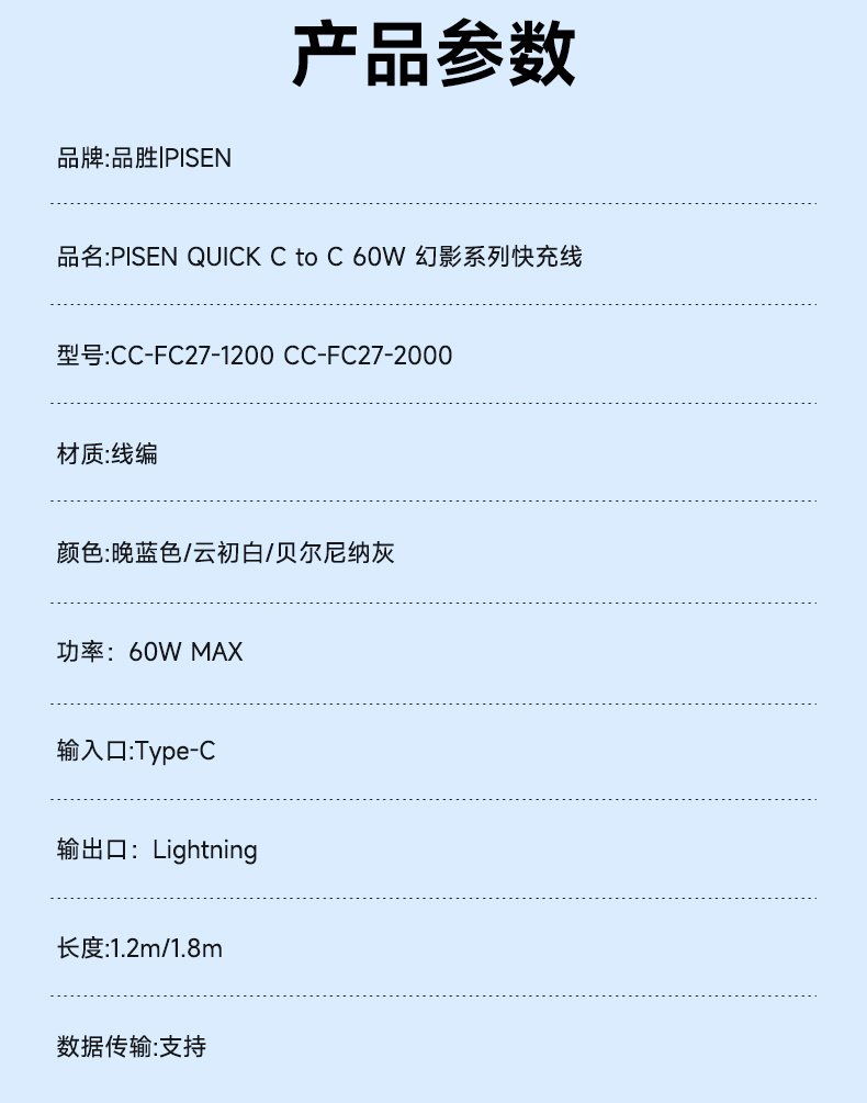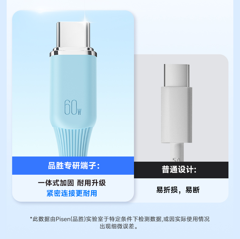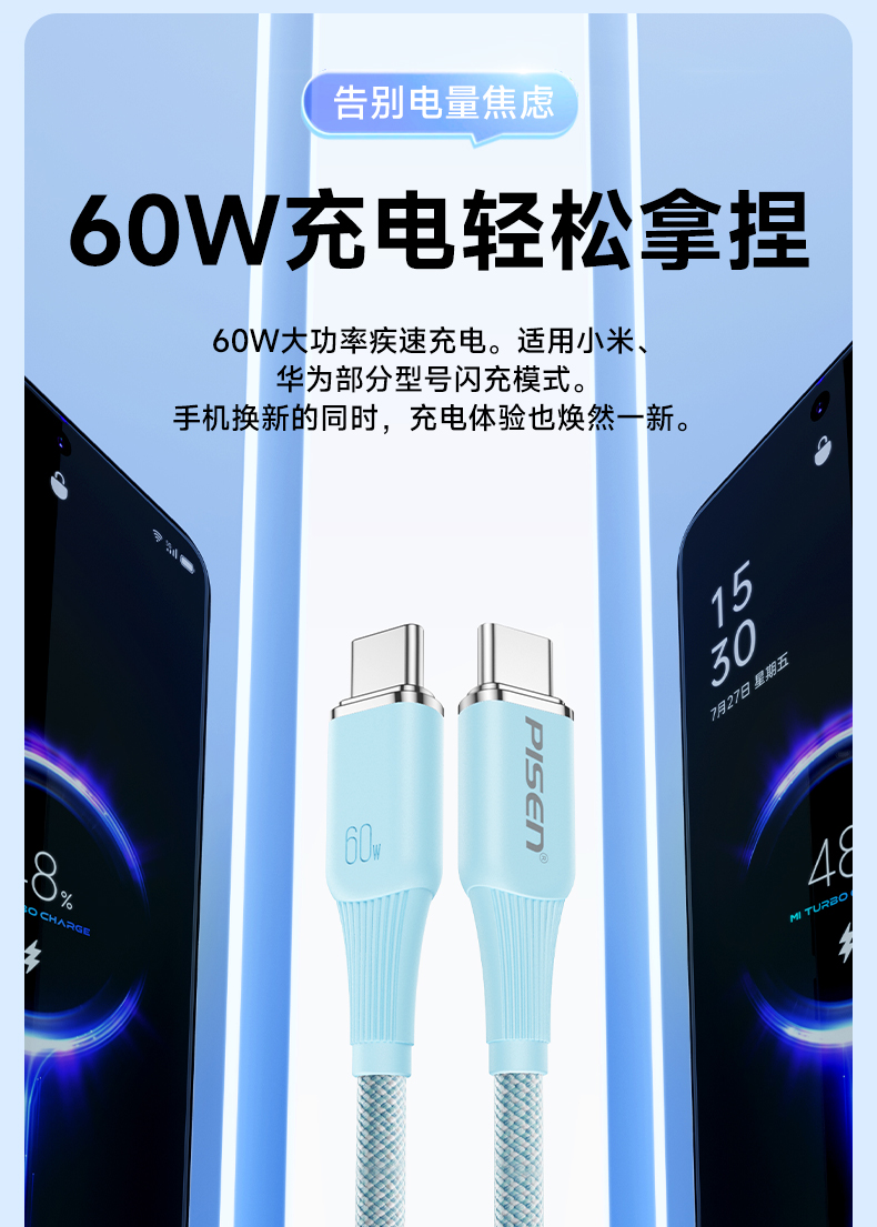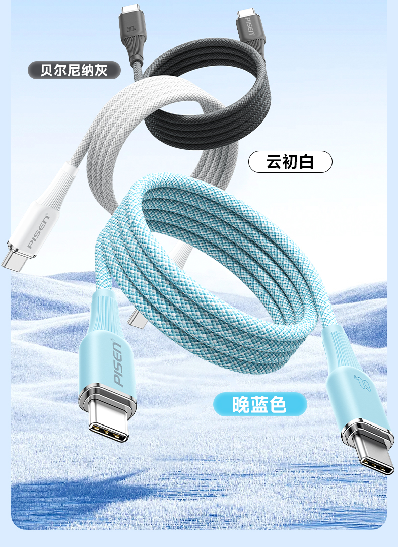 品胜 C to C 60W幻影系列快充线1.2米 支持苹果15快充/支持数据传输