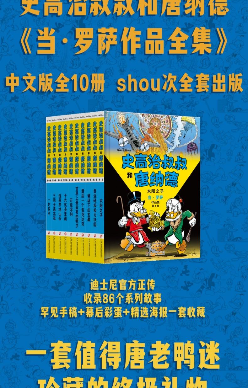 史高治叔叔和唐纳德:当·罗萨作品集:全10册 这是一套唐老鸭迷值得珍藏的终极礼物。迪士尼官方10册限量精装全集,完整收录“彩蛋大师”当·罗萨代表作!献给所有曾是孩子的大人,和所有拥有冒险梦的孩子!