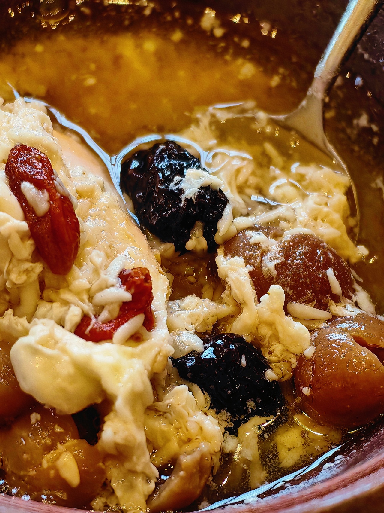 紫晶枣的枣体细长,表面纹理细腻,色泽紫黑而光亮,宛如宝石般璀璨,散发着浓郁的枣香。咬上一口,口感软糯香甜,适口性极佳,风味独特!除了直接啃,紫晶枣也是很推荐泡水喝,放个3-5颗,加些沸水,焖泡个5-10分钟,就是一杯甜甜的枣汤了,多喝喝,养养生!我是还用来炖酒酿蛋哎,更是补血补气!