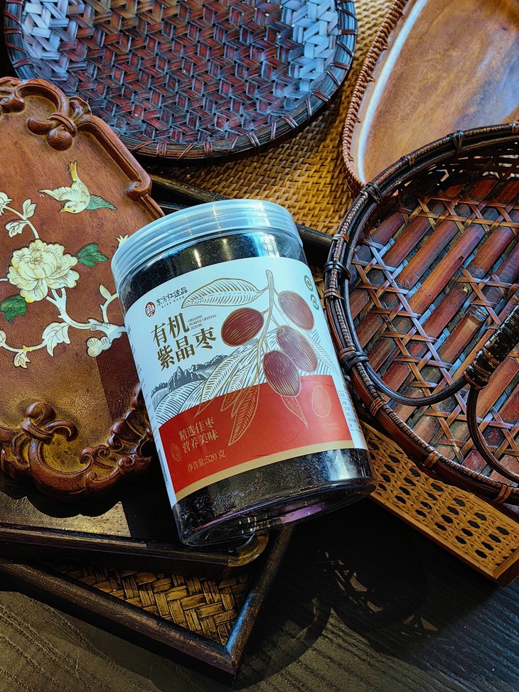 这罐有机紫晶枣,就是来自佳县,从种植到收获,每一个环节都严格按照有机认证的管理体系进行。不打农药、不施化肥、不用化学添加剂,纯粹依赖自然之力,让每一颗枣子都能天然而健康地生长。待果子成熟后,工人们精心挑选7-8分熟的新鲜有机红枣,通过人工细致筛选,剔除坏果与小果,再历经六次反复清洗,确保枣子纯净无瑕。紫晶枣的制作过程更是匠心独运,需经过蒸煮、烘焙与晾晒三道精细工序,历时整整七天,方能将2到3斤的鲜枣凝练成1斤的紫晶枣。