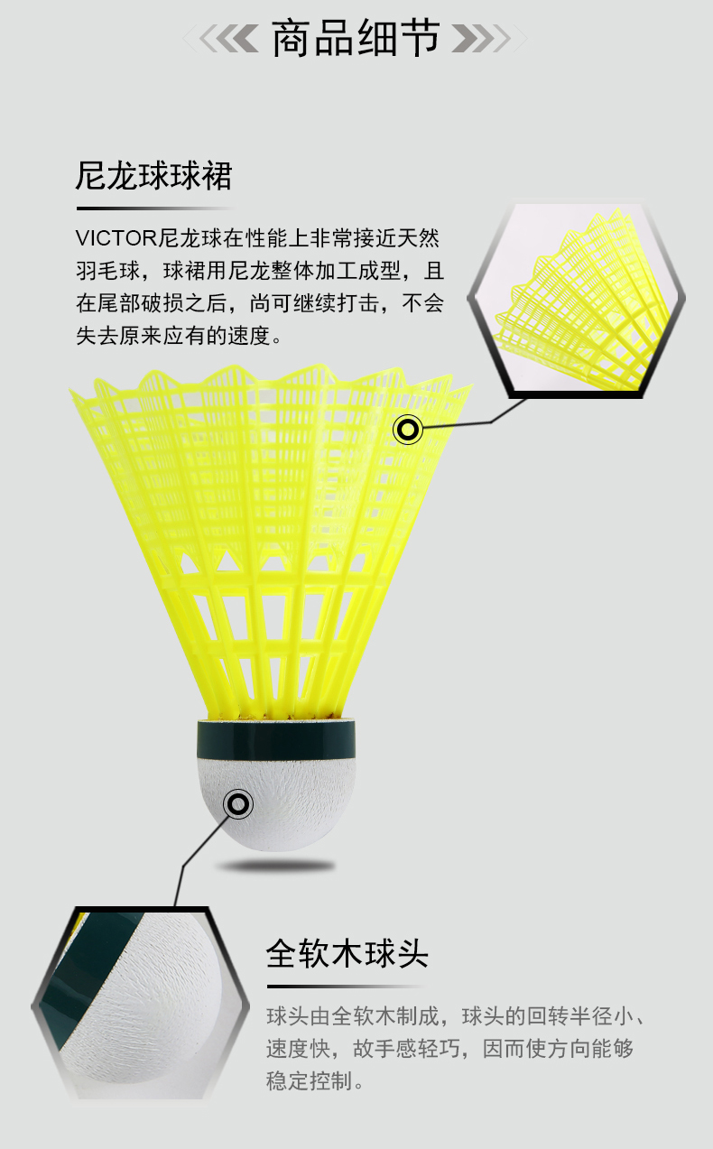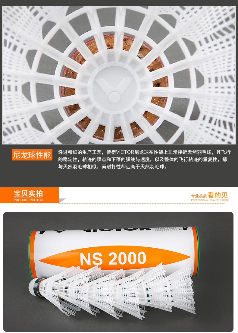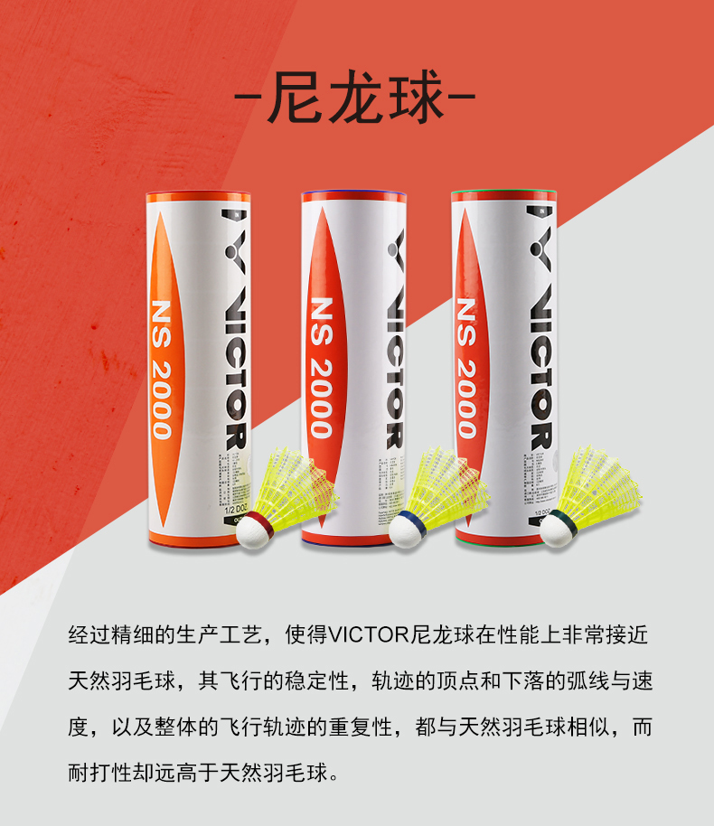 胜利威克多 羽毛球 尼龙球 NS2000 6只装