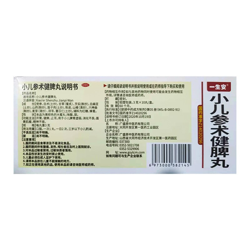 广盛原一生安小儿参术健脾丸10丸开胃健脾止泻消化不良面黄肌瘦