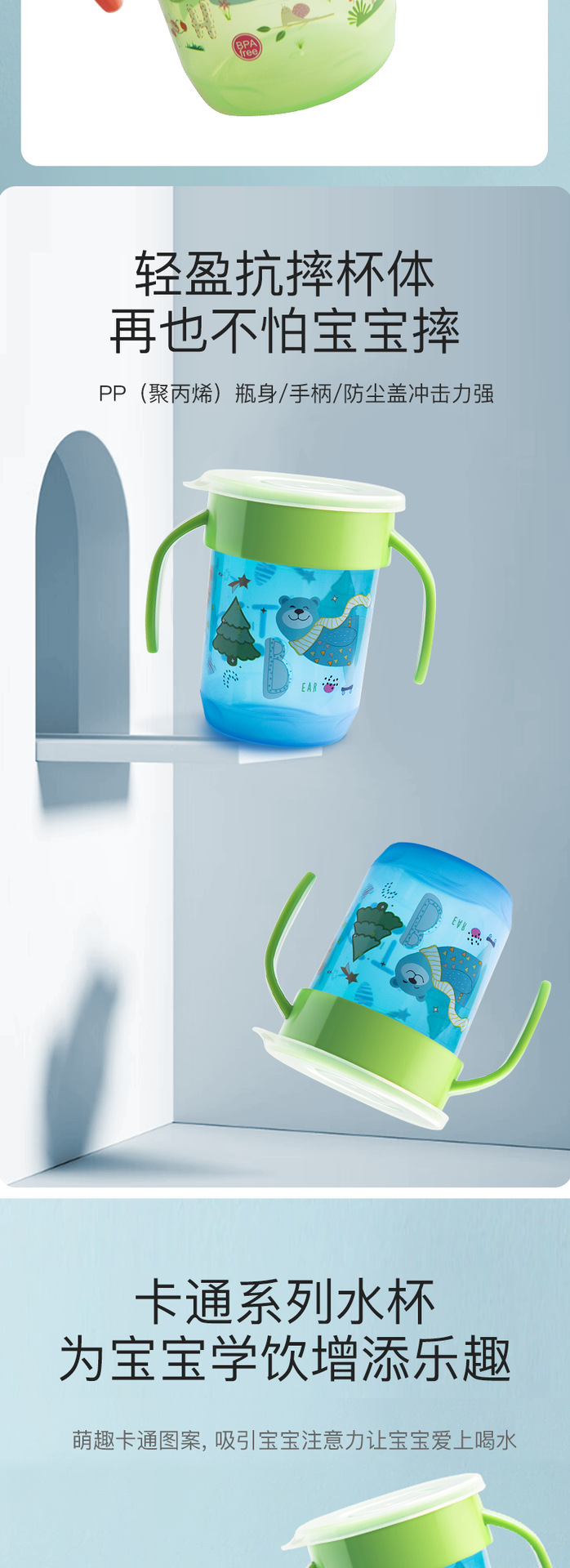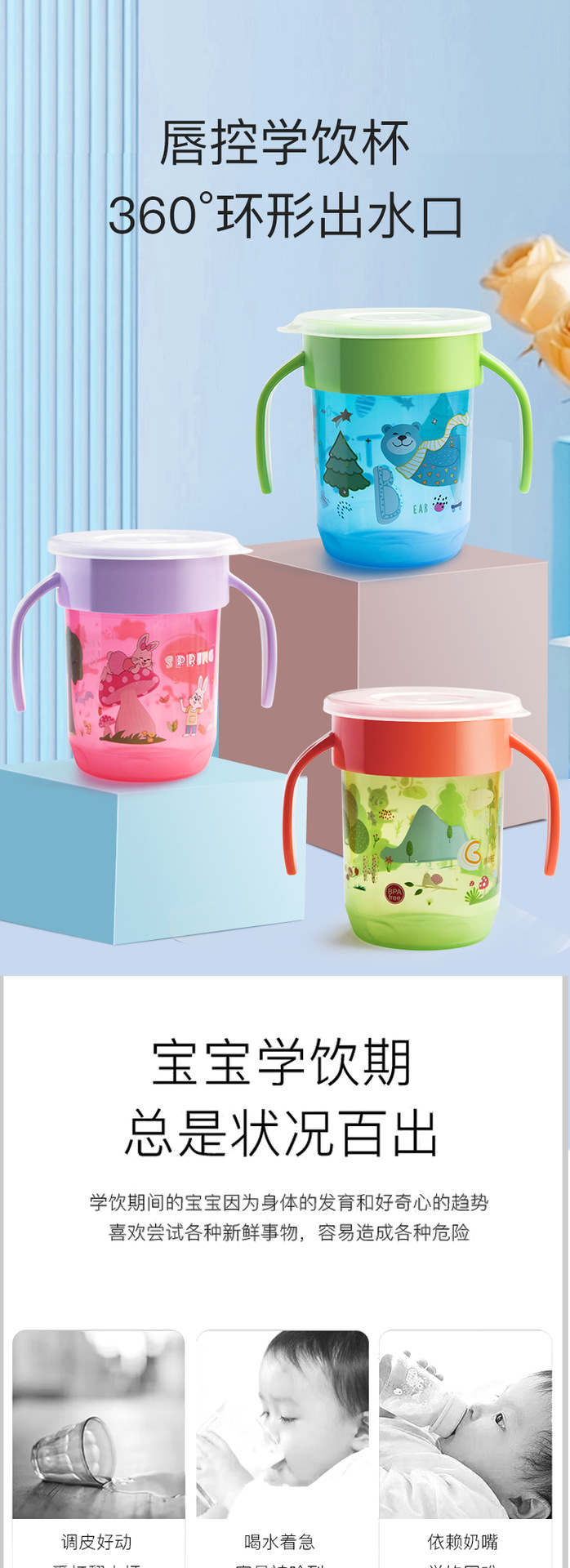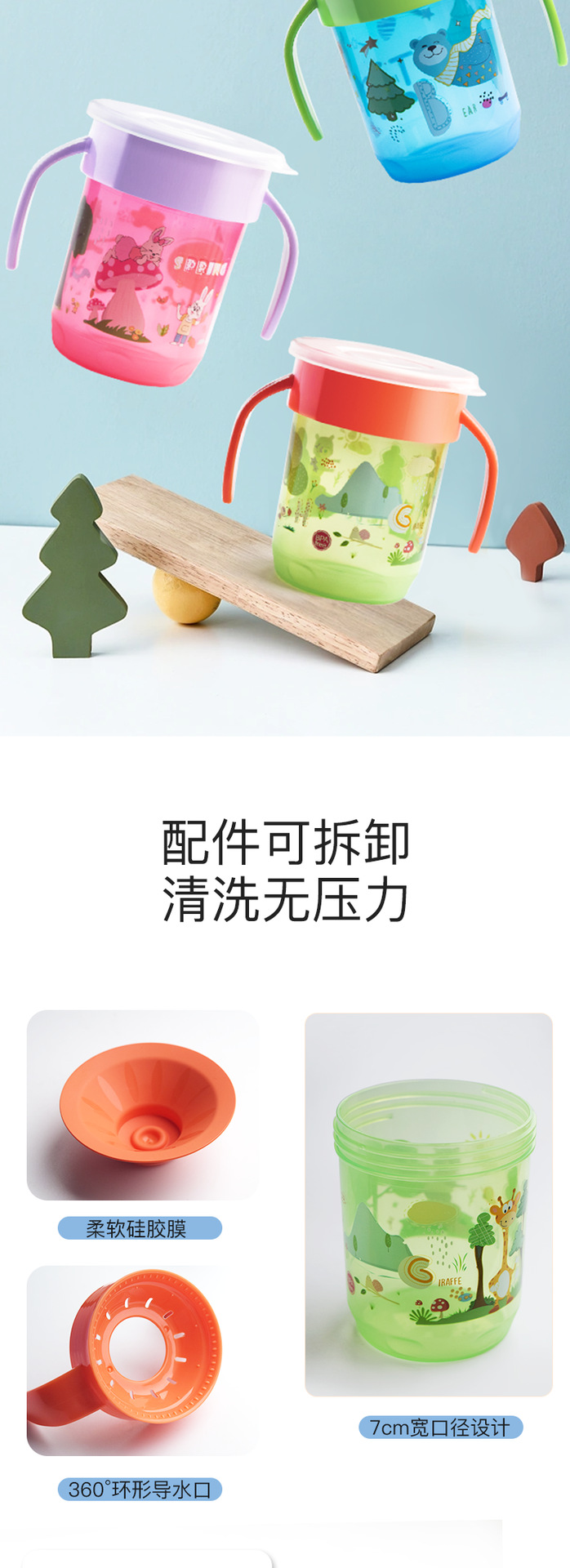 【呵护乳牙 轻松学饮】儿童360魔术水杯大口径便携学饮杯 密封防漏带手柄婴幼 儿学饮杯