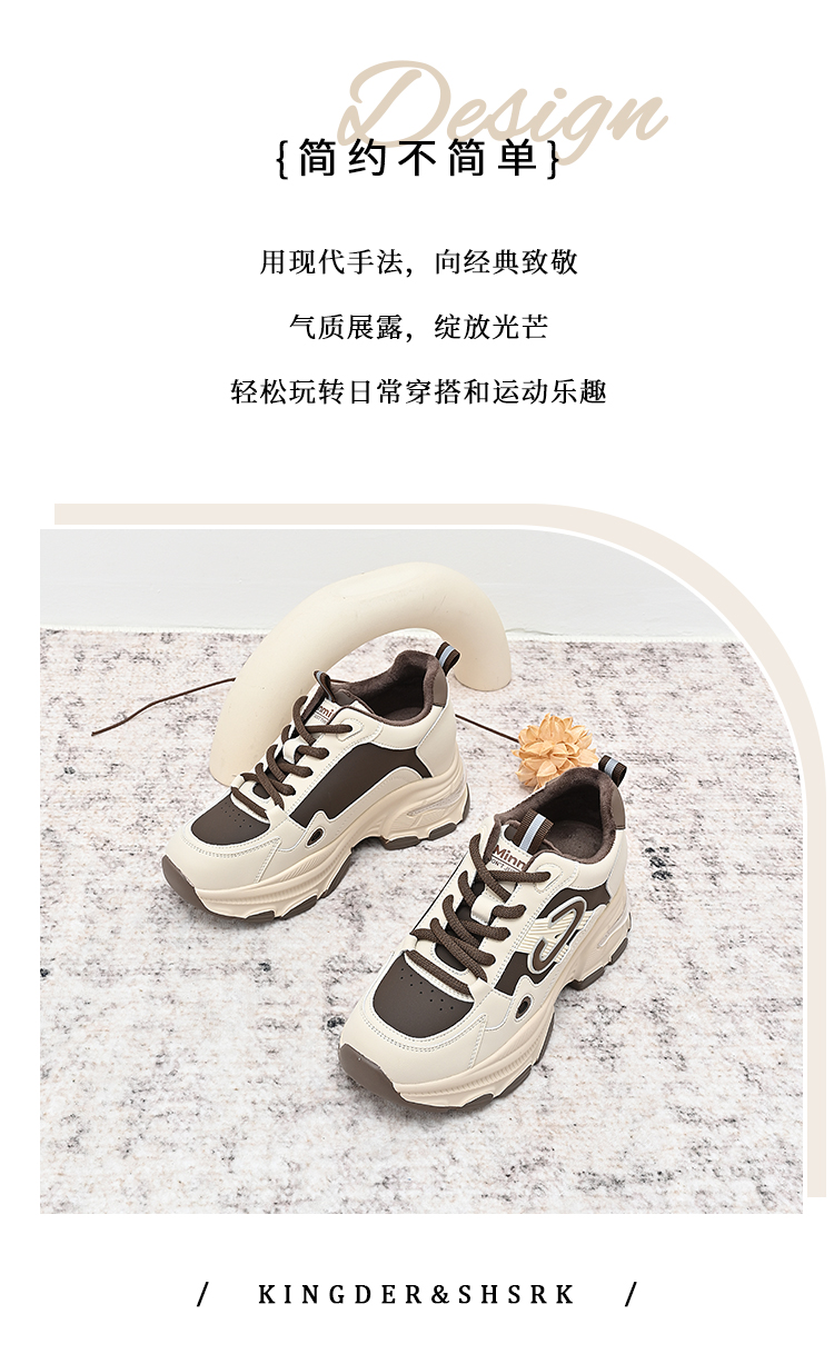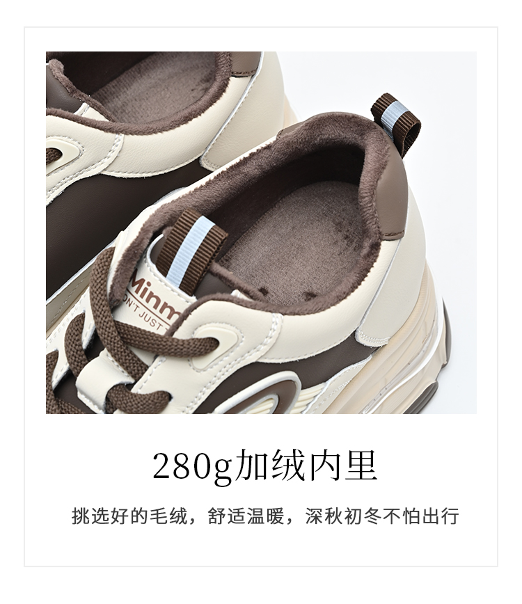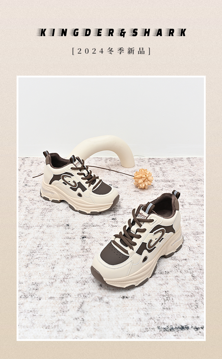 经典鲨2024年冬季款韩版拼色系带加绒舒适显高休闲老爹鞋女KW160-D58291