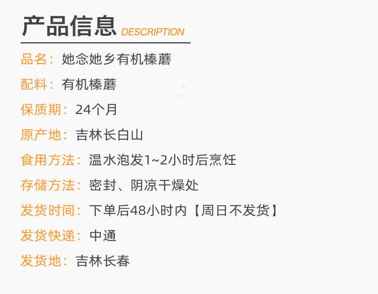 她念她乡 有机榛蘑 干蘑菇 80g/盒