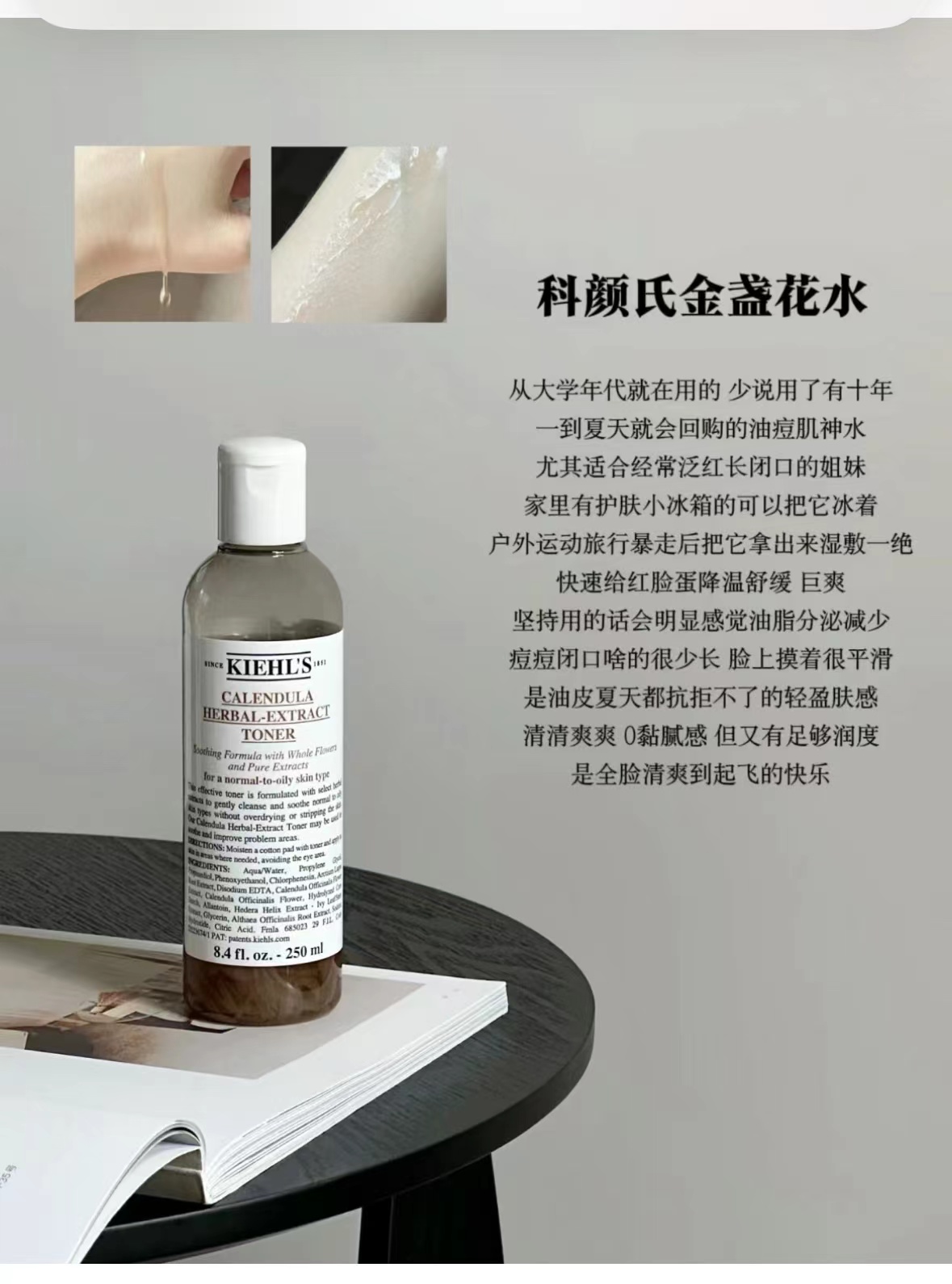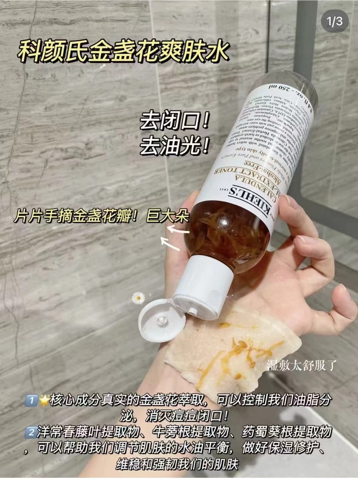 250ML金盏花爽肤水 可以去闭口 去油光 he心成分真实的金盏花萃取 清新温和不含酒精