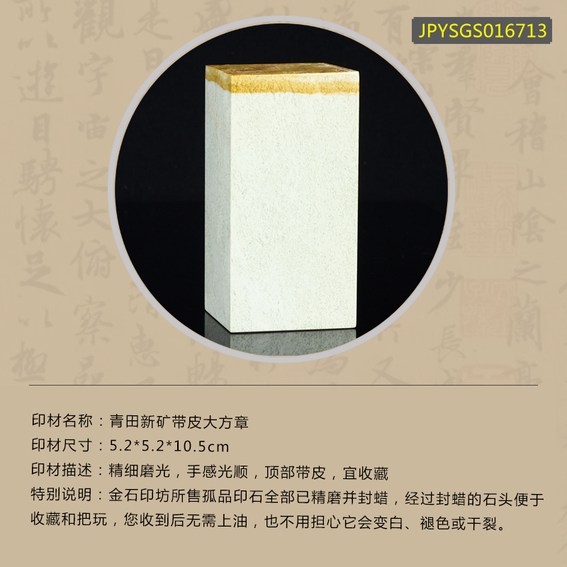 孤品016713-青田新矿带皮大方章-5.2*5.2*10.5cm