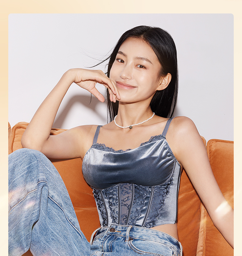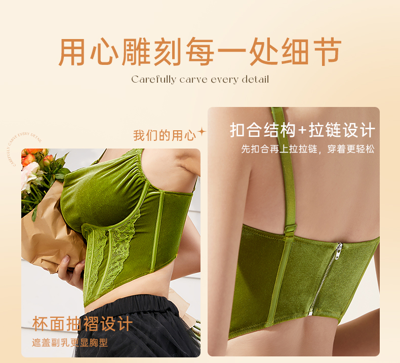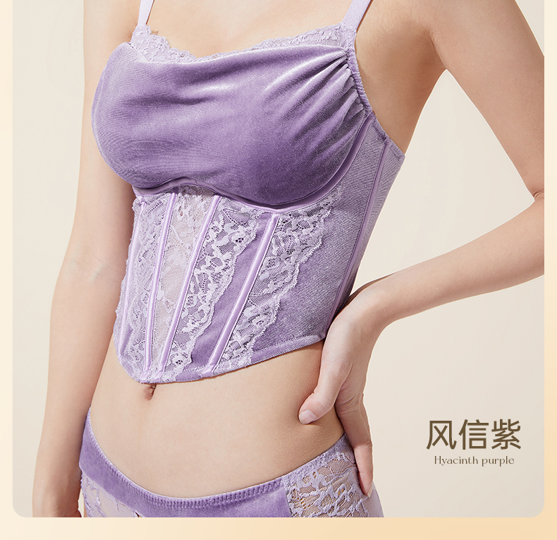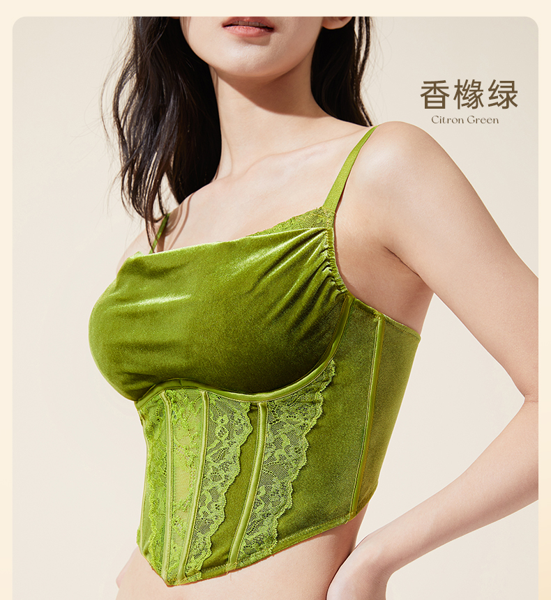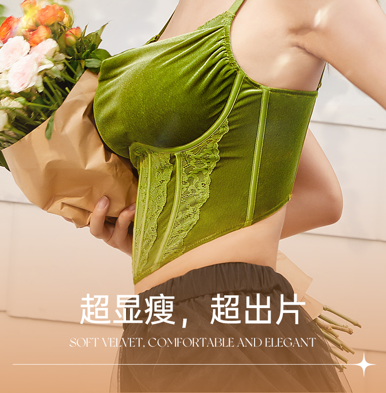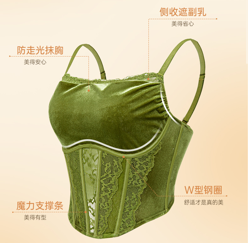 奶糖派大胸抹胸幽梦轻奢丝绒复古三角杯胸衣胸型圆润大码显瘦内衣