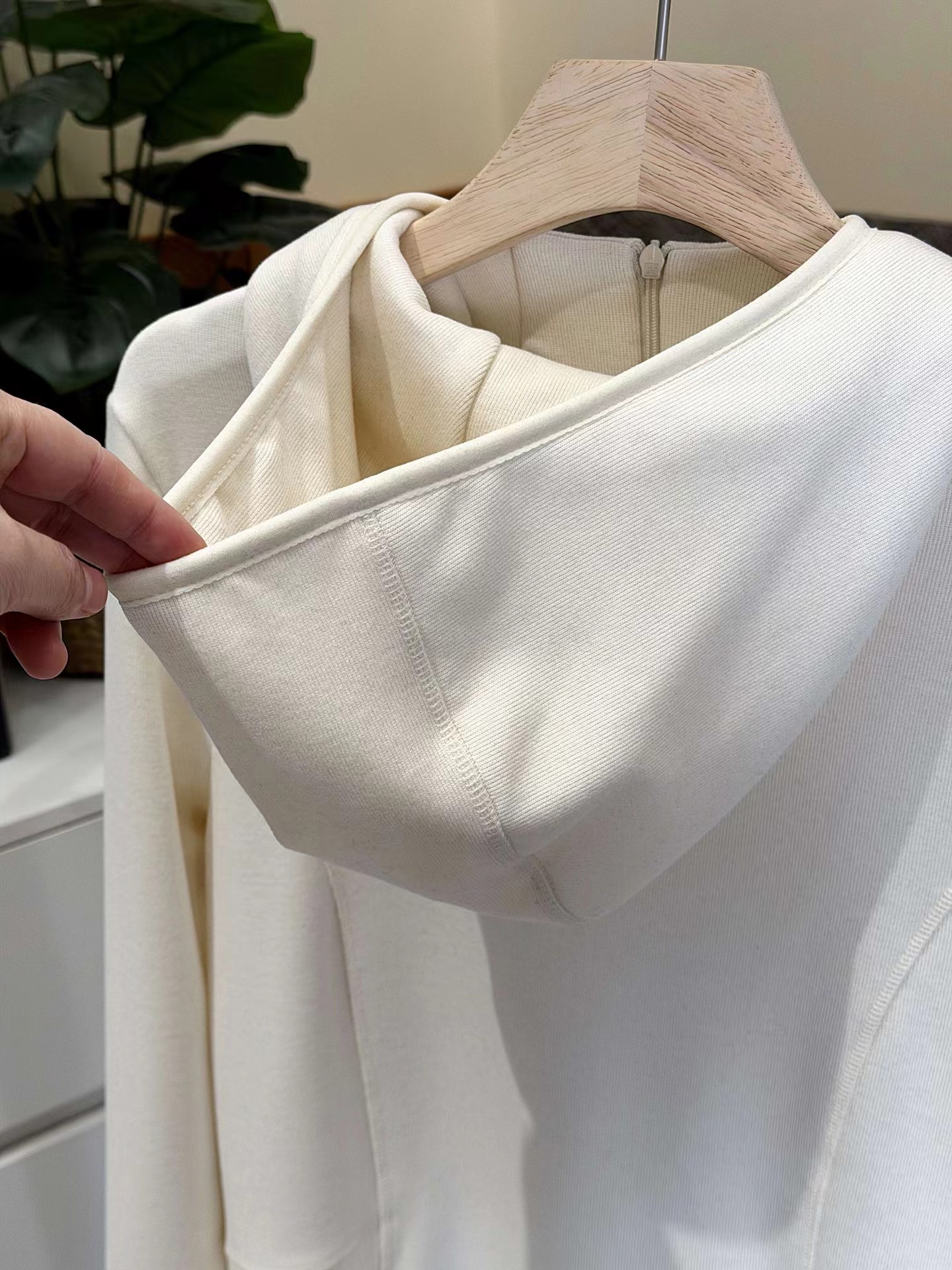 羊毛半拉链空气层连帽卫衣310g,采用轻盈软糯的羊毛空气层面料,细腻蓬松,触感柔软且富有弹性,蓄热锁温抗静电,吸湿不闷汗,保暖性能佳,让你在寒冷的冬季也能感受到温暖与舒适。宽松合身版型,藏肉显瘦,不松垮不紧绷,既能包容身形又能勾勒利落线条~连帽设计自带随性,不仅增添了整体的时尚感,还能很好地保护头部不受寒风侵袭!隐形半拉链高领,冷暖调节,开合顺畅,V领立领随心切换,不会破坏衣物的整体美感。正肩剪裁,肩线前移,视觉直角肩,侧腰弧形缝线显腰细~