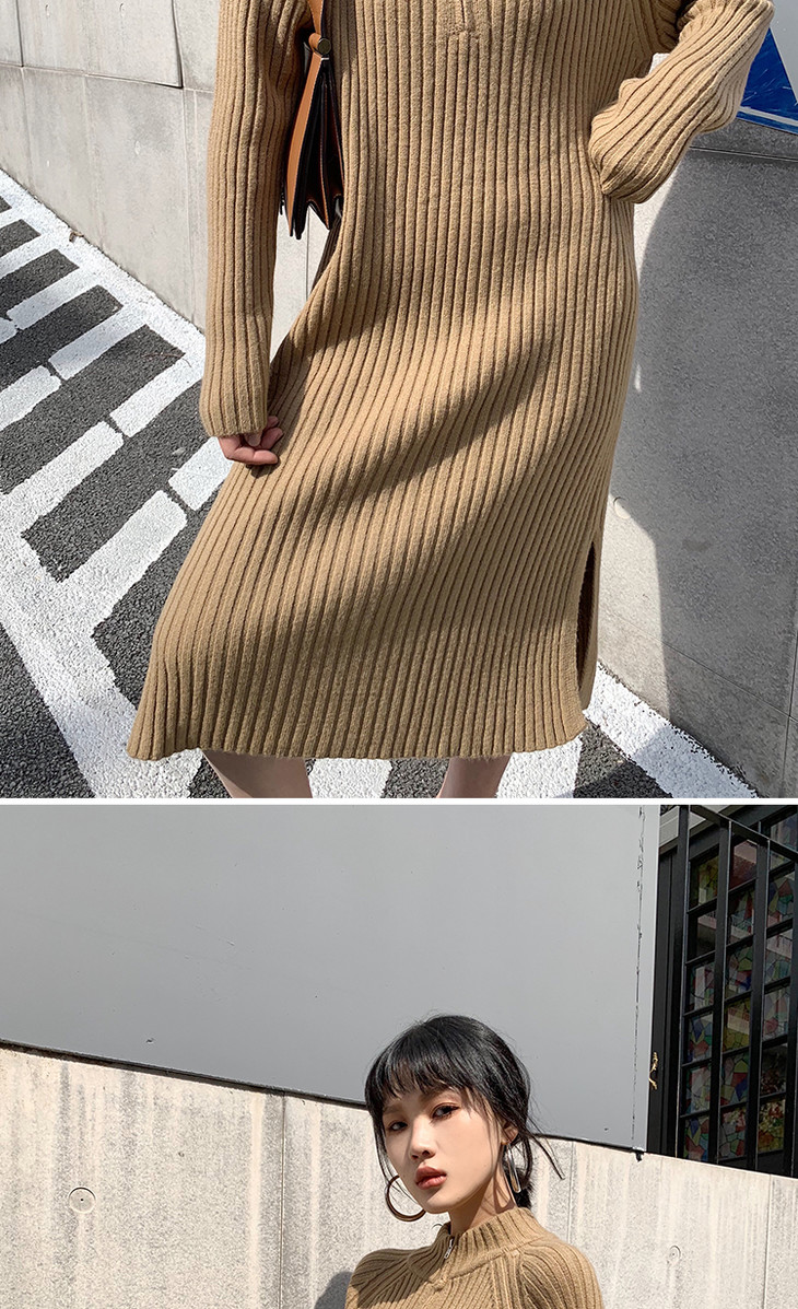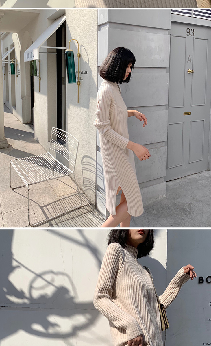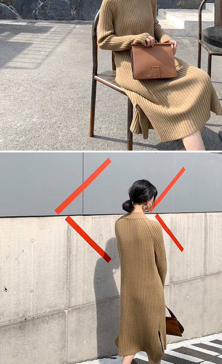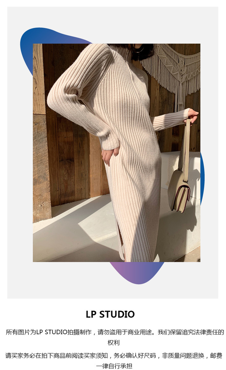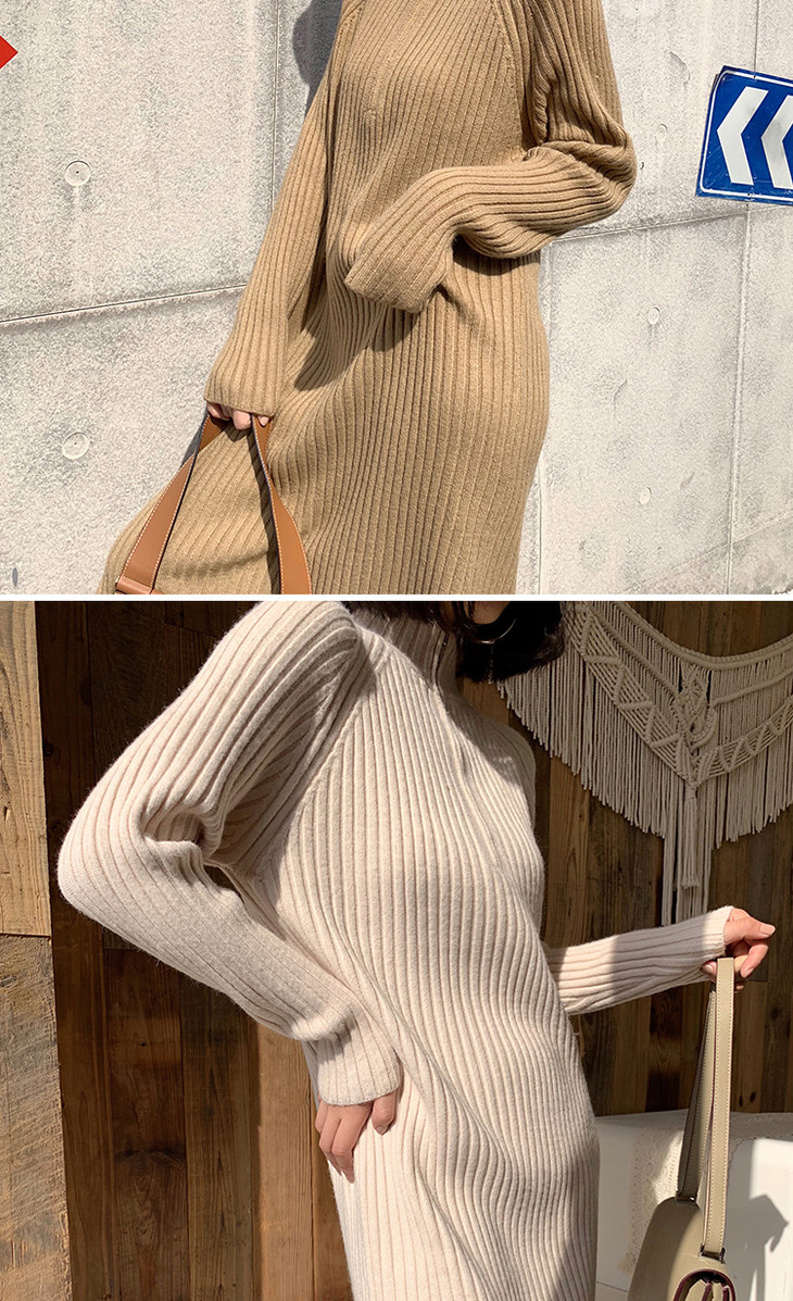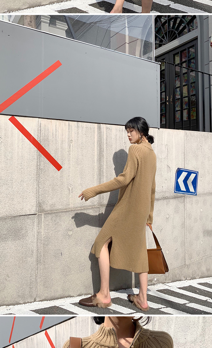 【服饰鞋包】小众针织连衣裙女秋冬长袖过膝气质配大衣的长裙子毛衣