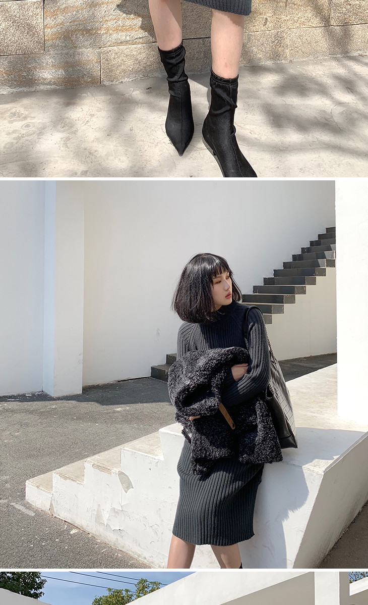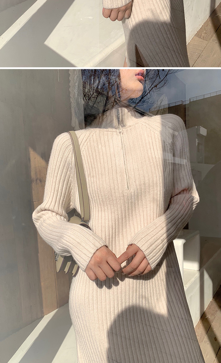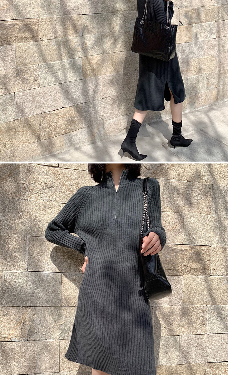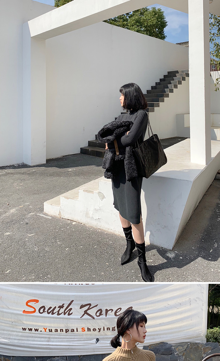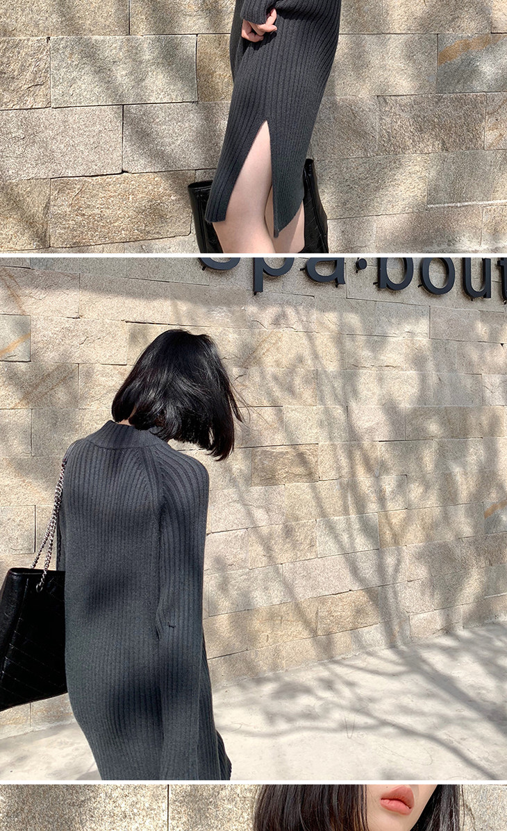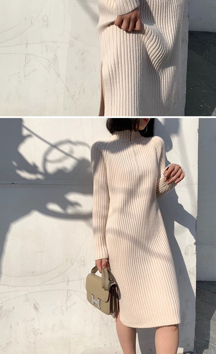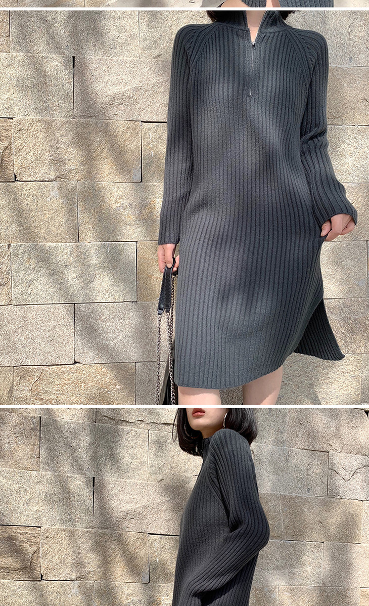 【服饰鞋包】小众针织连衣裙女秋冬长袖过膝气质配大衣的长裙子毛衣