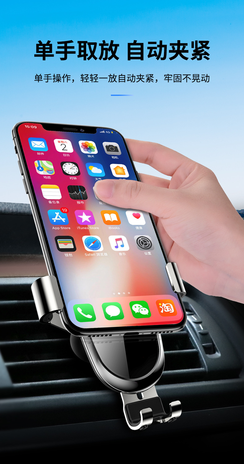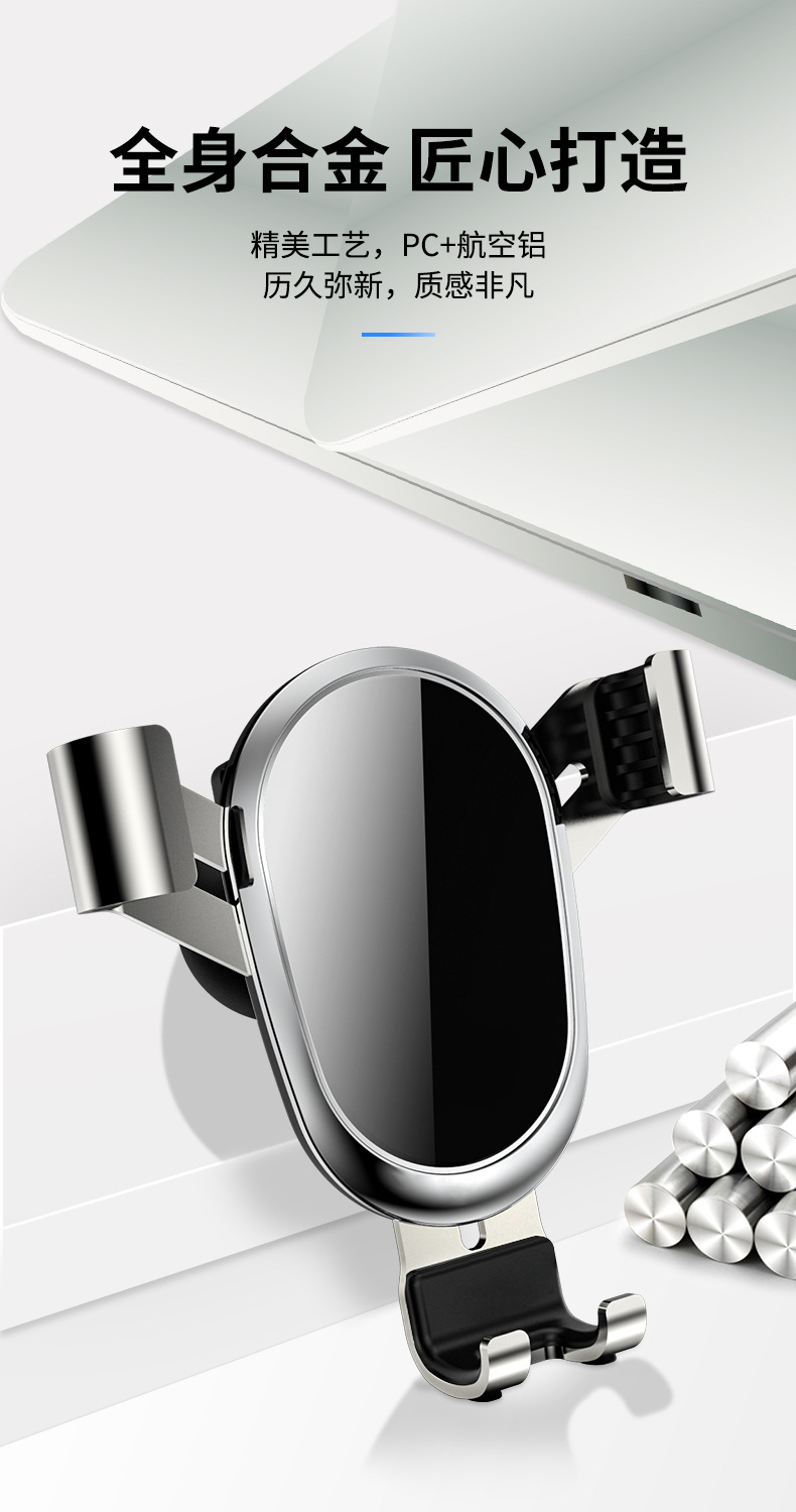 【铝合金材质伸缩自如】车载手机支架吸盘出风口多功能支架重力车载导航银色支架1个