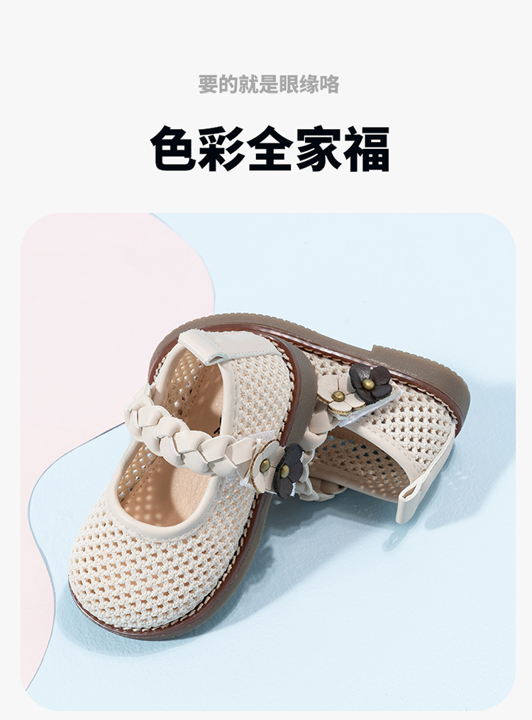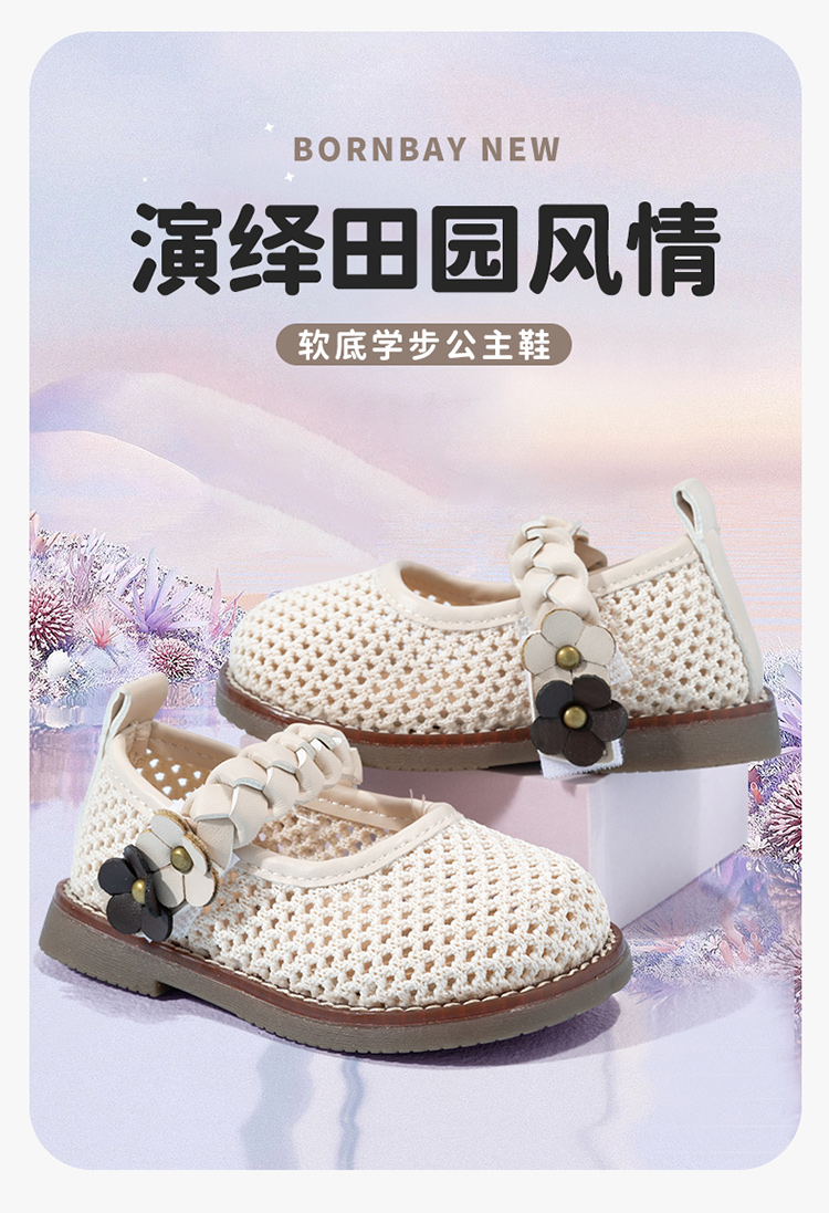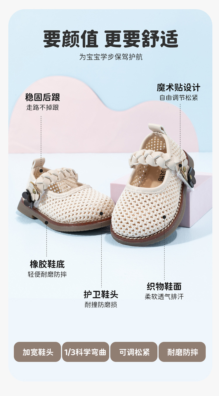 贝贝怡童鞋女童夏季新款透气公主鞋小童稳步鞋透气女宝宝防滑鞋子