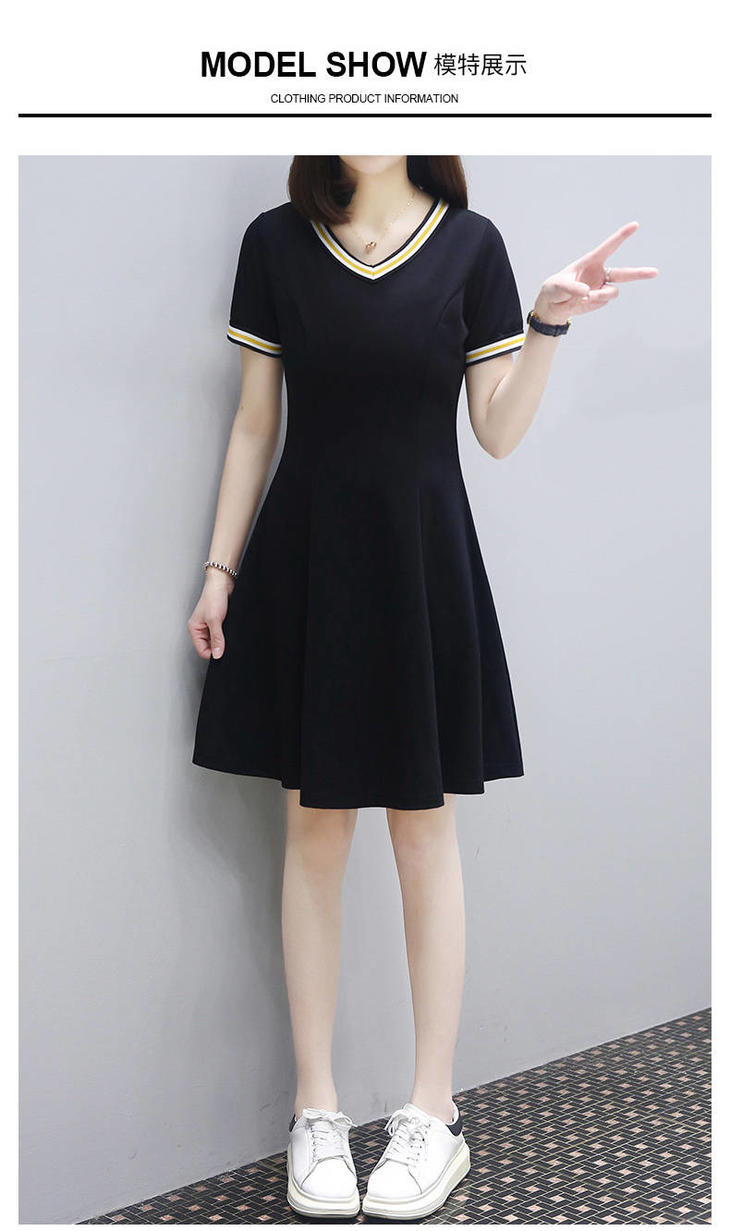 中长款裙子v领短袖T恤裙2019大码女士新款女裙夏装洋气胖mm连衣裙
